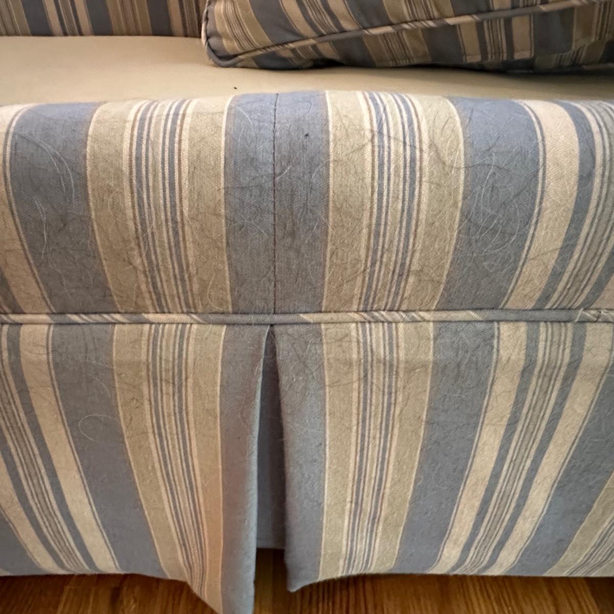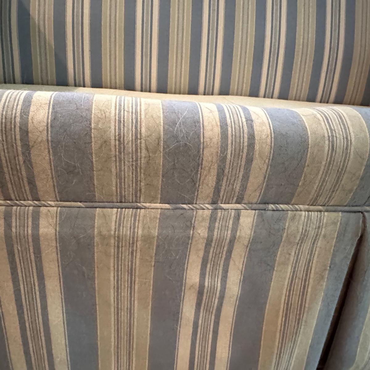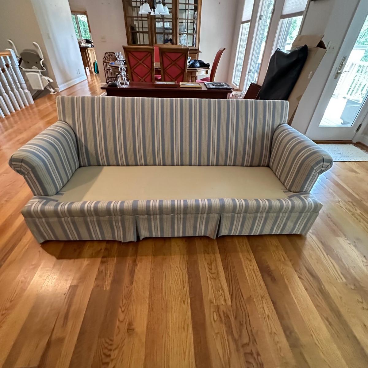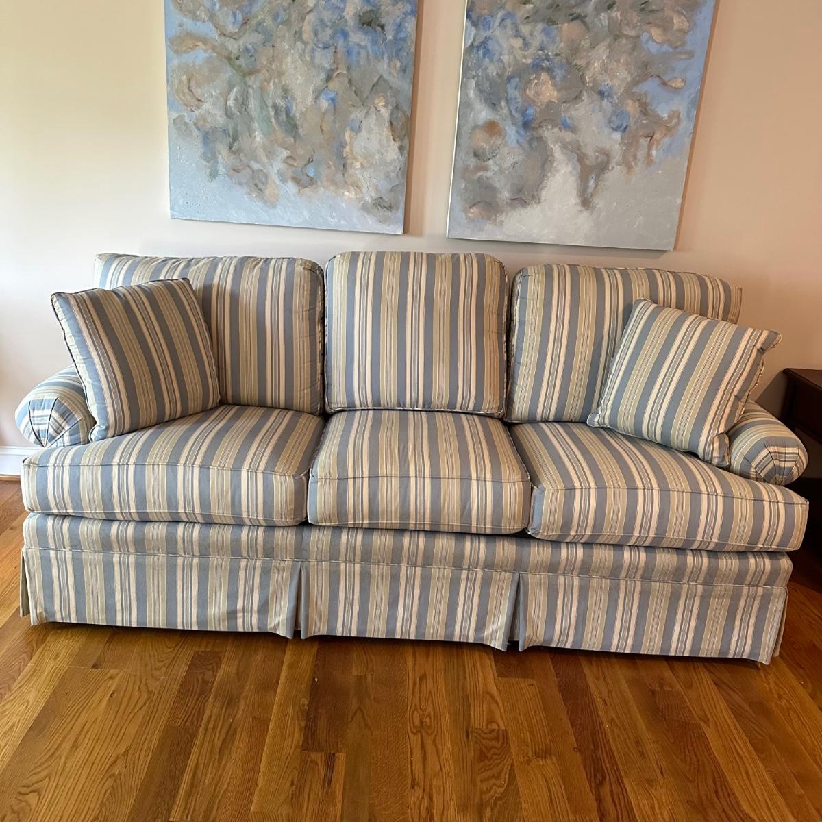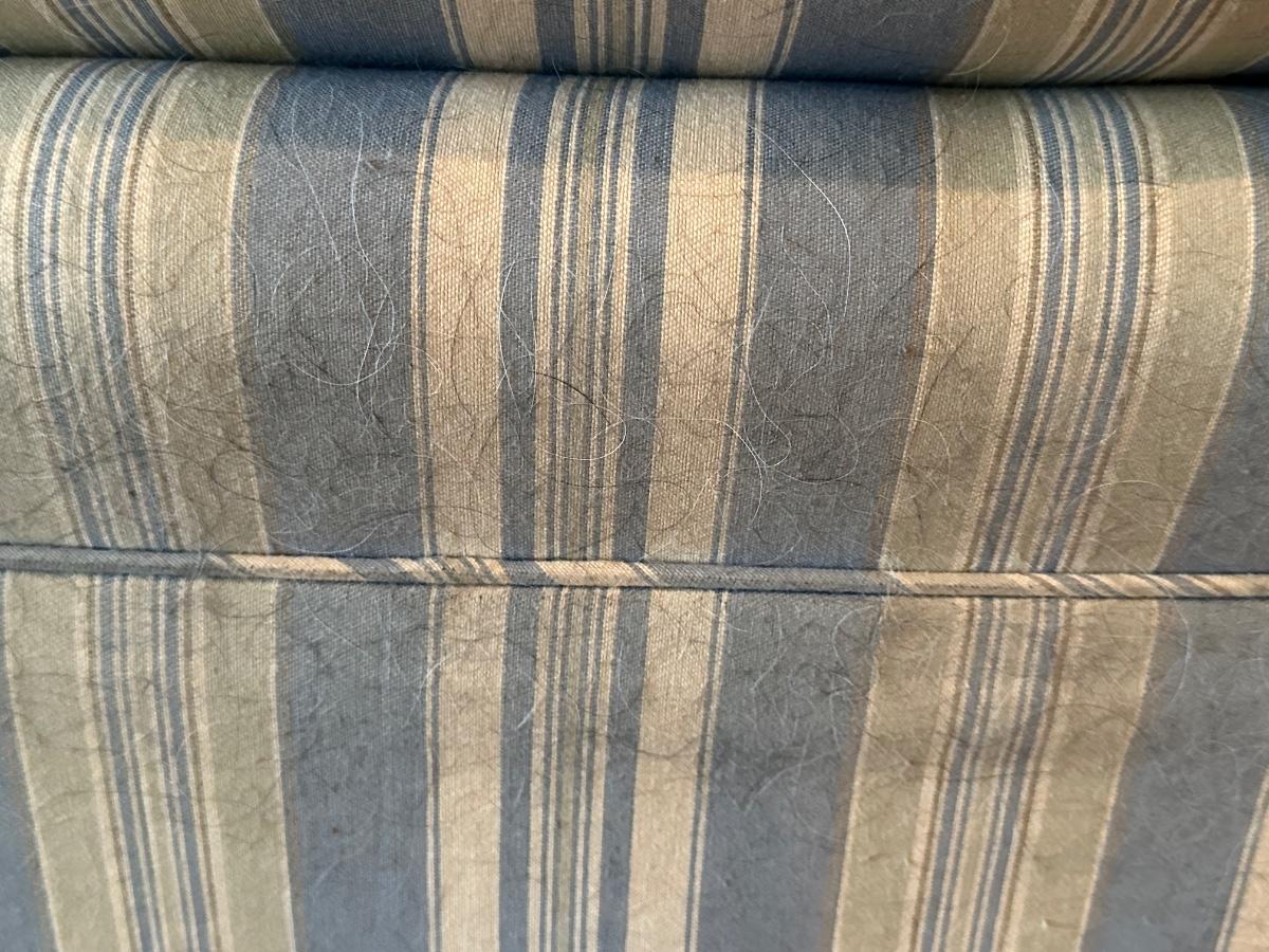 Pair of matching fully upholstered sofas. Both have seat and back cushions. The estate did havepets and there is pet hair on both sofas. See photos for details. 80” x 32” x 32.5”H. Seat height 21”. Local pickup only.