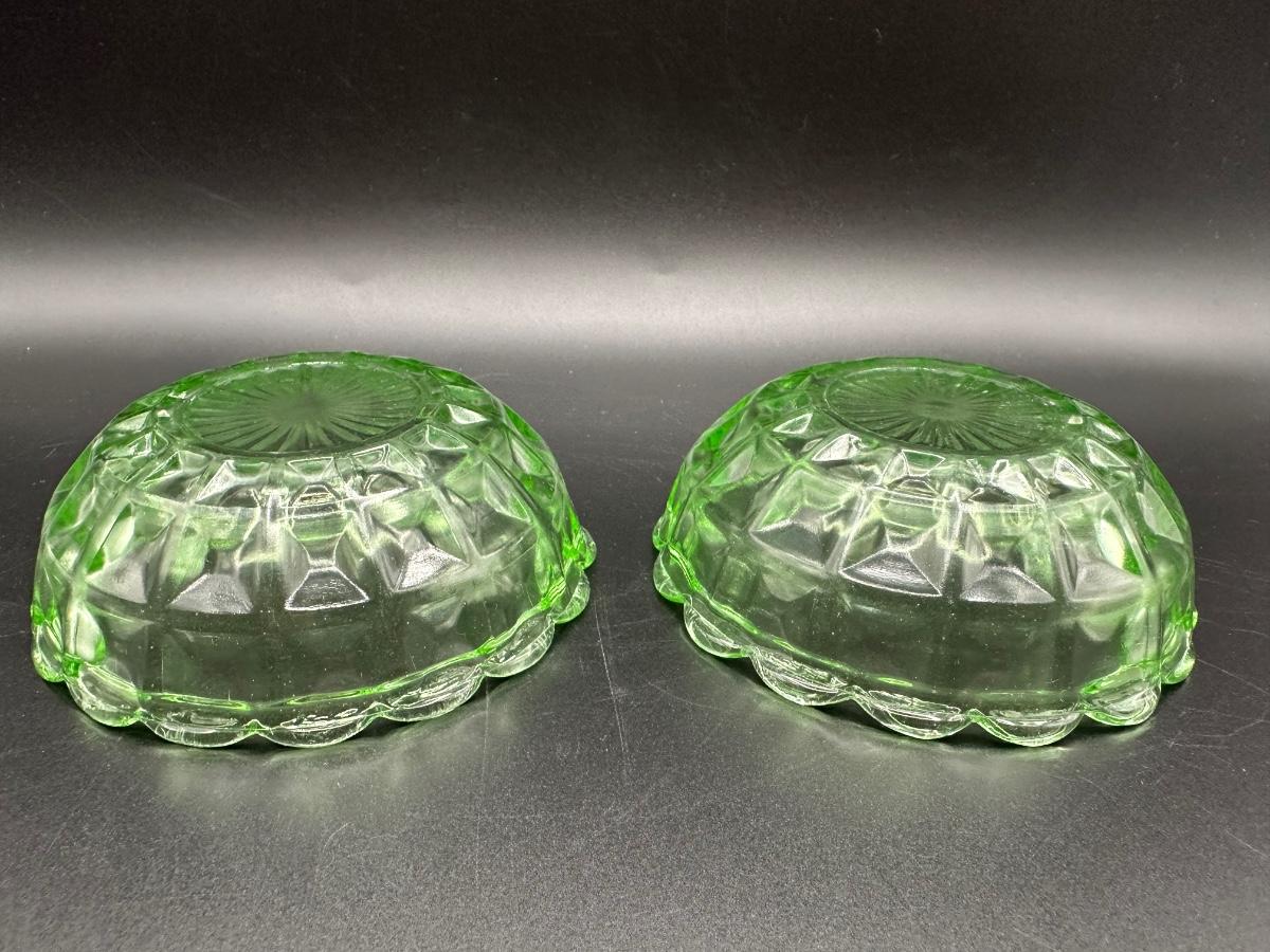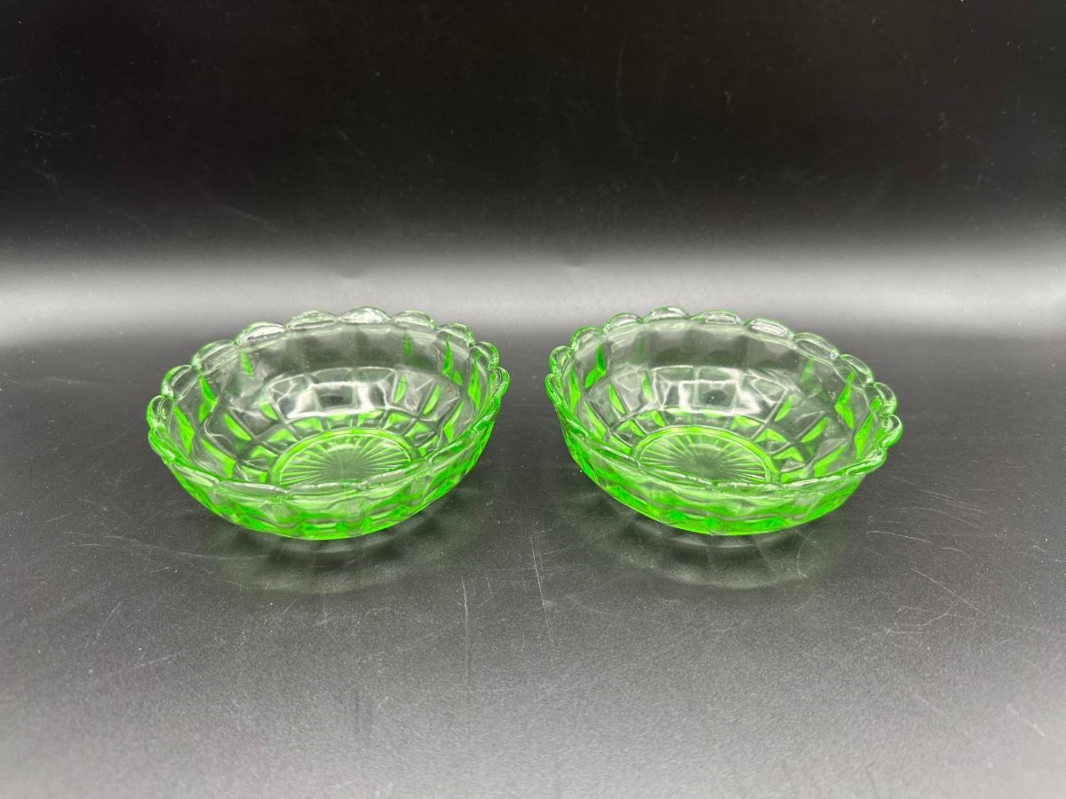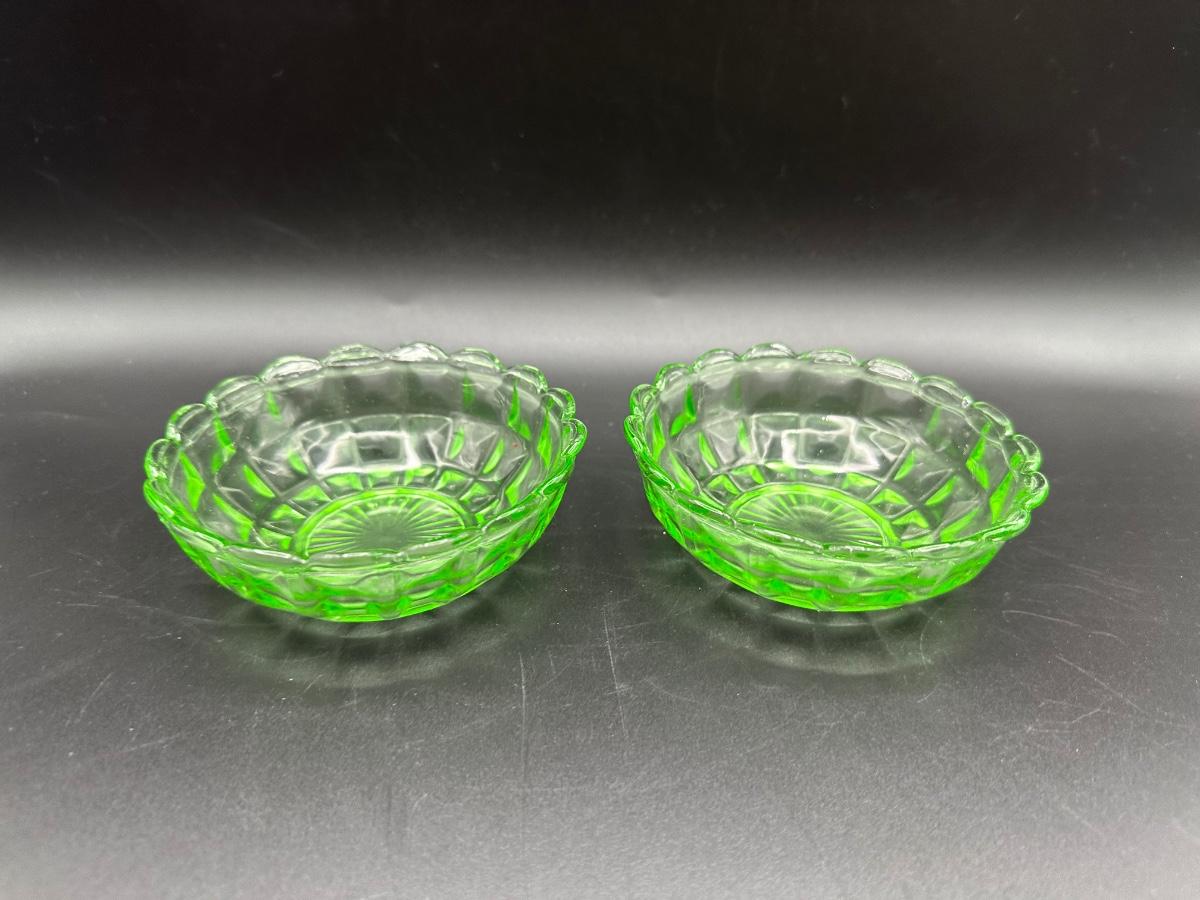 Two URANIUM Green Glass Trinket Dishes