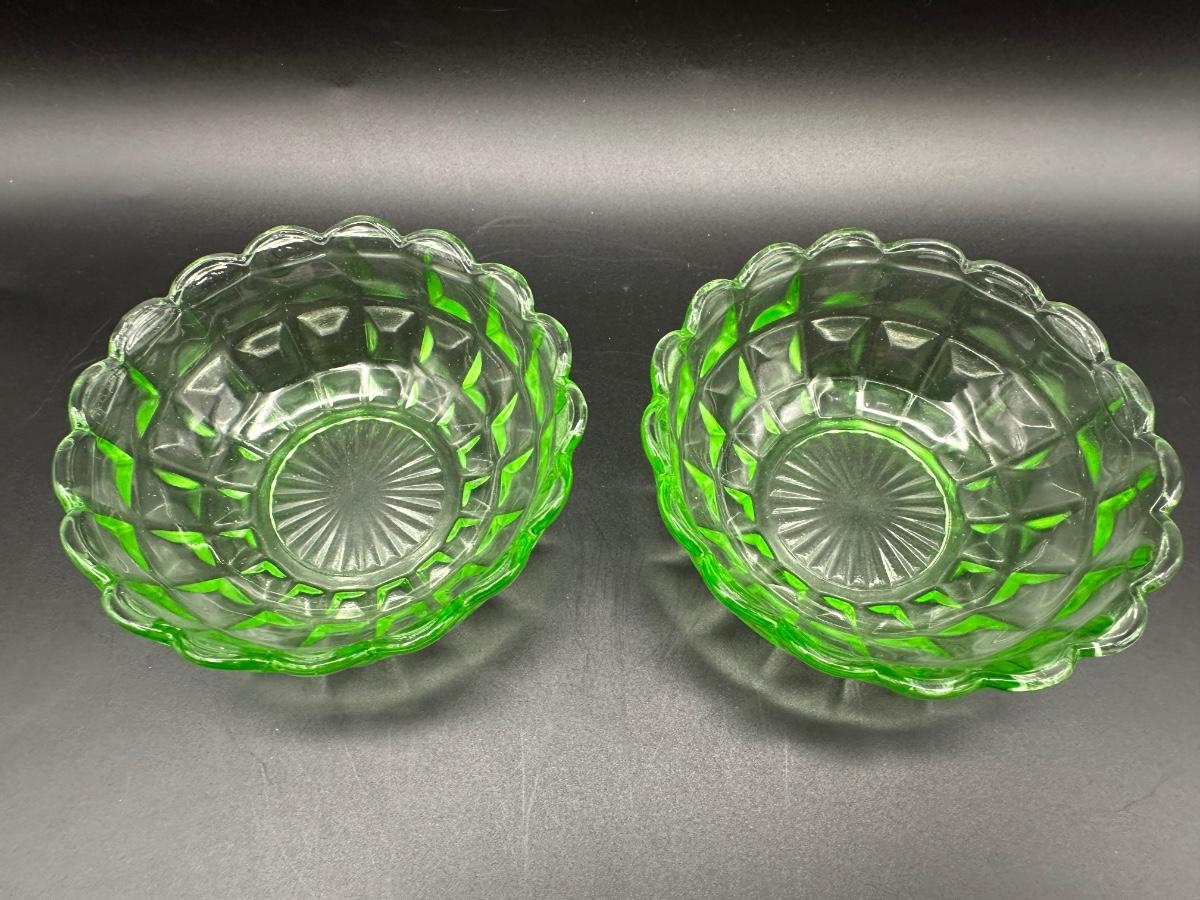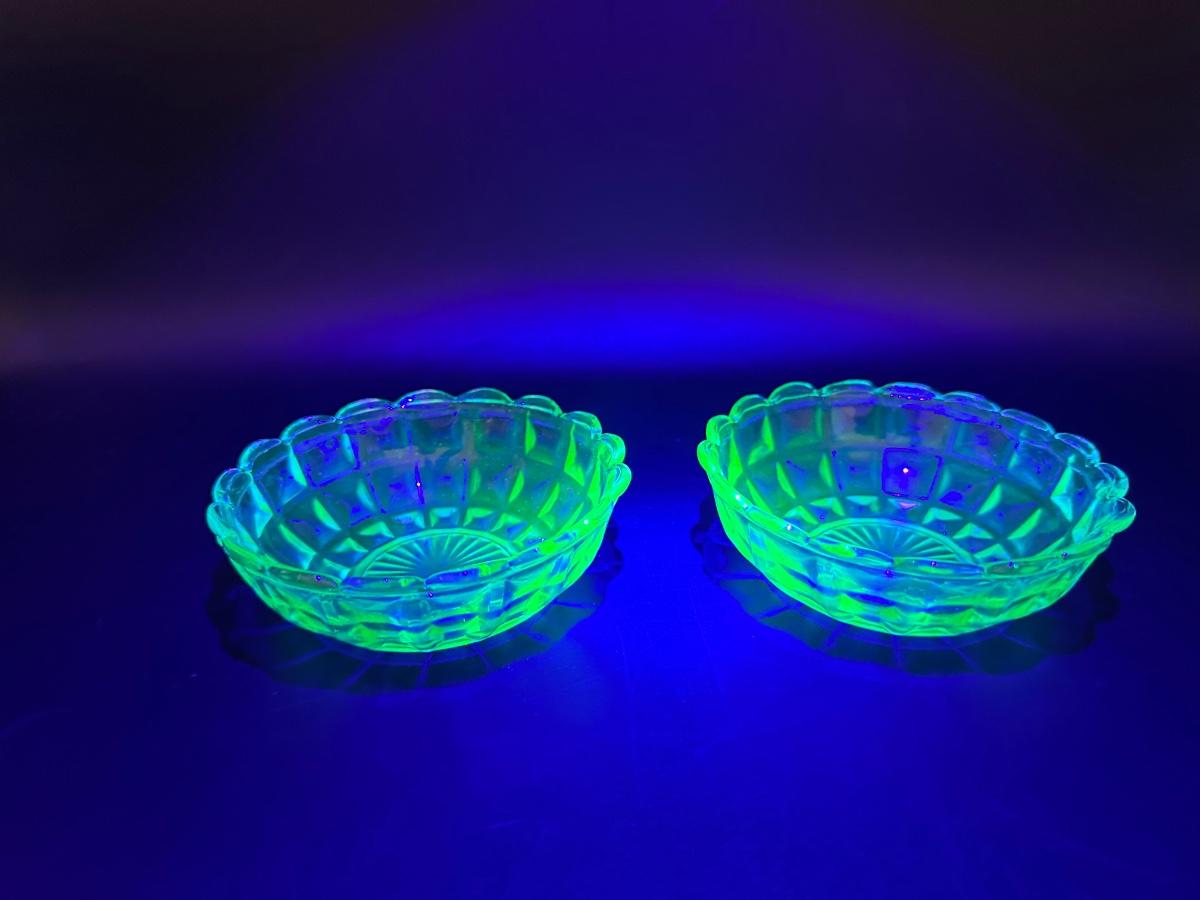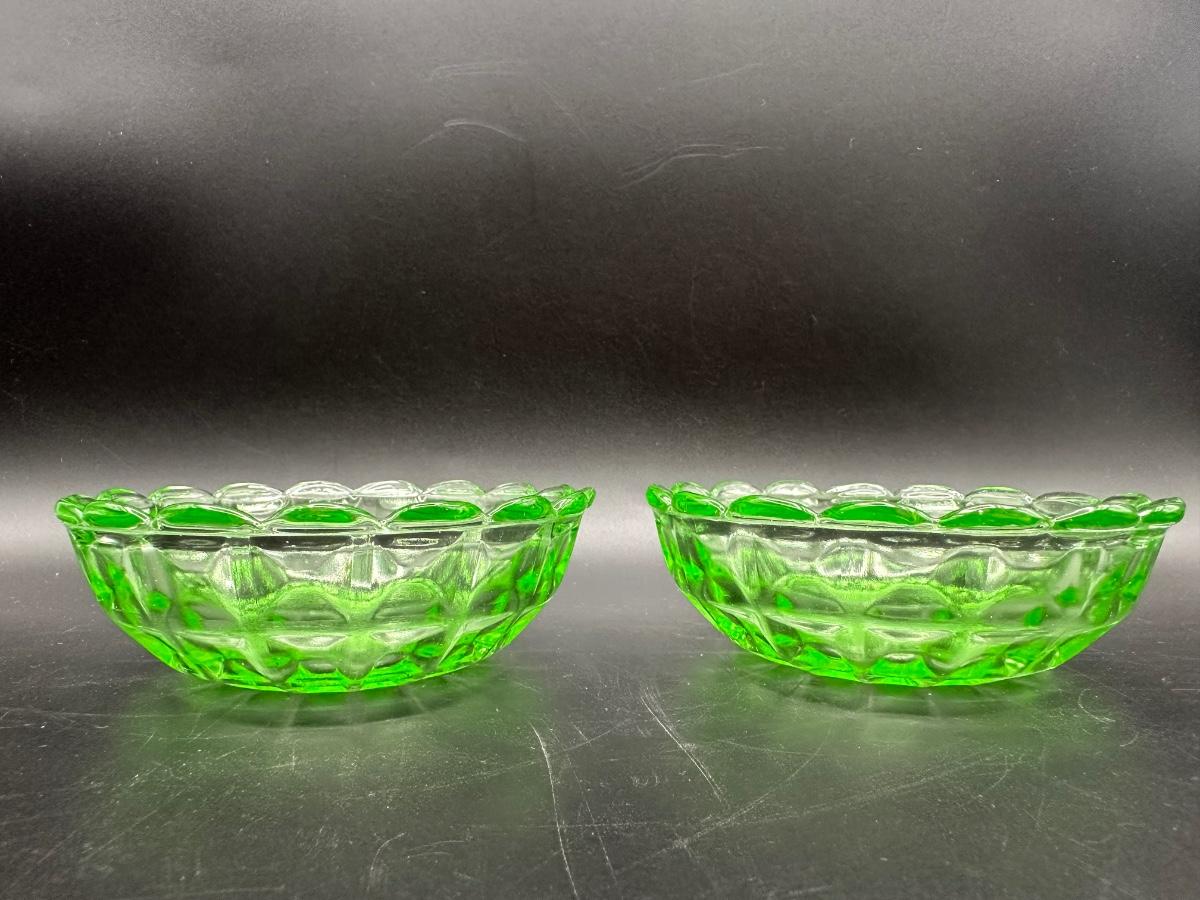 Two URANIUM Green Glass Trinket Dishes