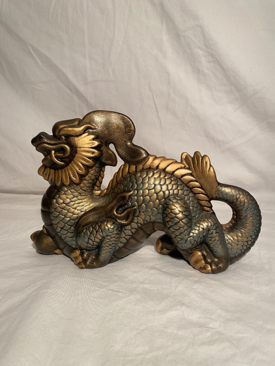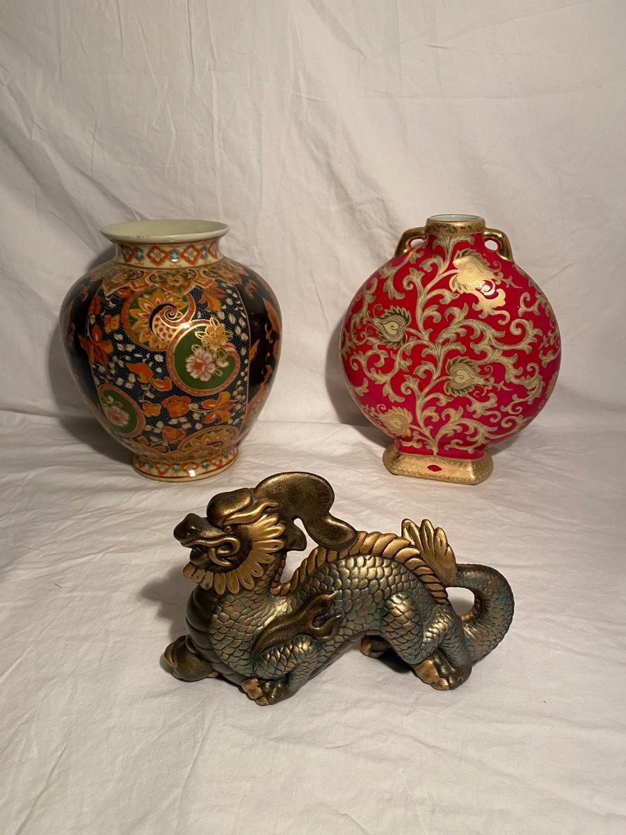 Vintage hand-painted vases and dragon. Preowned and sold as is