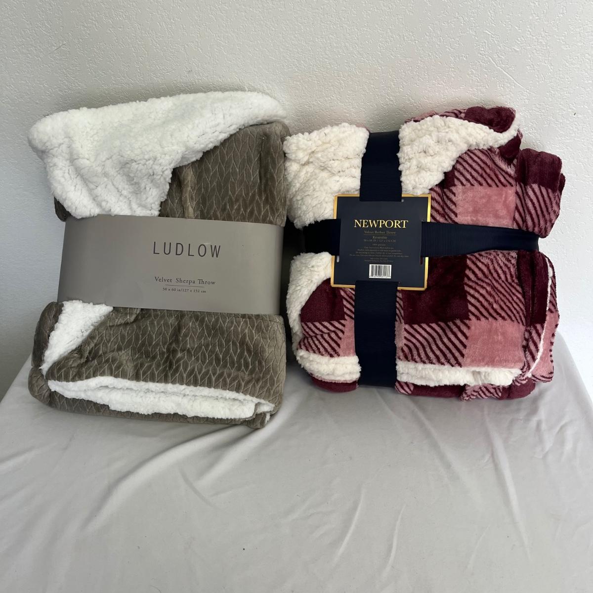 These two velvet throws appear to be new and are still in original packaging. One is by Ludlow and the other is by Newport. Both measure 50” x 60”.