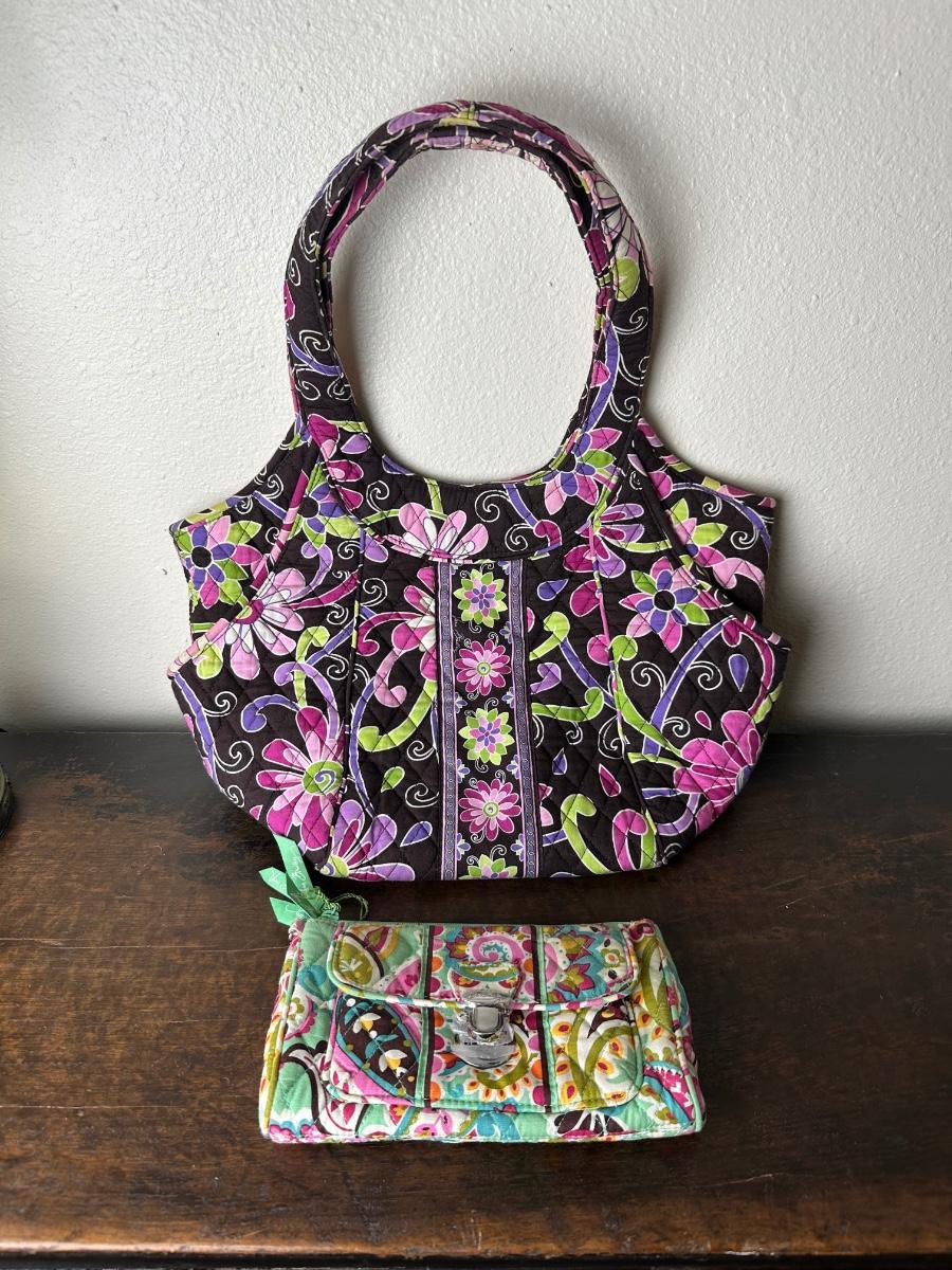 Two Vera Bradley Quilted Bags — Handbag & Wallet/Wristlet