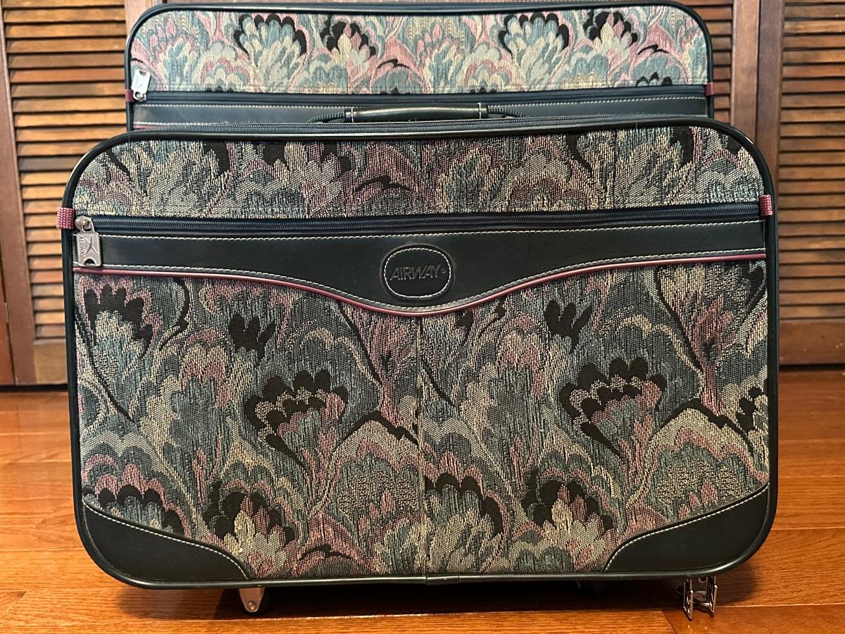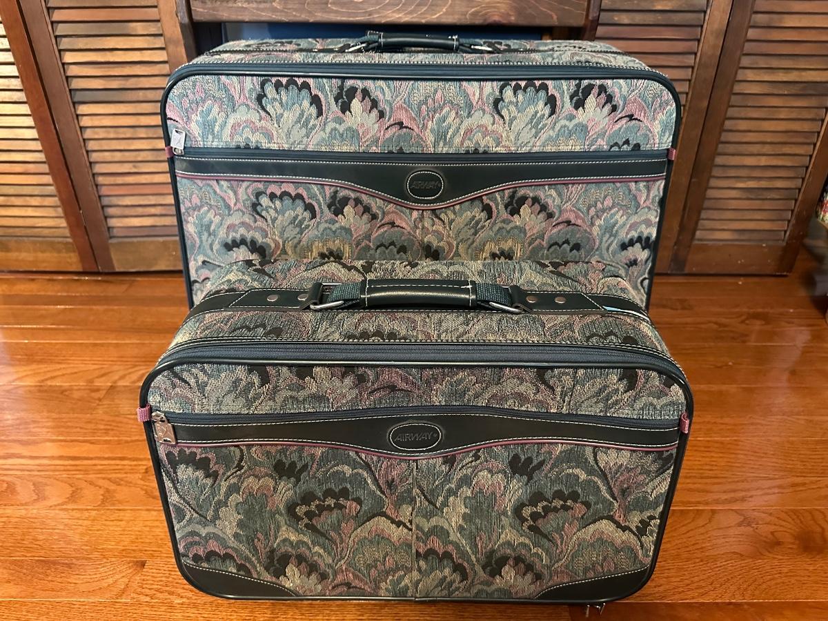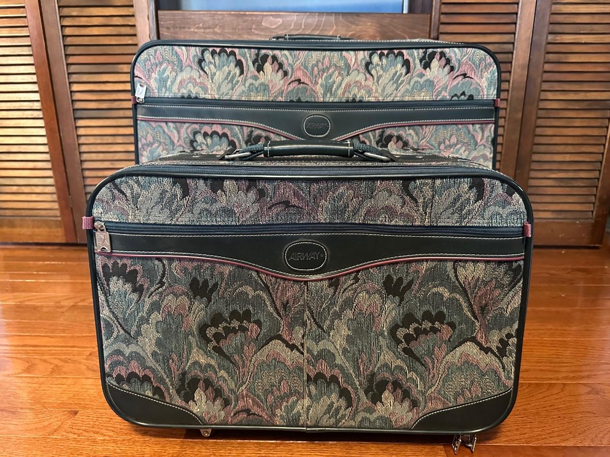 Two Vintage Airway Matching Suitcases with Wheels