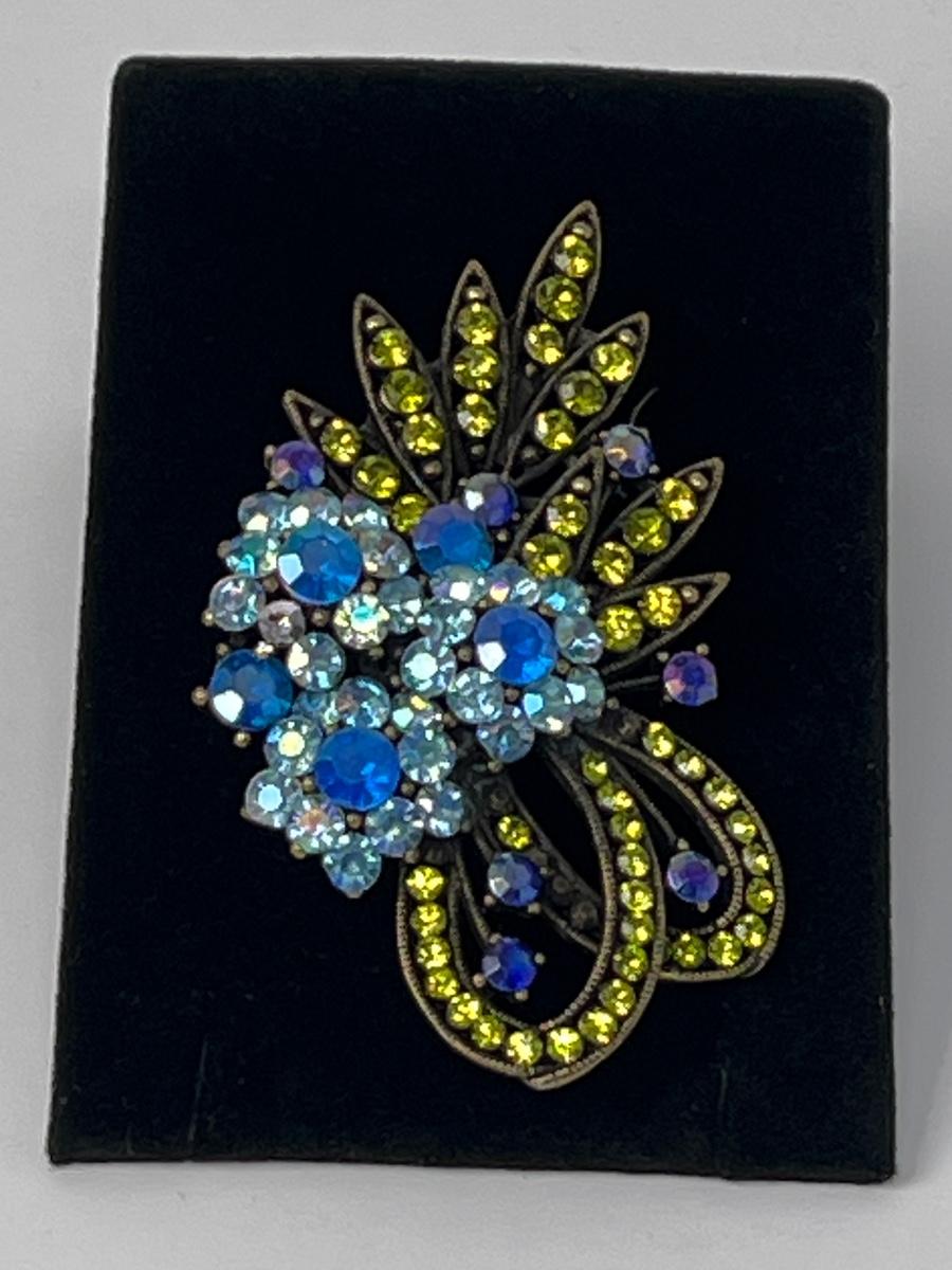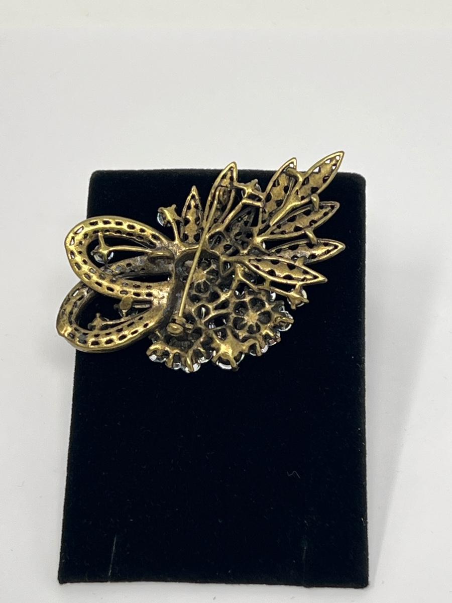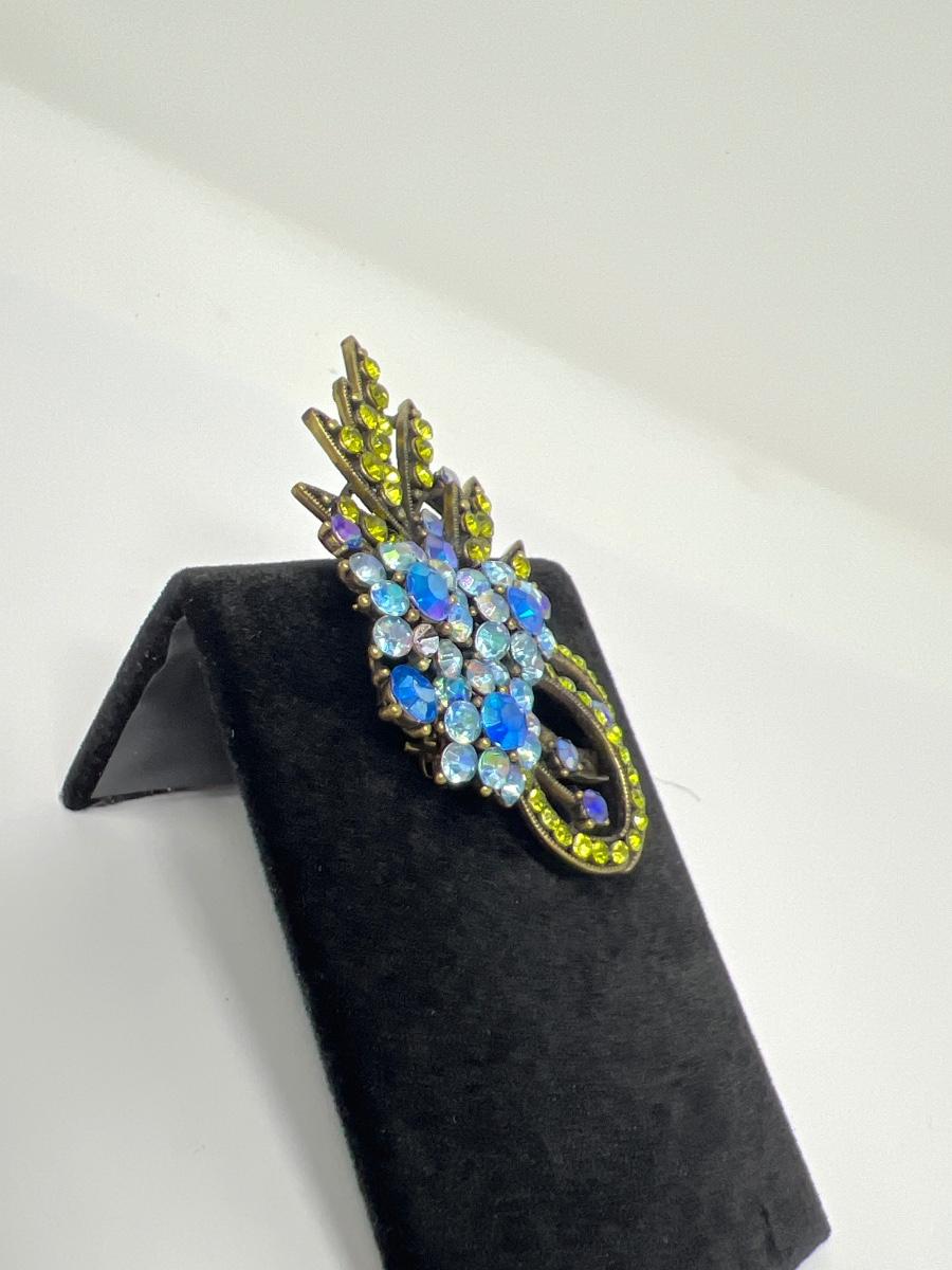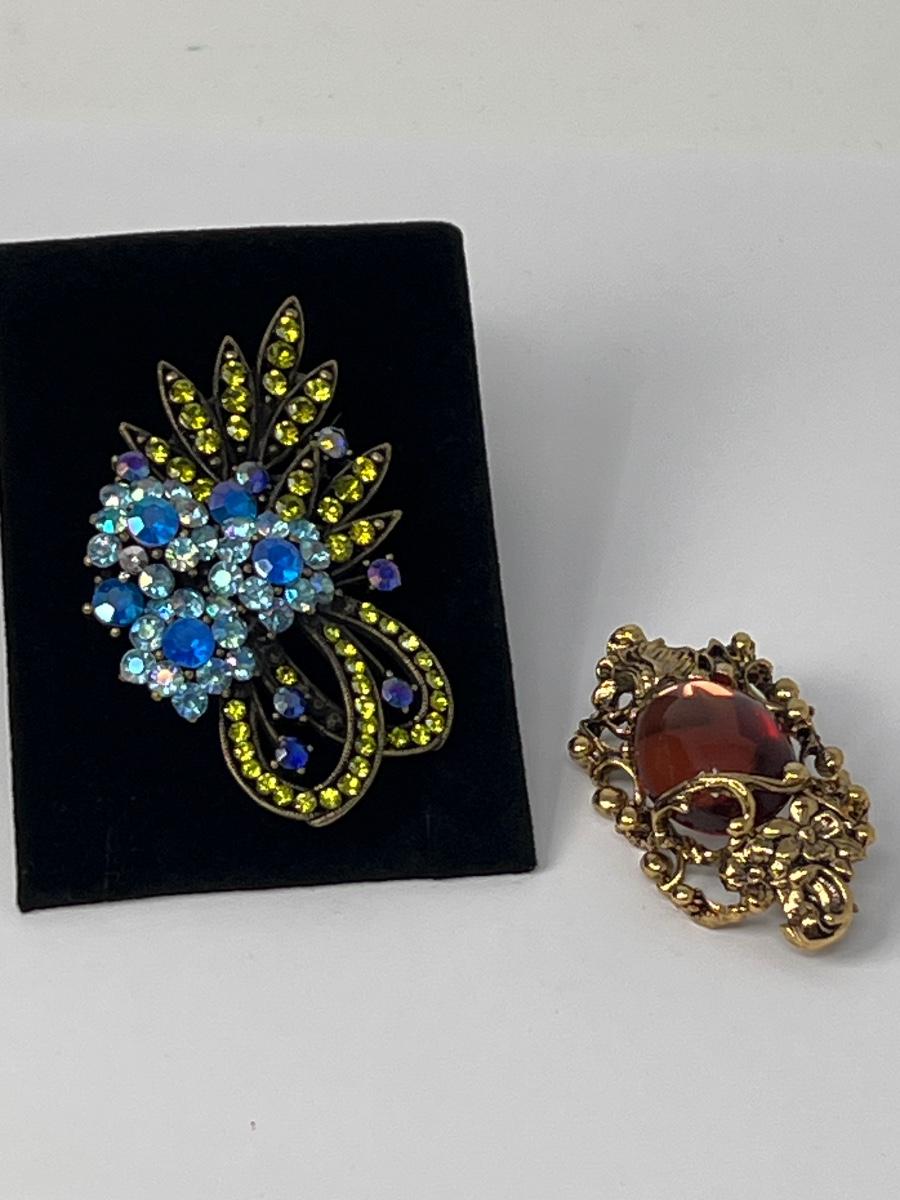 Amber glass stone set in gold toned metal - size 2” x 1”
