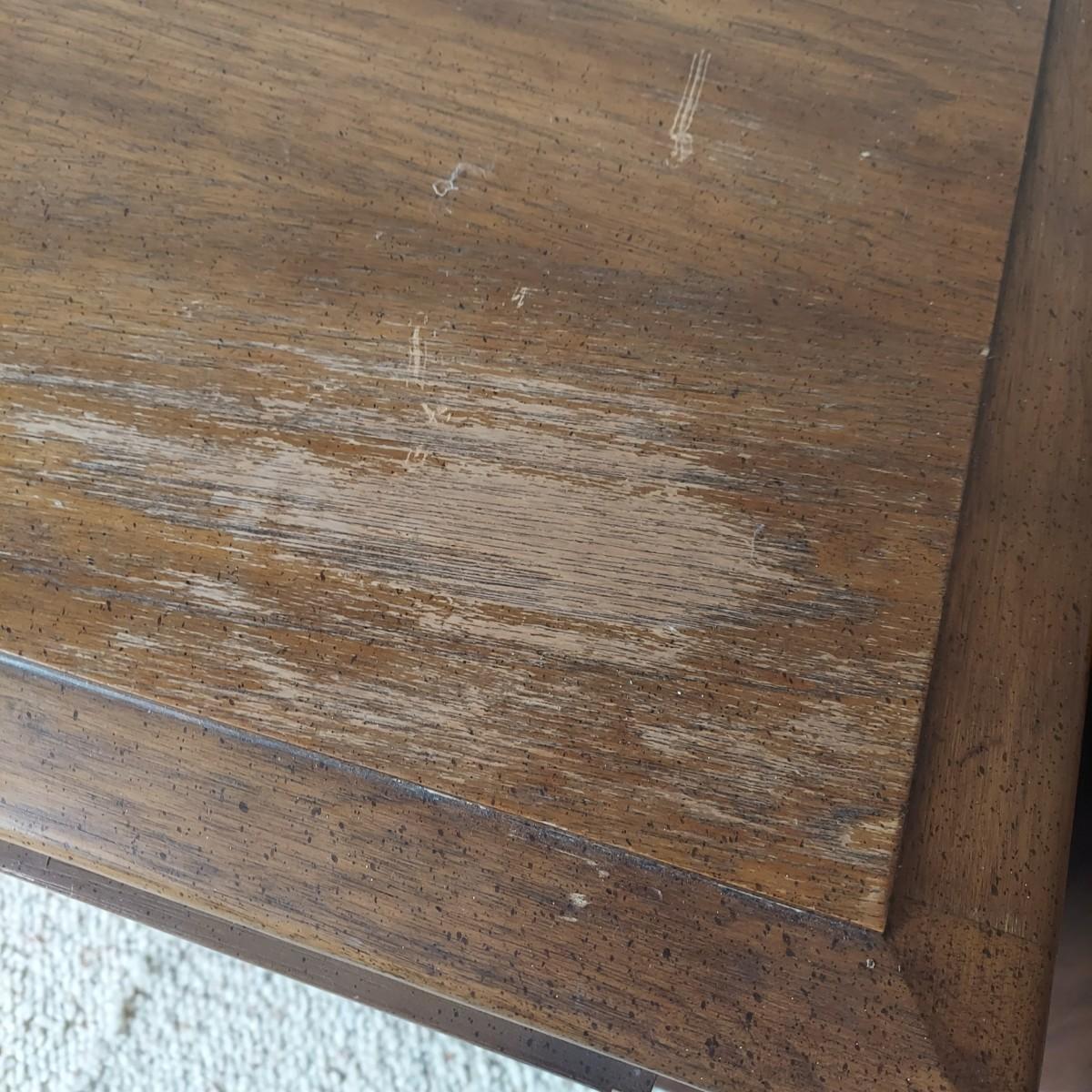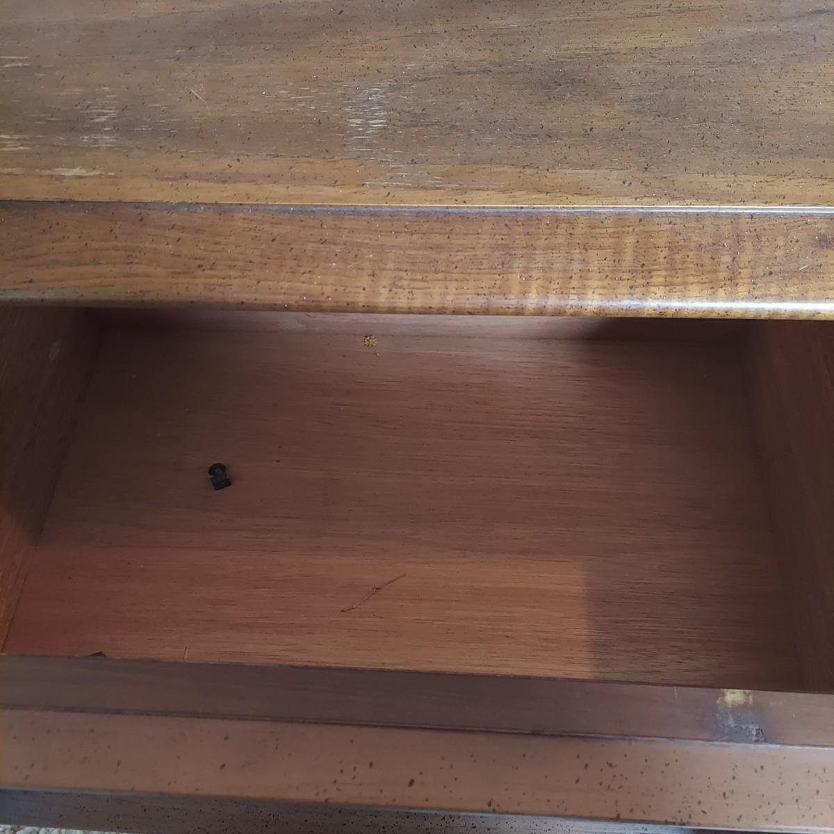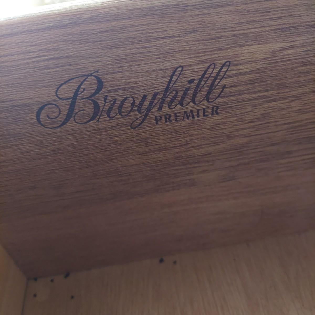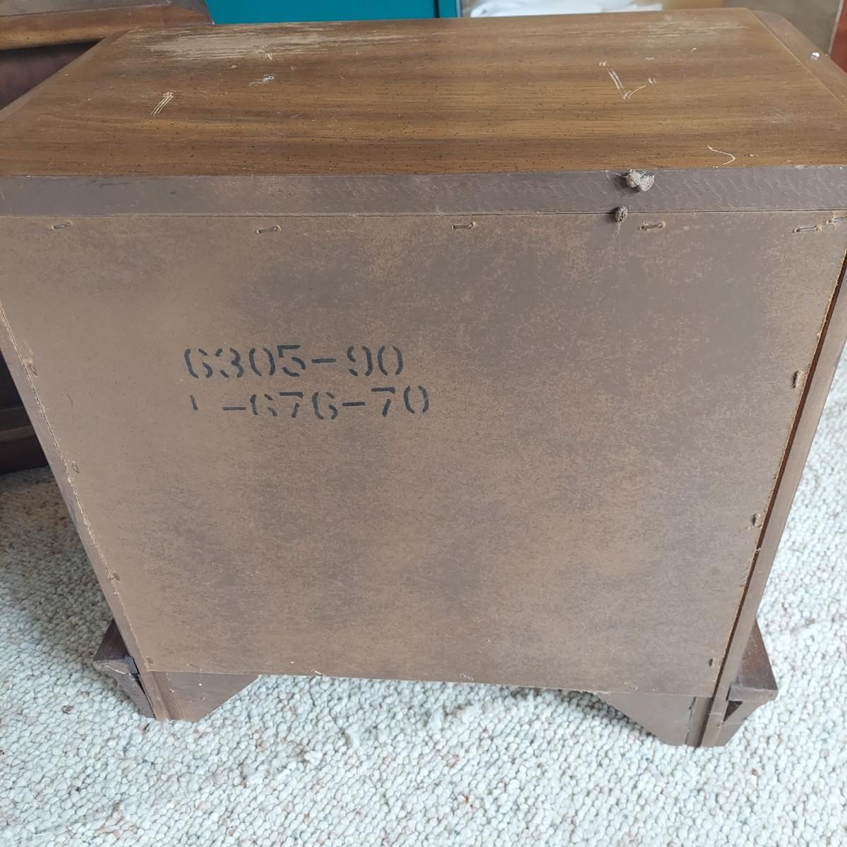Pair of solid wood Broyhill nightstands with dovetailed drawers and heavy metal brass-like hardware. Each measures 23” x 16” x 23"H. Some condition issues on the tops. Please see photos for details. Local Pickup Only. Winning bidder must bring assistance to help move and load this item due to its weight and/or size. It's located on the basement level that has external entrance