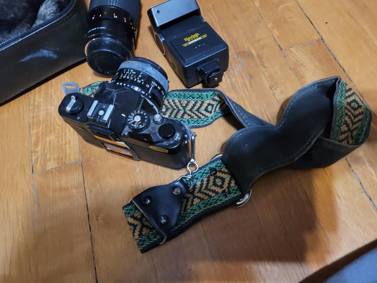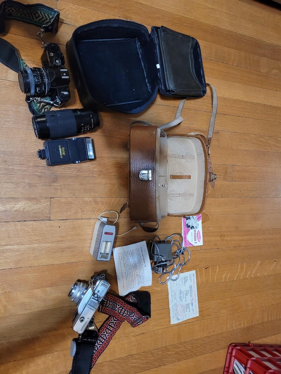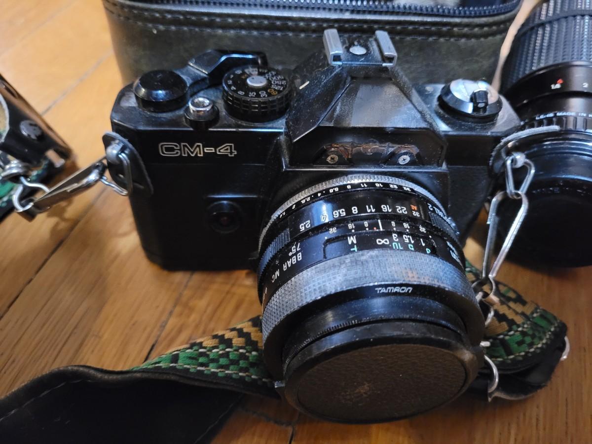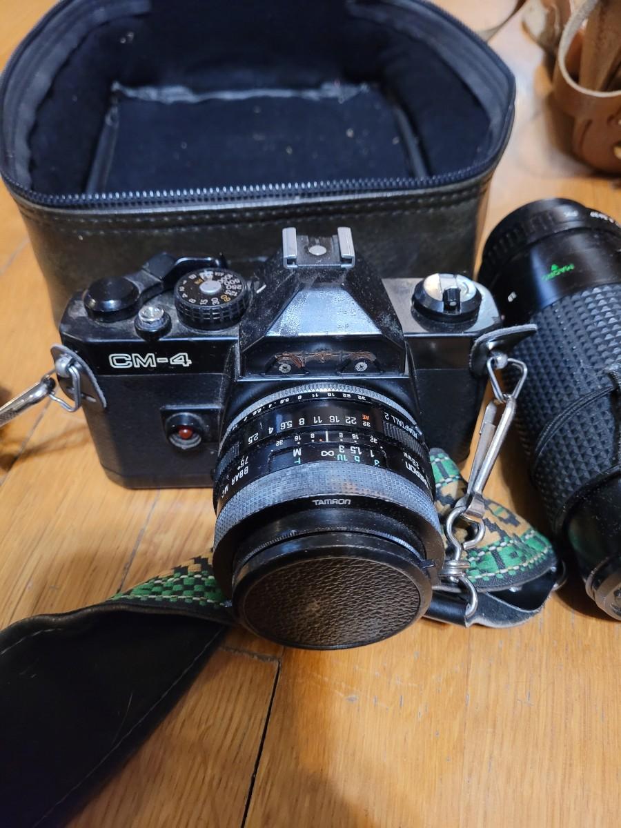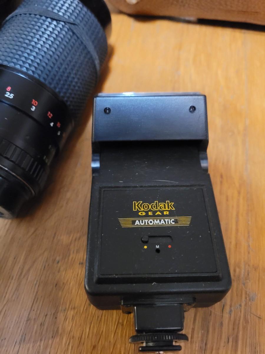CM-4 camera, Kodak flash, long range lense. Vitessa T regula camera with accessories and case.