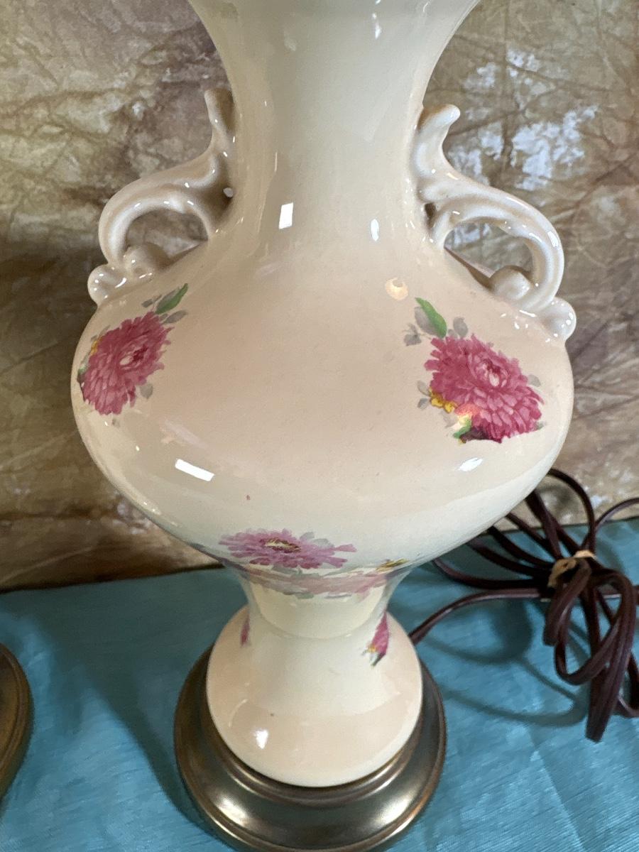 Two vintage ceramic urn lamps w/glass ball finials