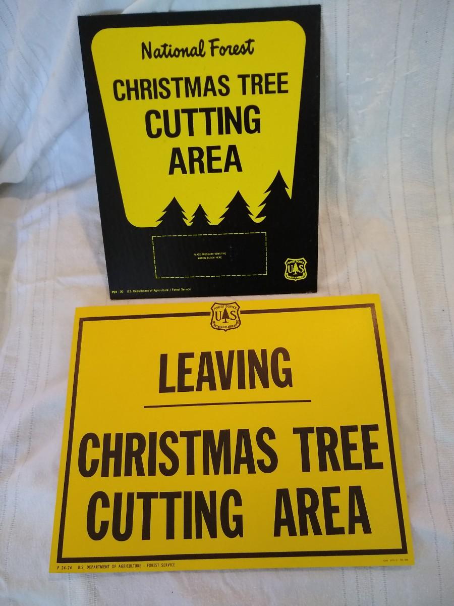 Two Vintage Christmas Tree Cutting Signs US Forest Service