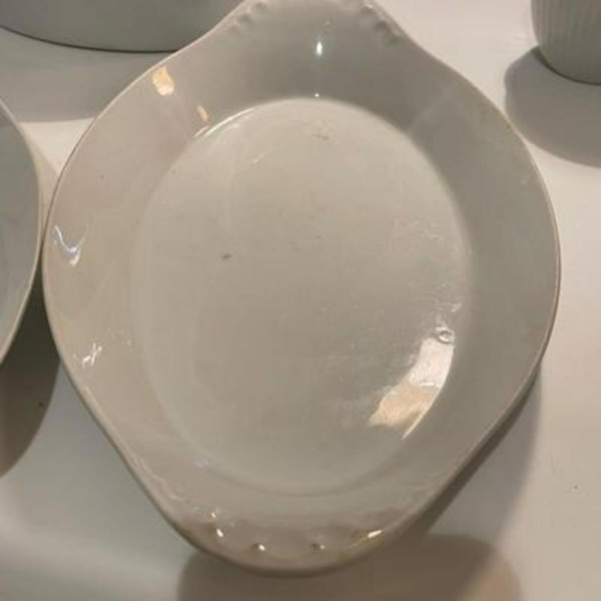 Two Vintage Commercial Hoan Large White Au Gratin Oval Baking Dishes with Handles