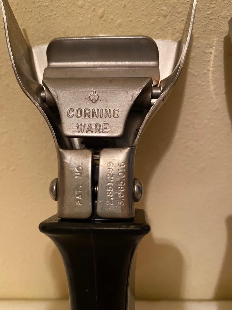 Two vintage corning ware removable handles