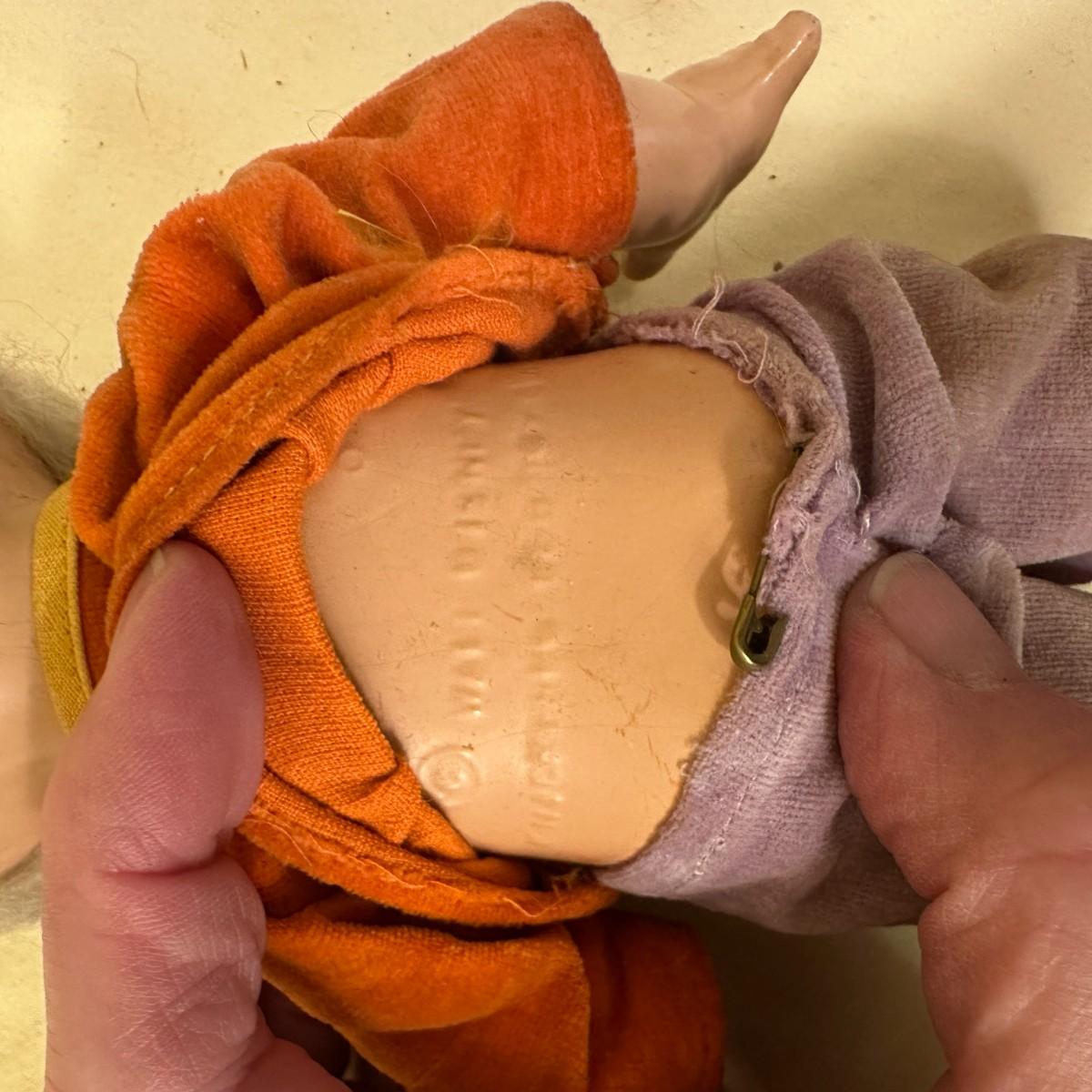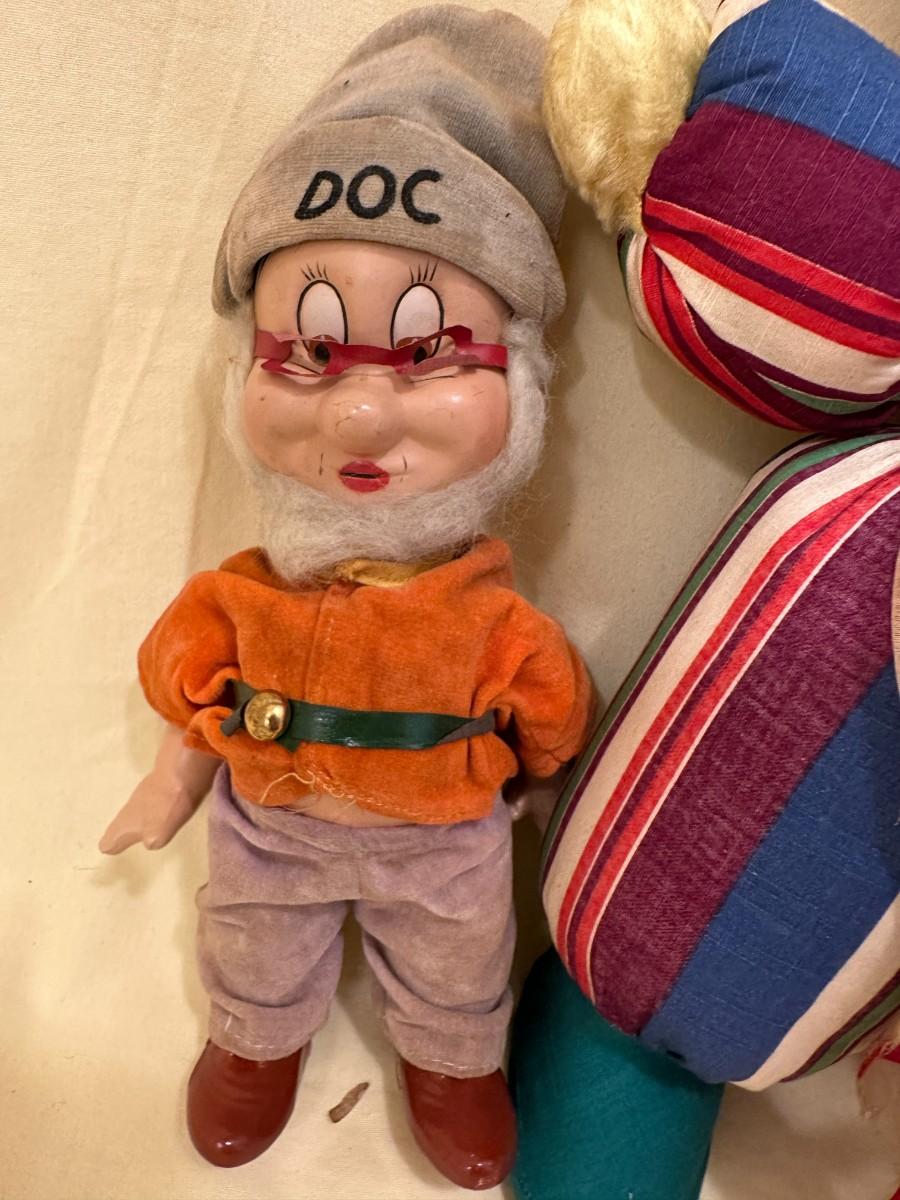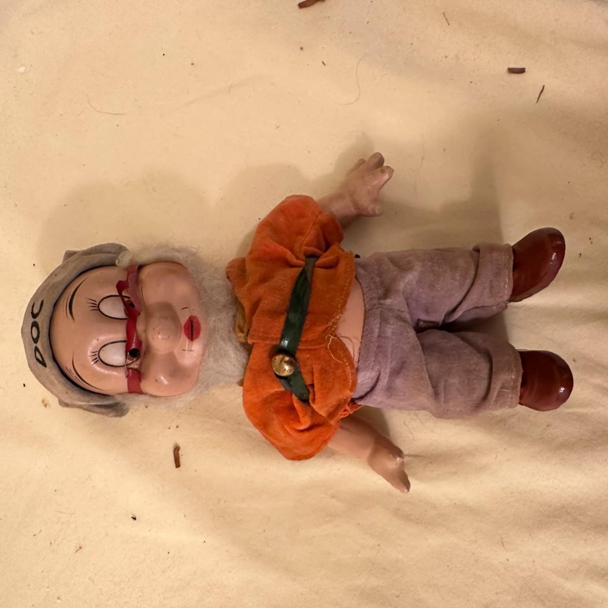 Two Vintage Dolls, "Doc" from Snow White approx. 10" tall, Walt Disney and baby doll approx. 14" tall - both in good condition
