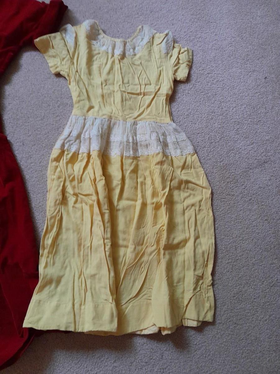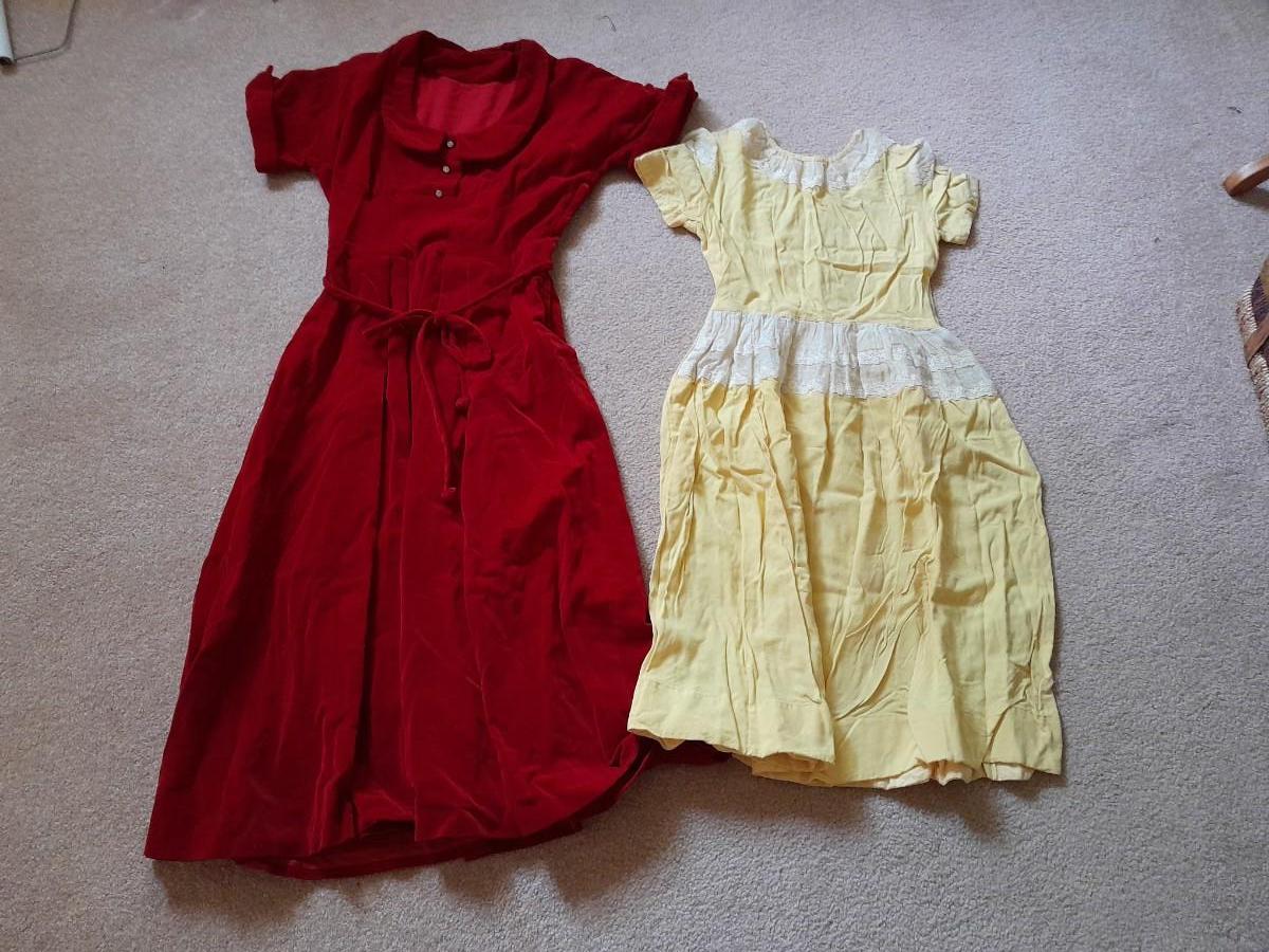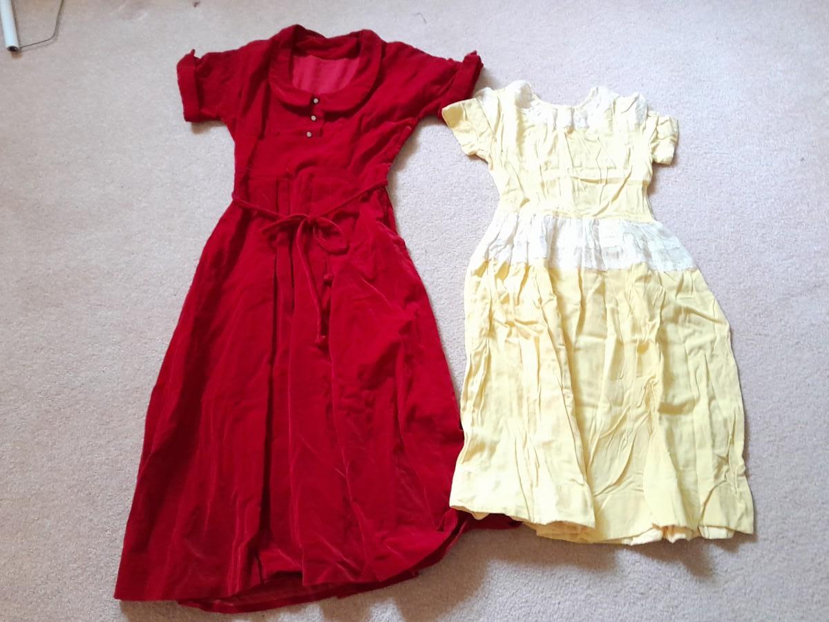 TWO VINTAGE DRESSES RED AND YELLOW APPROXIMATE AGE GROUP 5-9 YEARS