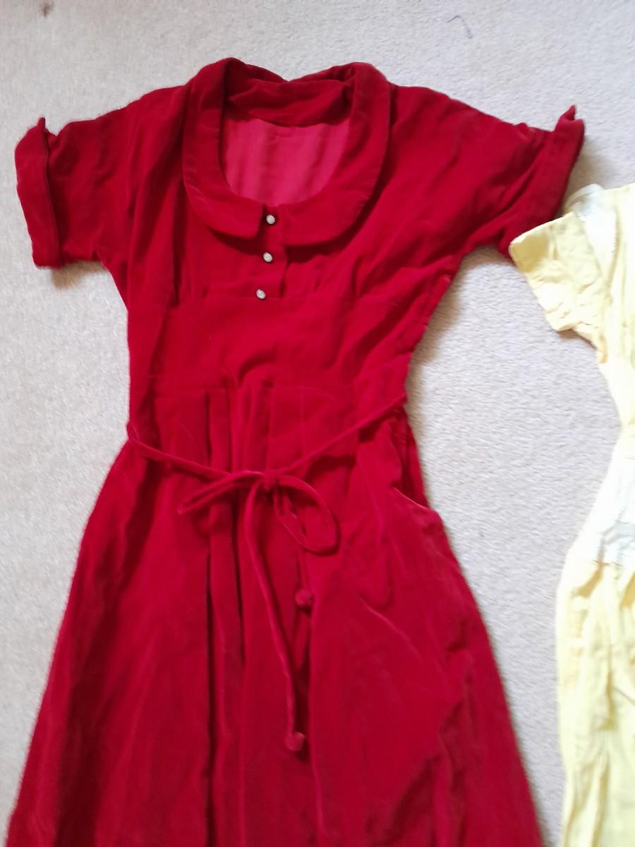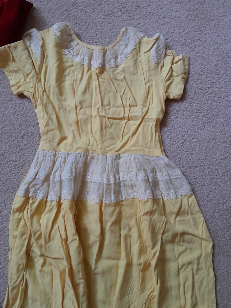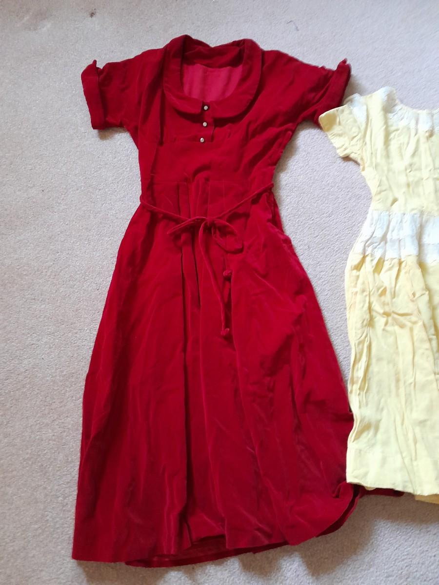 TWO VINTAGE DRESSES RED AND YELLOW APPROXIMATE AGE GROUP 5-9 YEARS