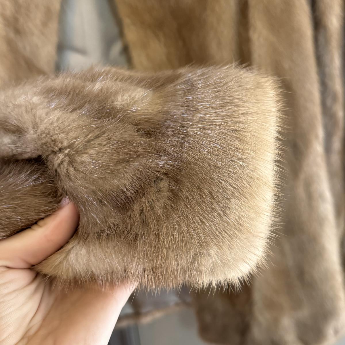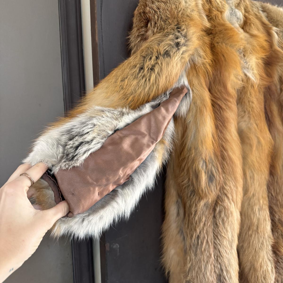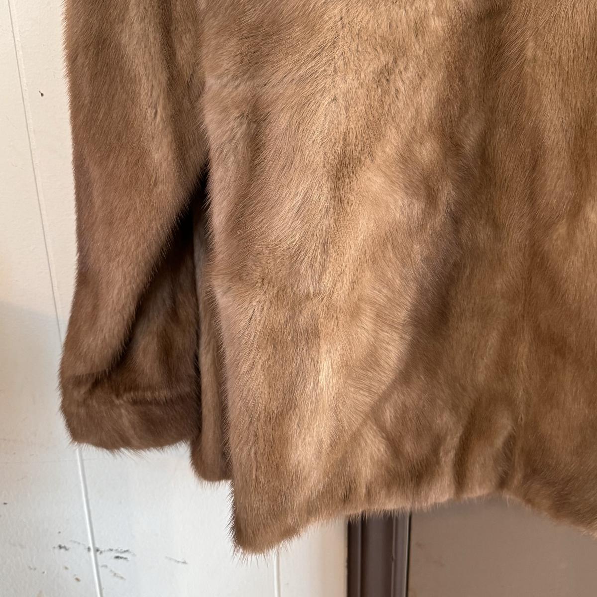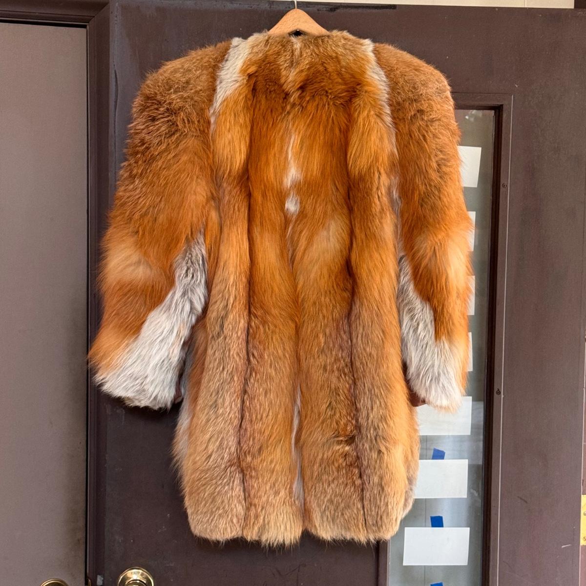 This lot includes one vintage fur coat from Enman’s Asheville, NC and another from Evans Furs at Belk. The first coat pictured has very broad shoulders. The coat itself measures 23” x 35”H. The second coat pictured has pockets and measures 22” x 29”H. There are no details listed about the fur on either coat. Shipping available.