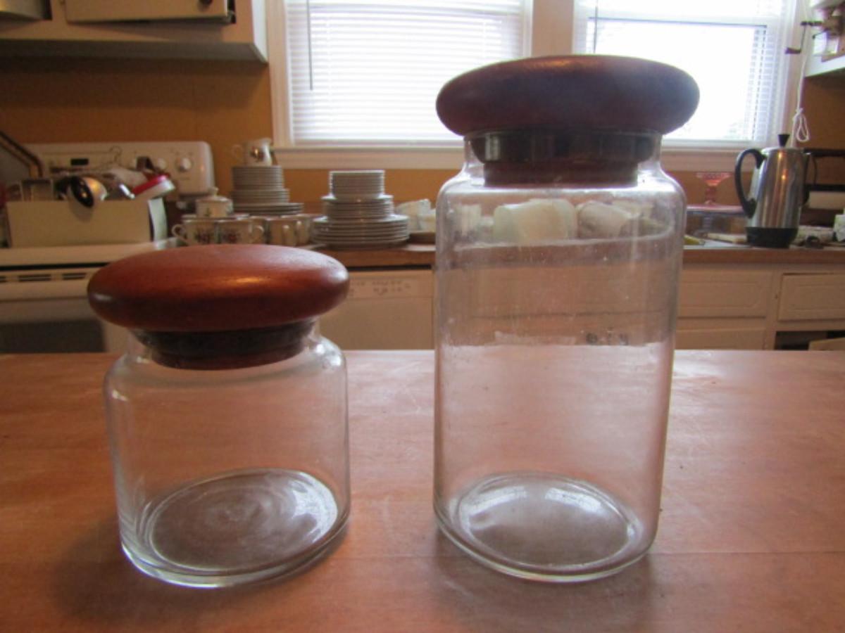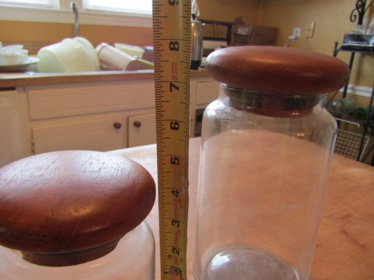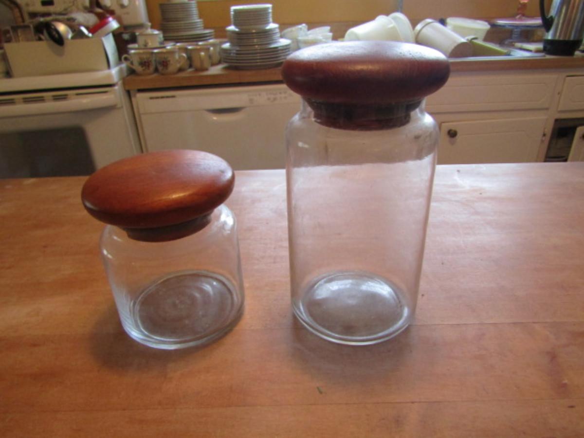 Two Vintage Glass Jars with Teakwood Lids by Dolphin