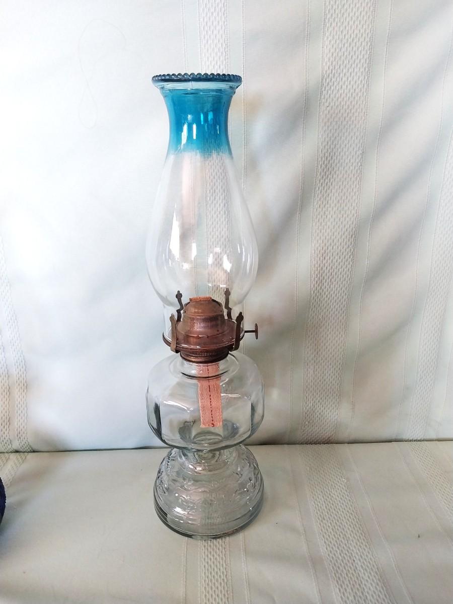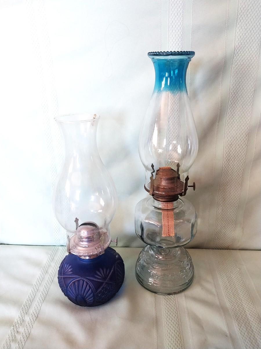 TWO VINTAGE GLASS OIL LAMPS
