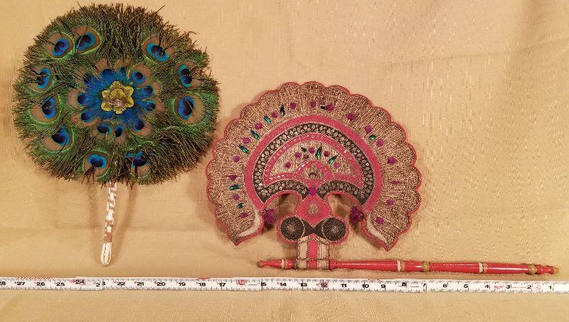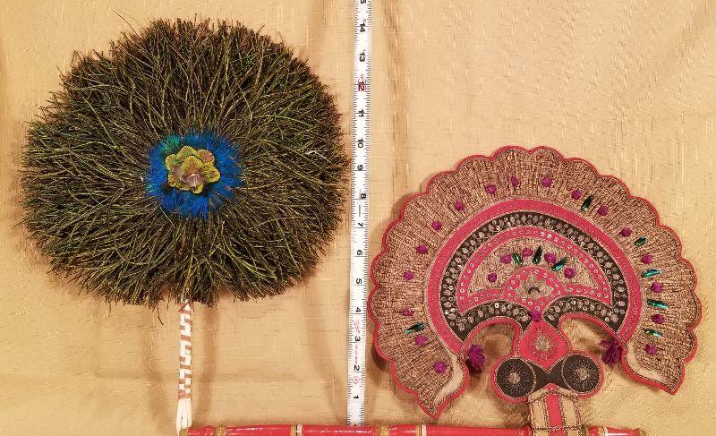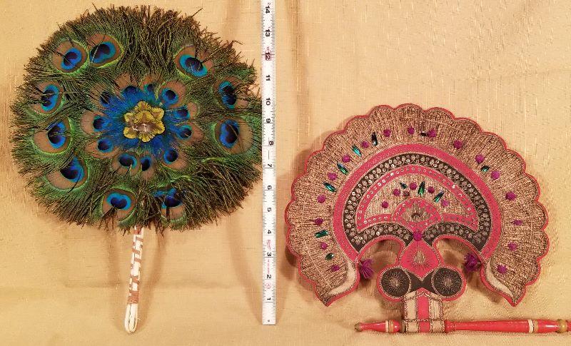 Peacock Fan is 15-inces tall with handle x 11-inches wide.