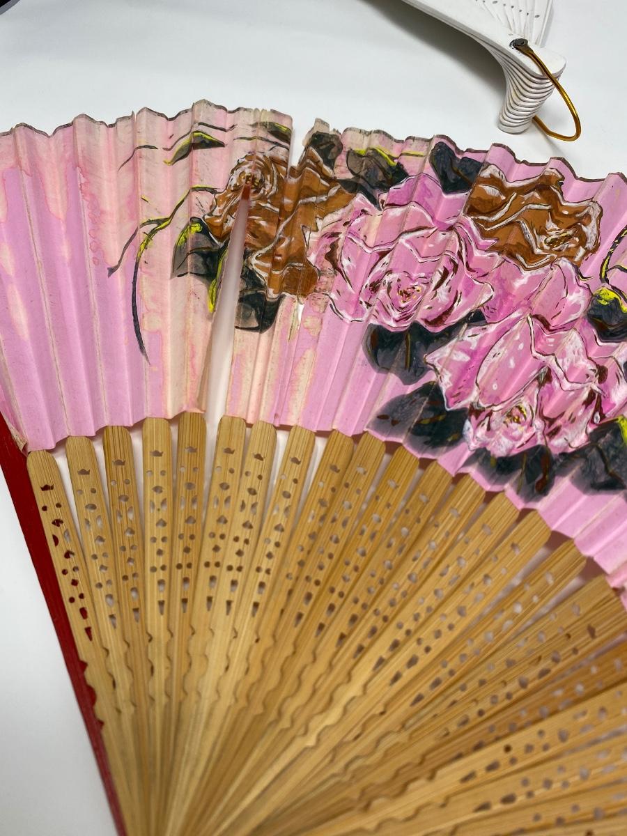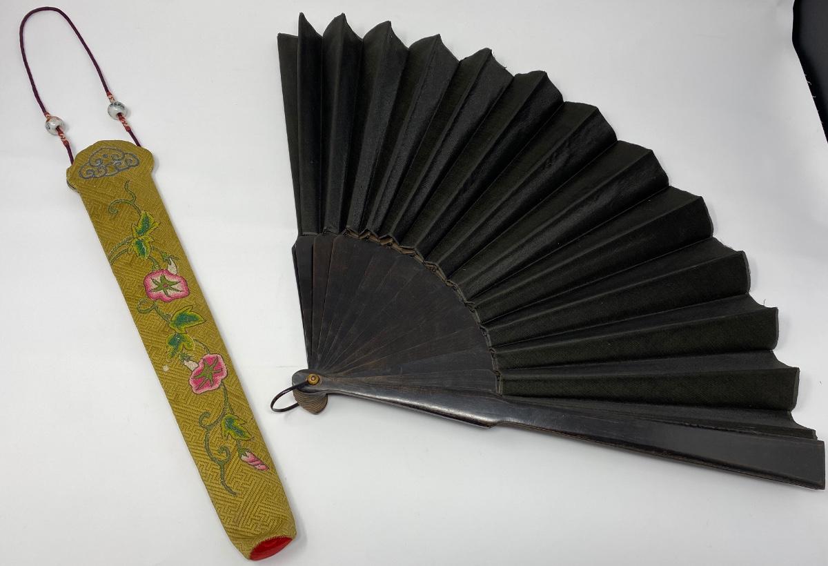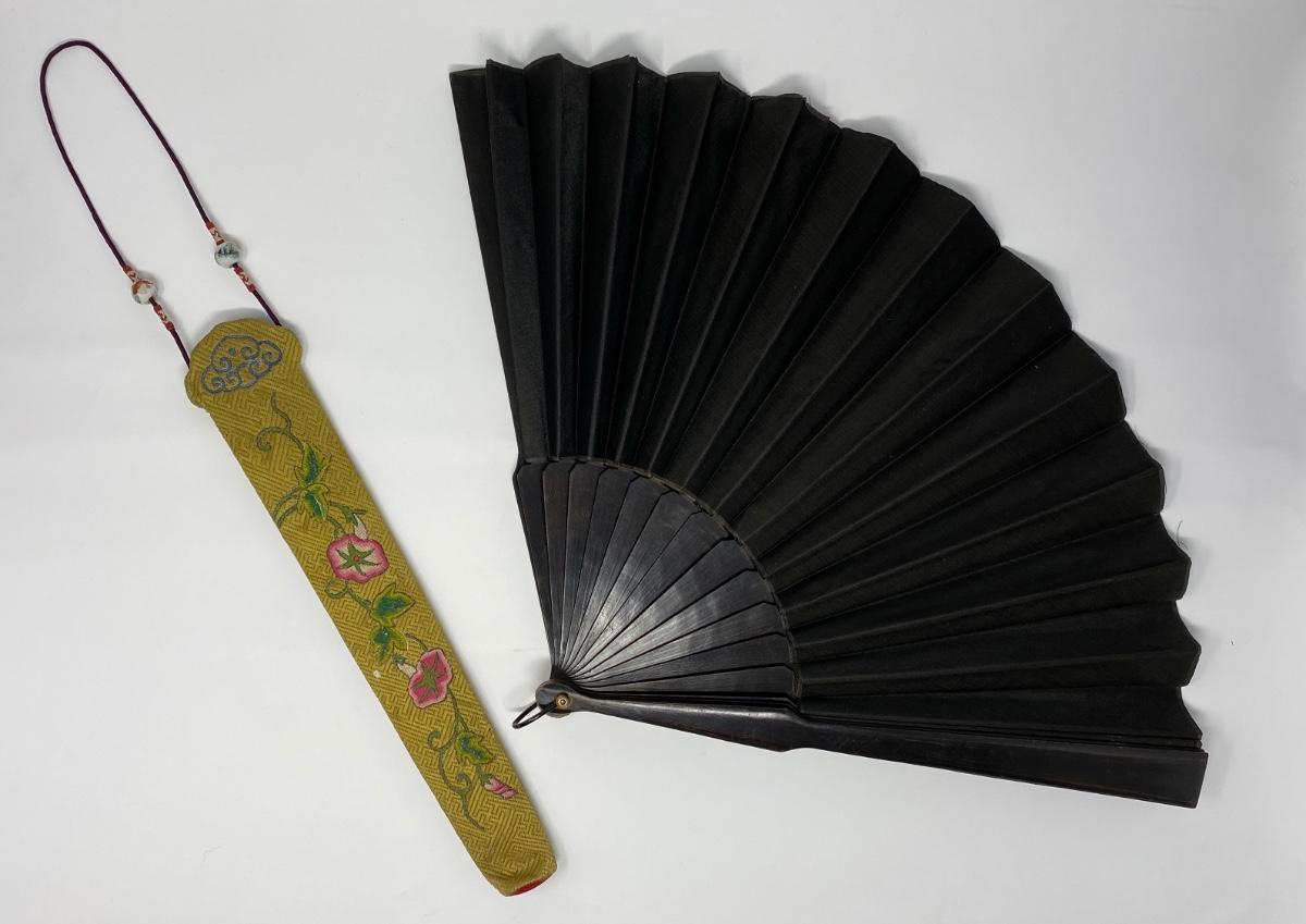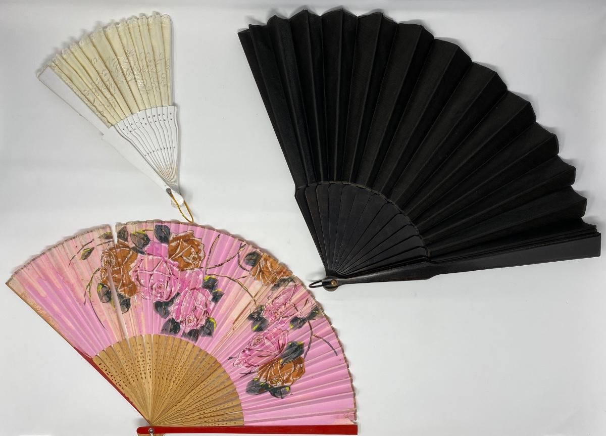 Two Vintage HandHeld Fans and One Large Black Leather Antique Handheld Fan