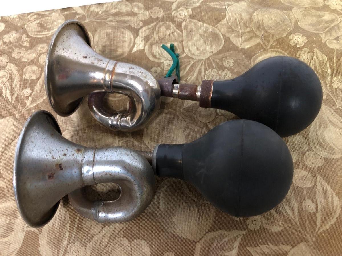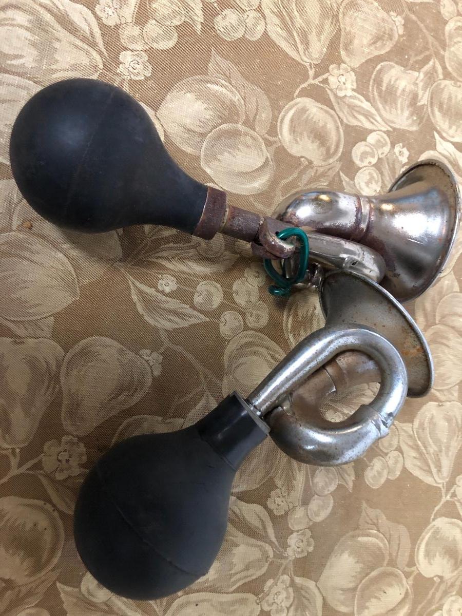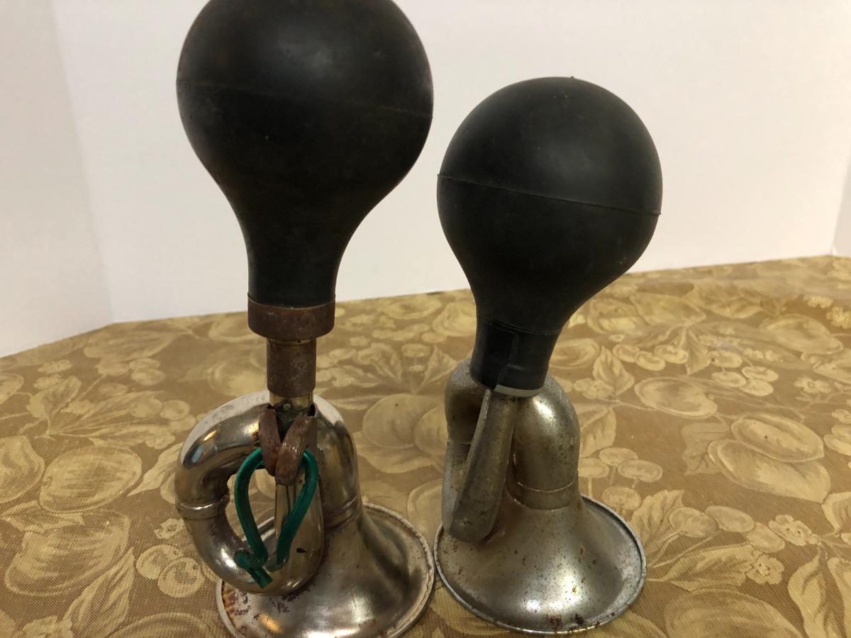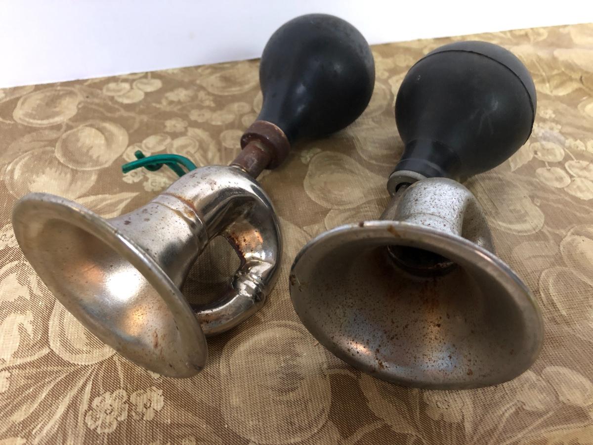 Two Vintage Chrome Squeeze Bicycle Horns (tested-works)