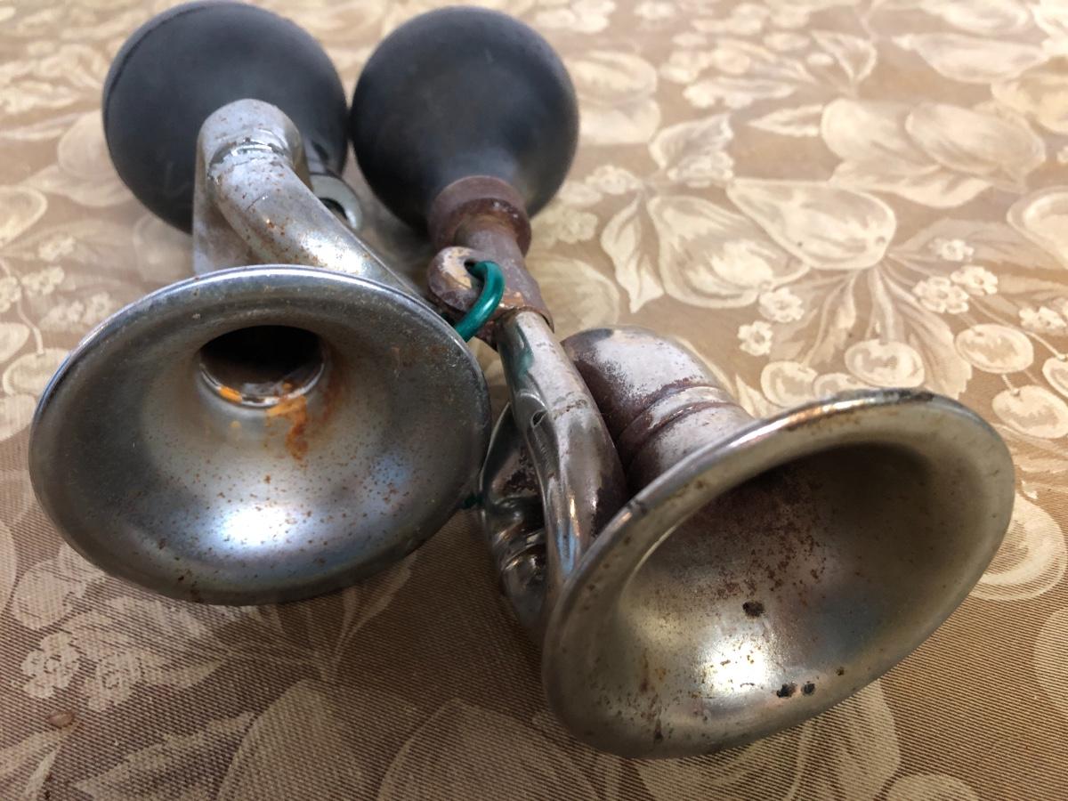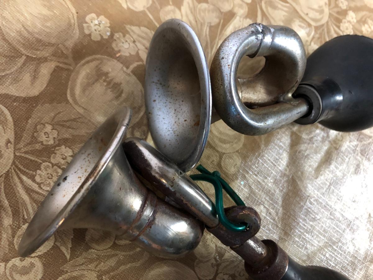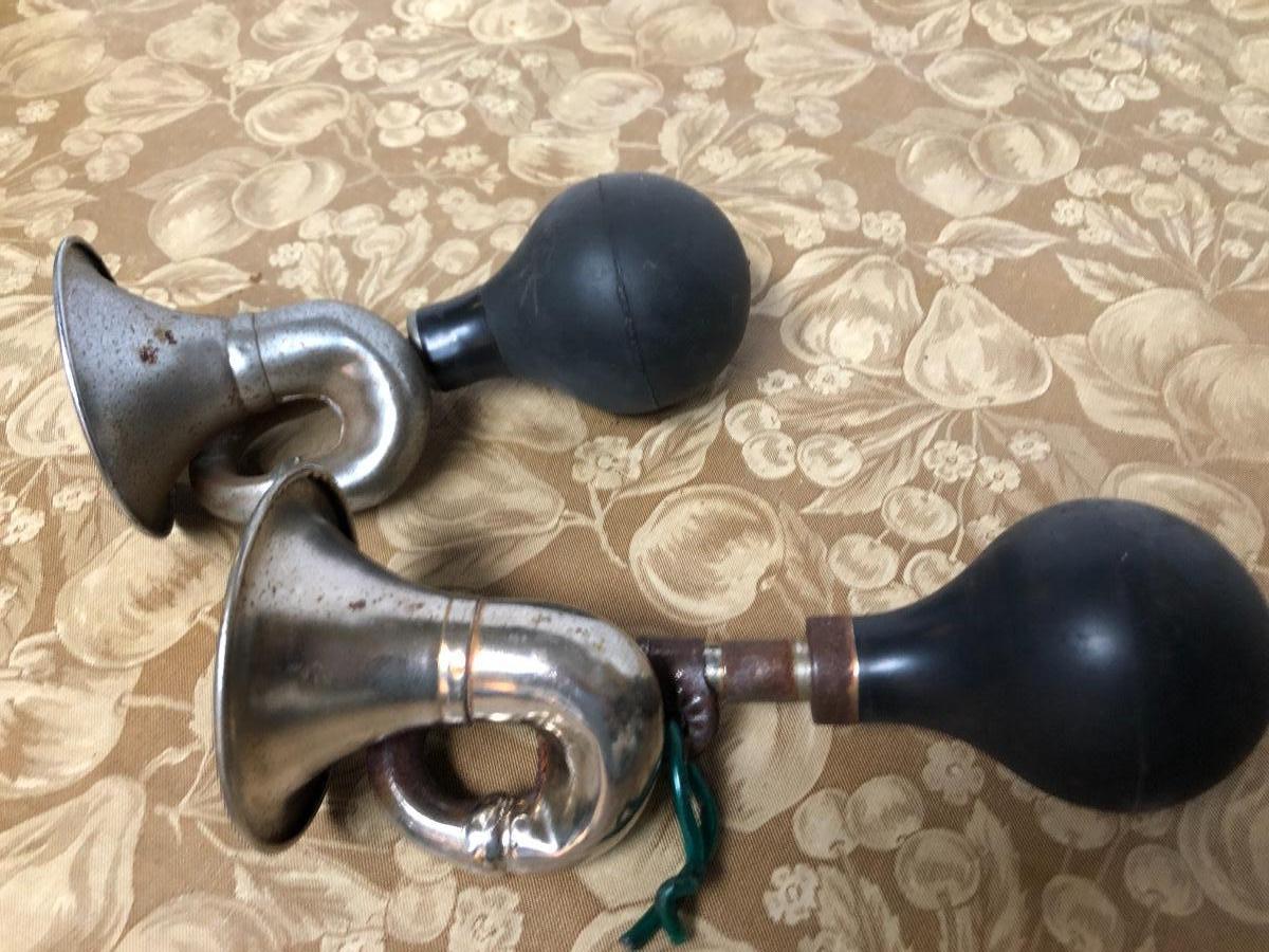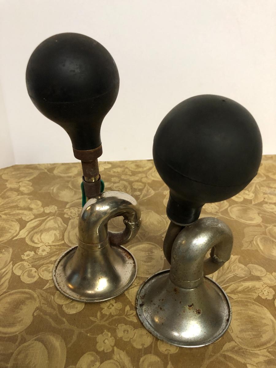 Two Vintage Chrome Squeeze Bicycle Horns (tested-works)