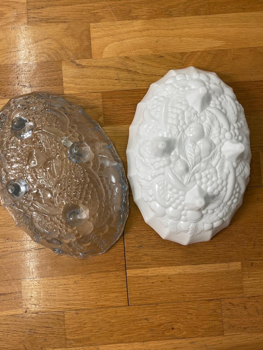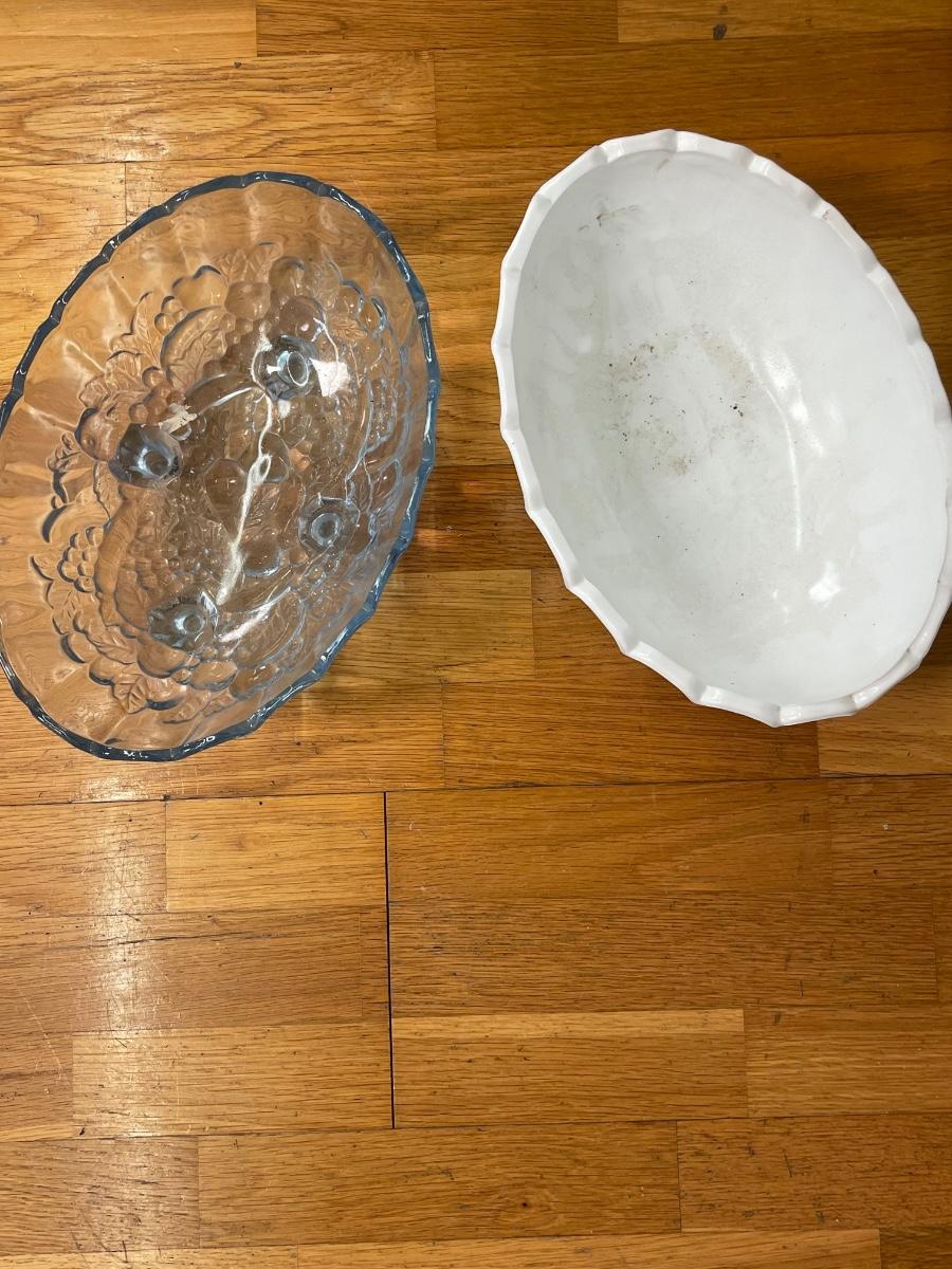 Two Vintage Indiana Glass Harvest Fruit Serving Bowl 12x9