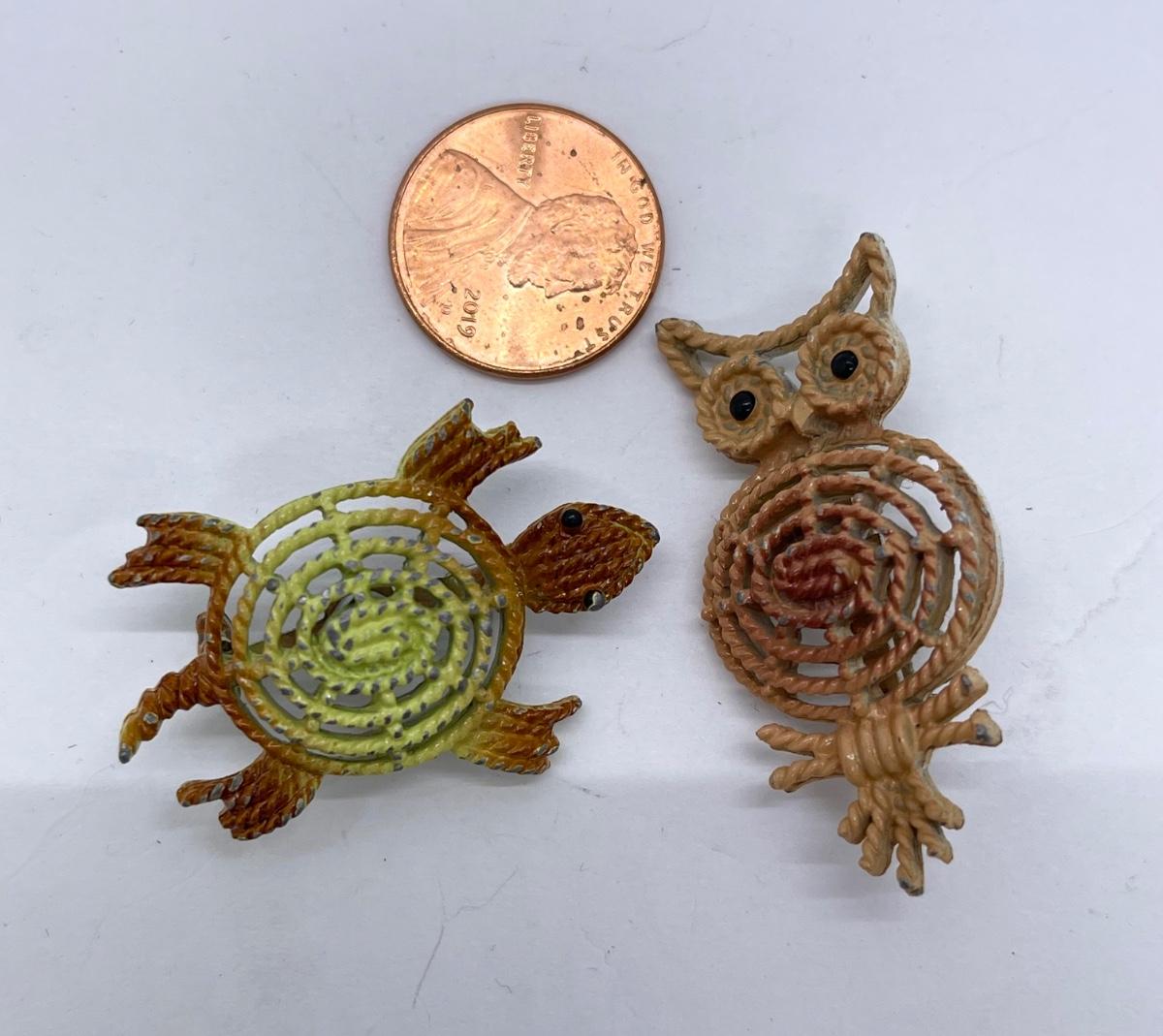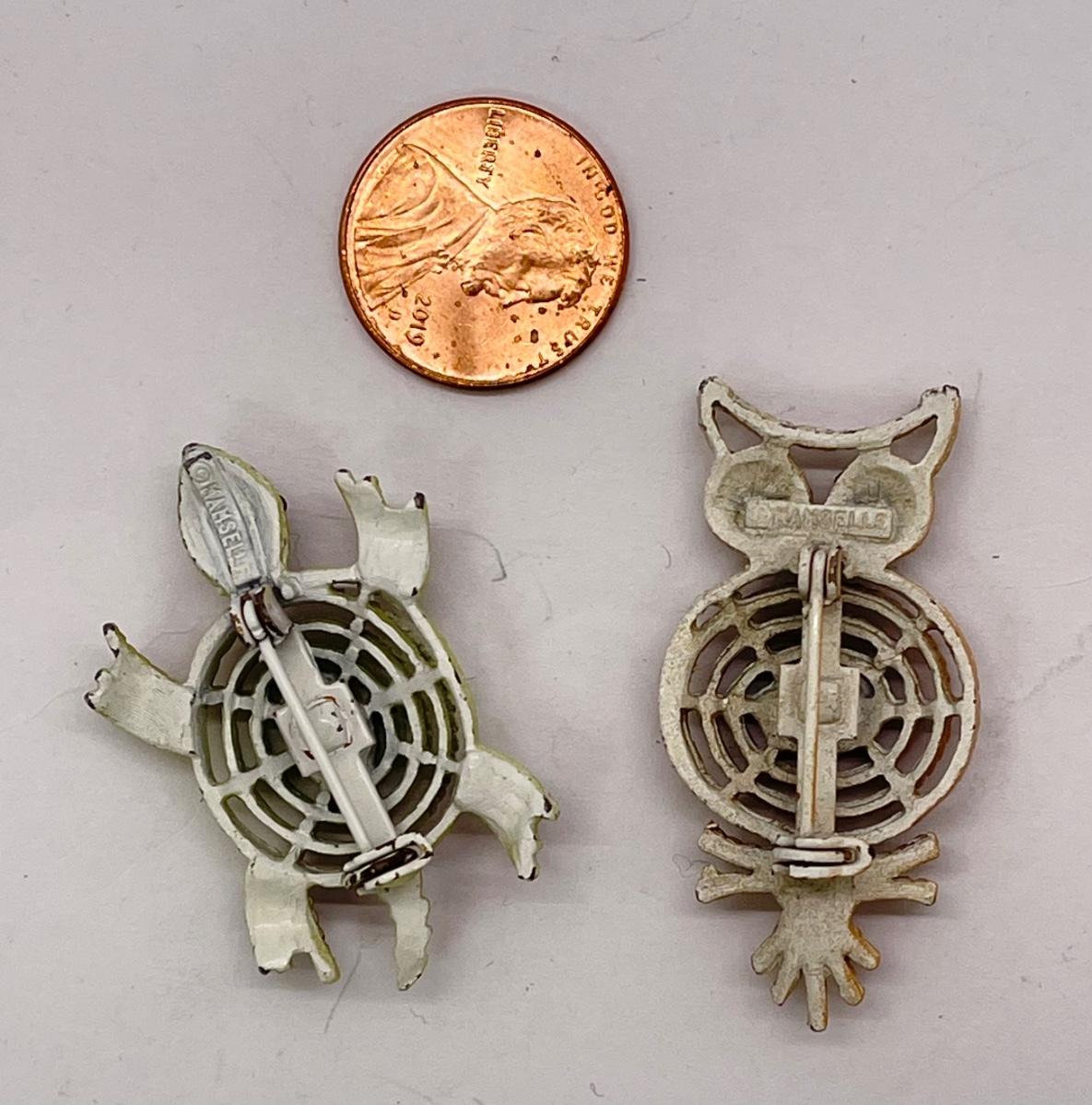 Two Vintage Mamselle pins Brooch Turtle & Owl MCM