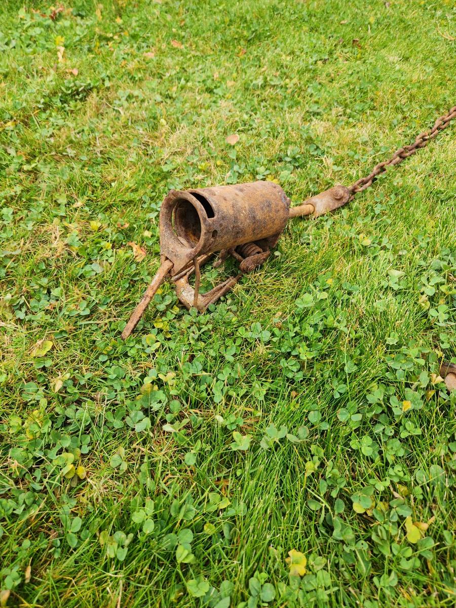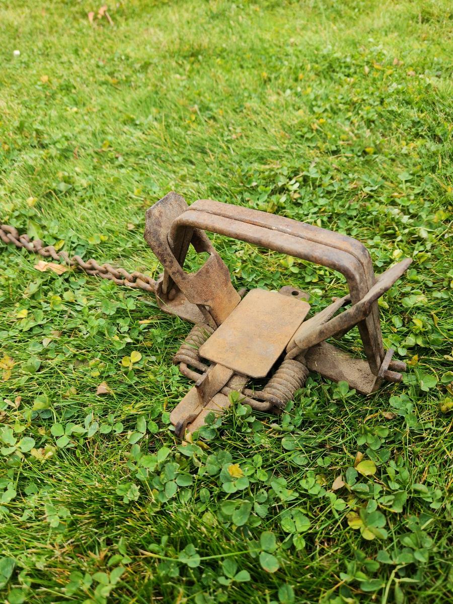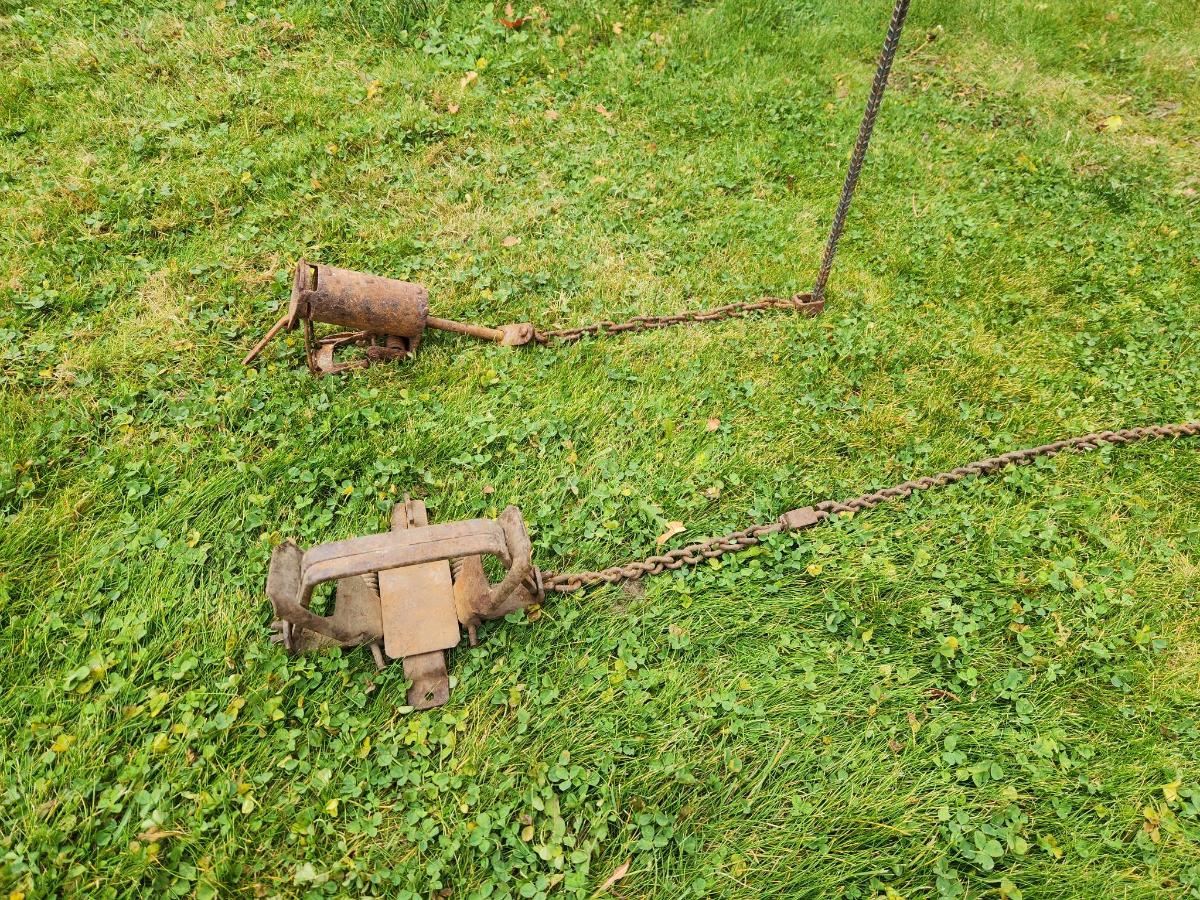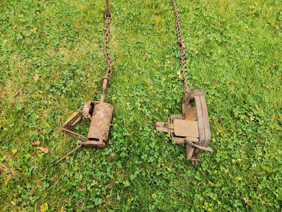 Two Vintage Metal Animal Traps with Chains