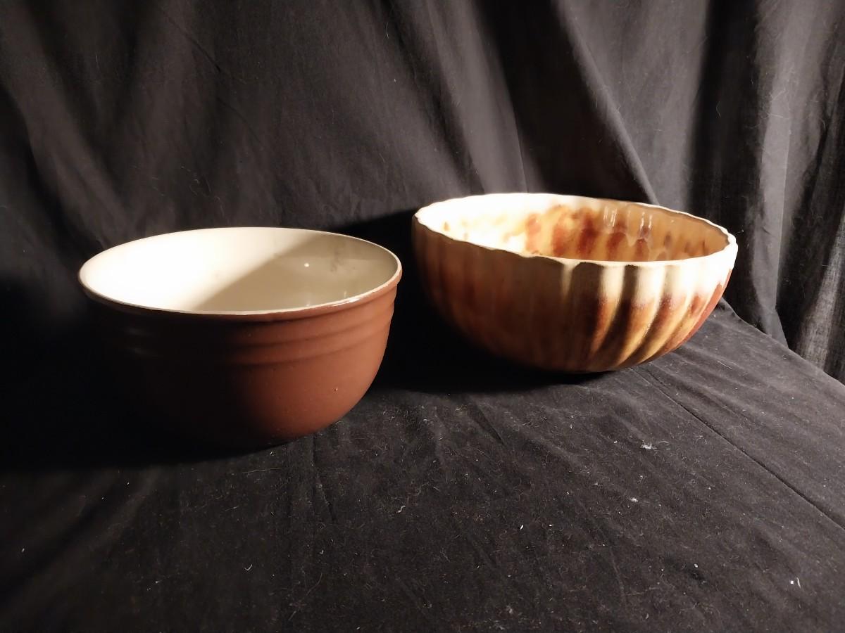 TWO VINTAGE MIXING BOWLS ONE MARKED "STONEWARE MADE IN USA"