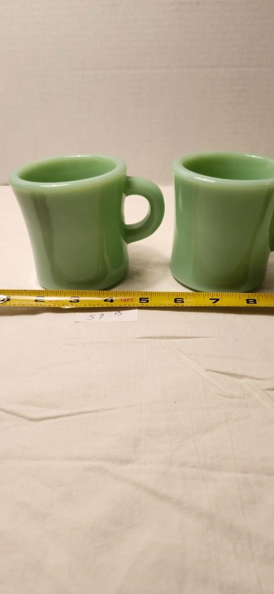 Two Vintage Oven Fire-King Ware Jadeite Green D-Handle Glass Mug