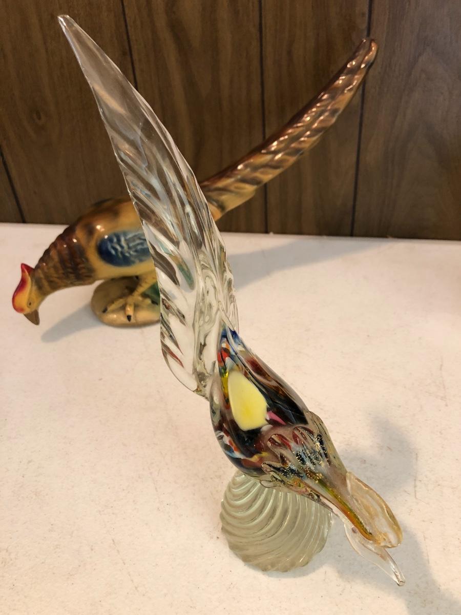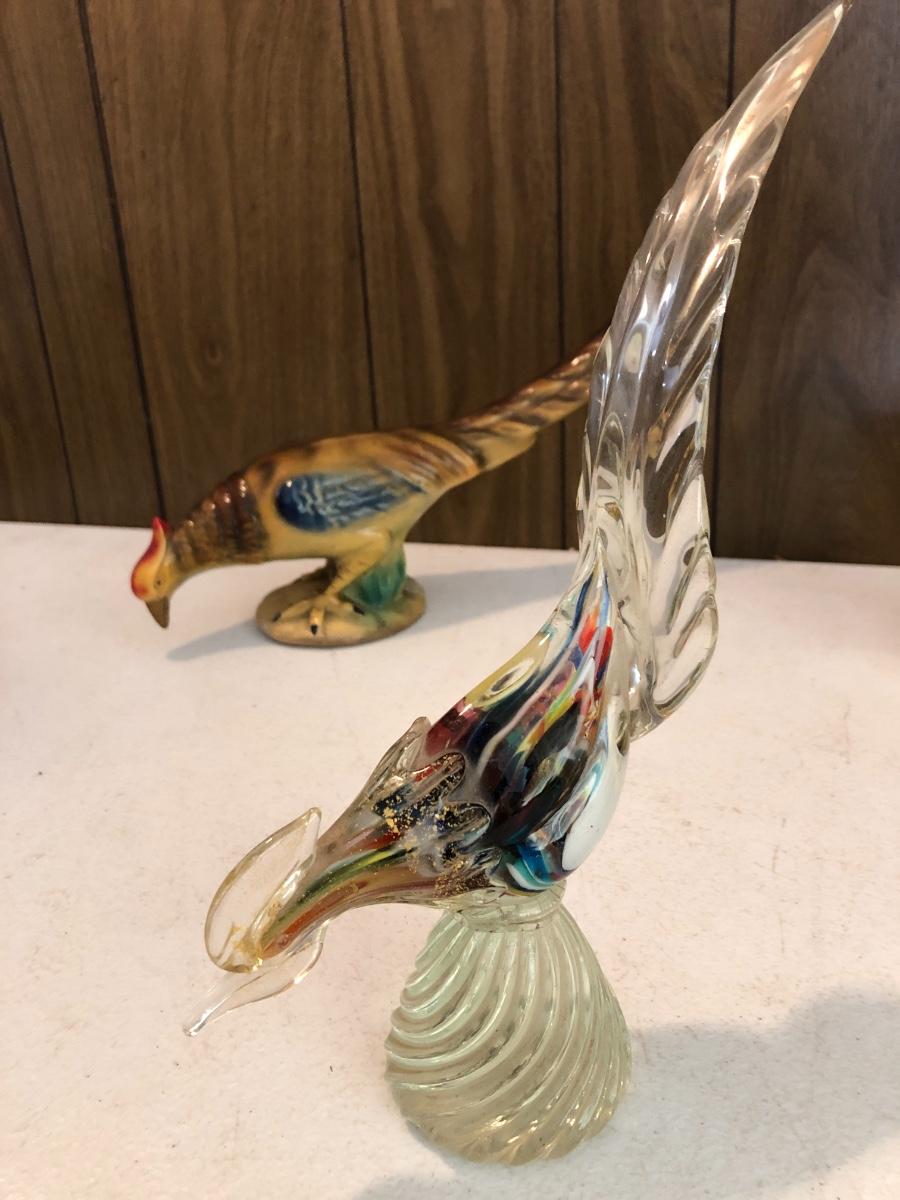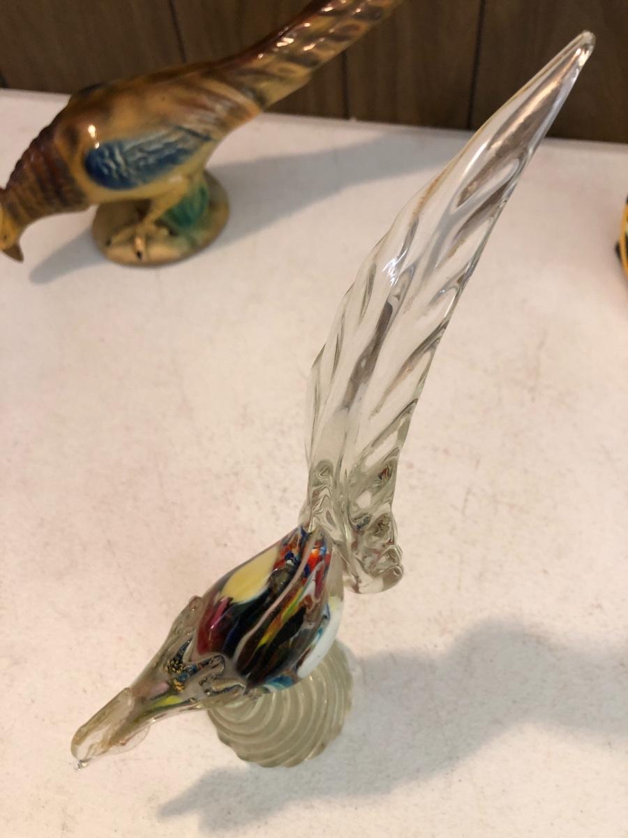 All items are sold as is, as found in the estate. Please see all photos for content, measurements and condition. Glass Pheasant Murano?