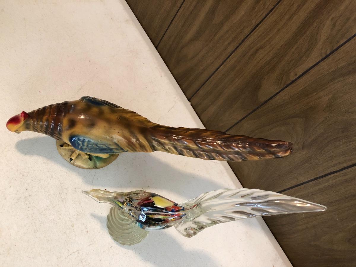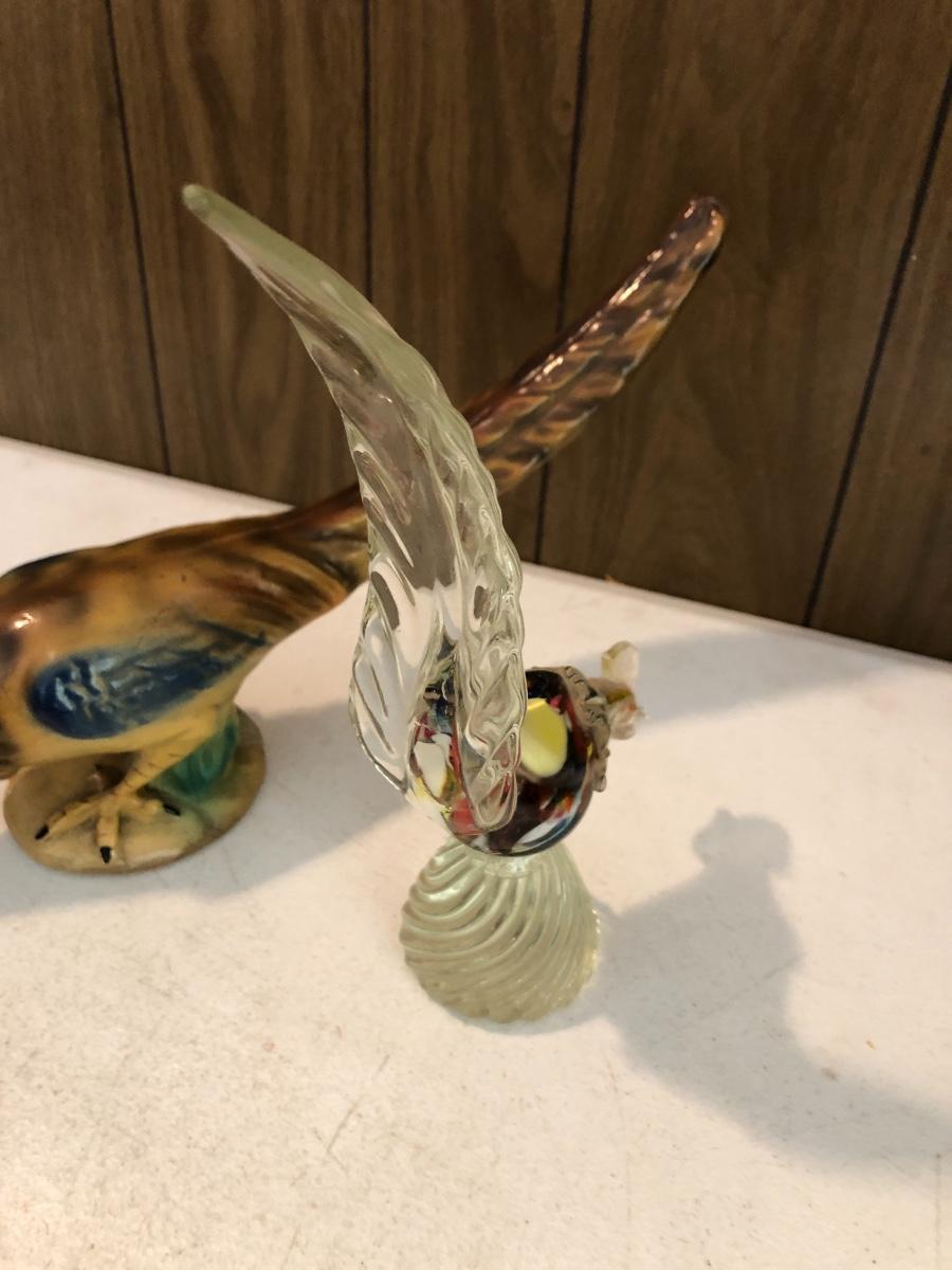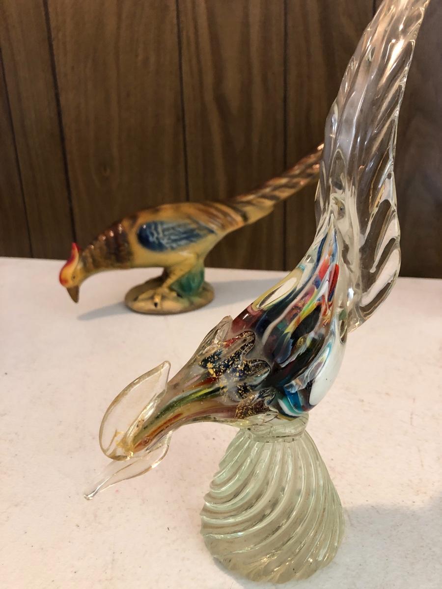 All items are sold as is, as found in the estate. Please see all photos for content, measurements and condition. Glass Pheasant Murano?