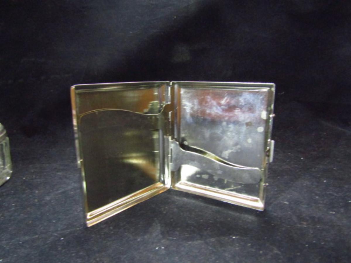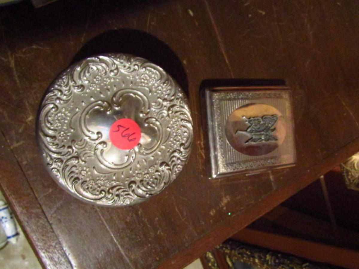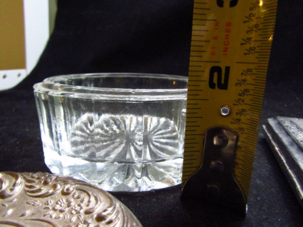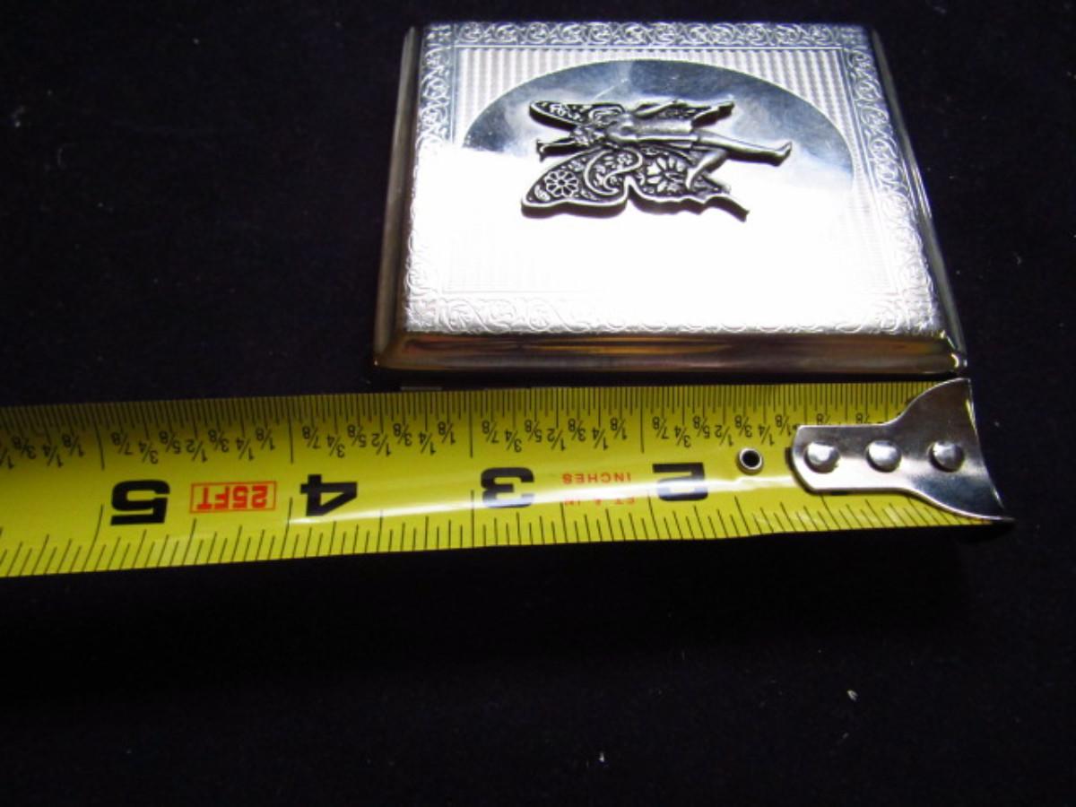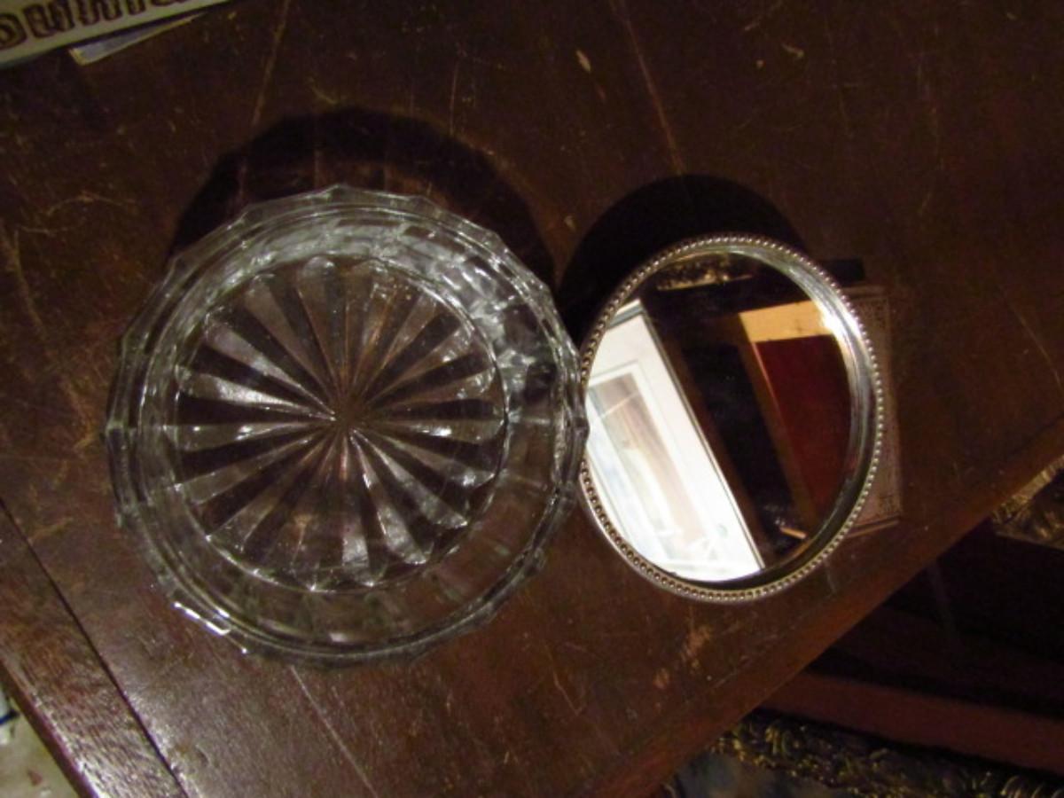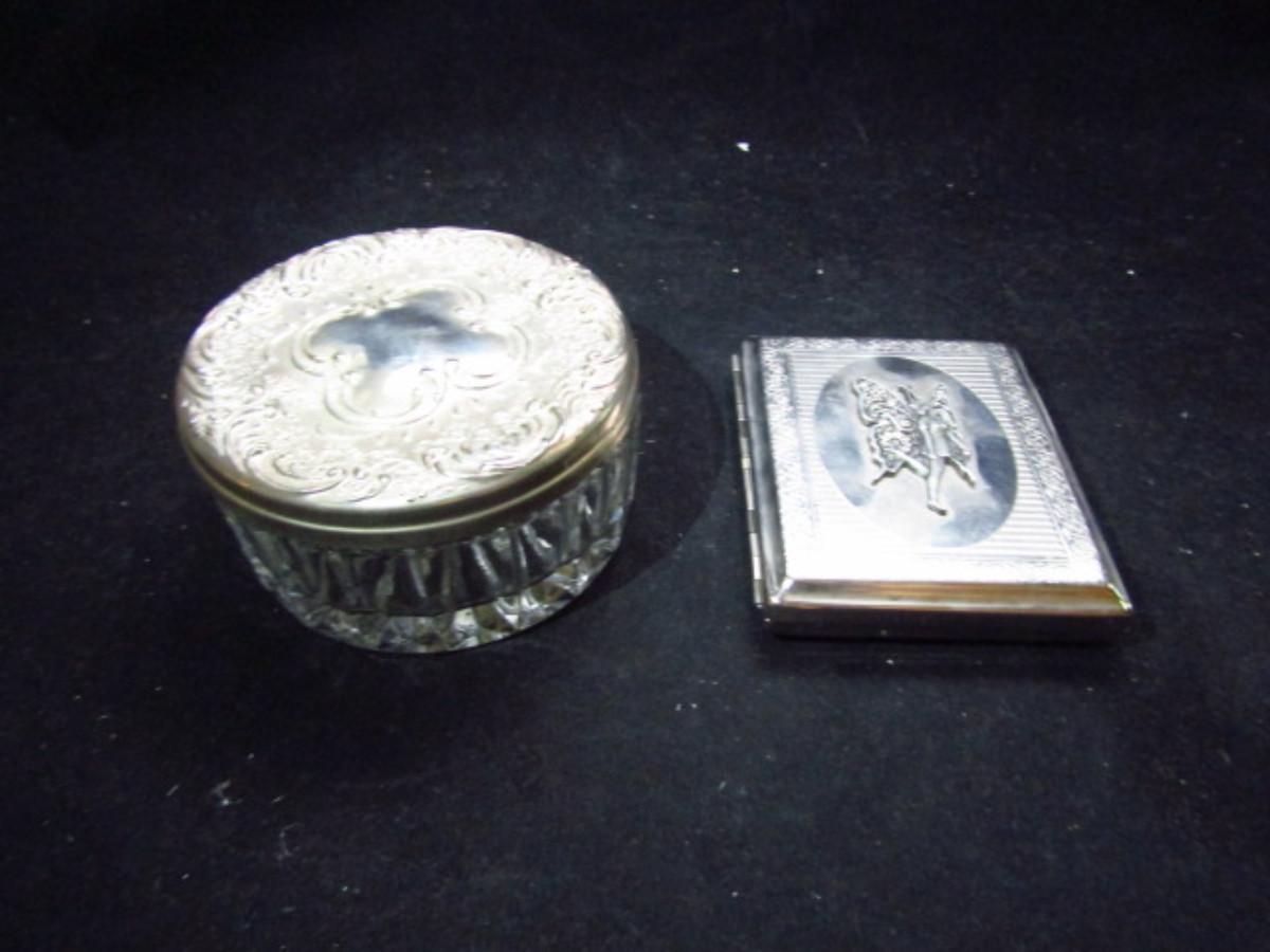 Two Vintage Pieces- Metal Case with Fairy Accent and Glass Vanity Jar with Mirrored Lid (#566)