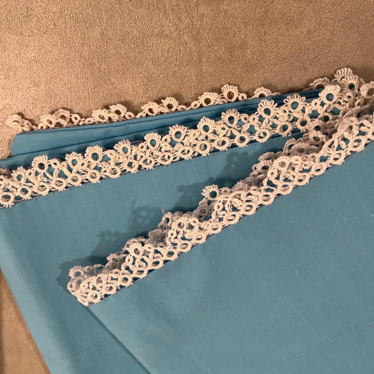 The blue color is a gray/blue. Both sets standard size, both like new!