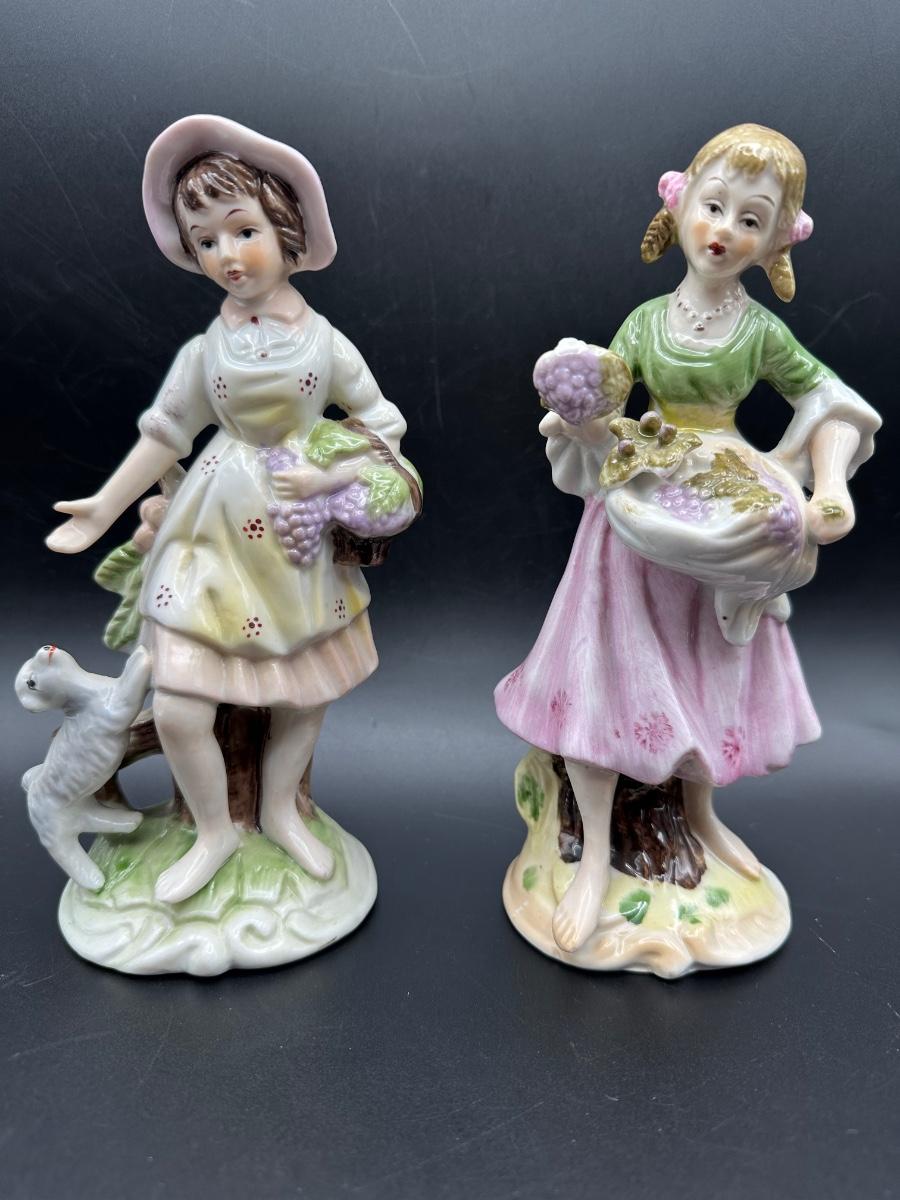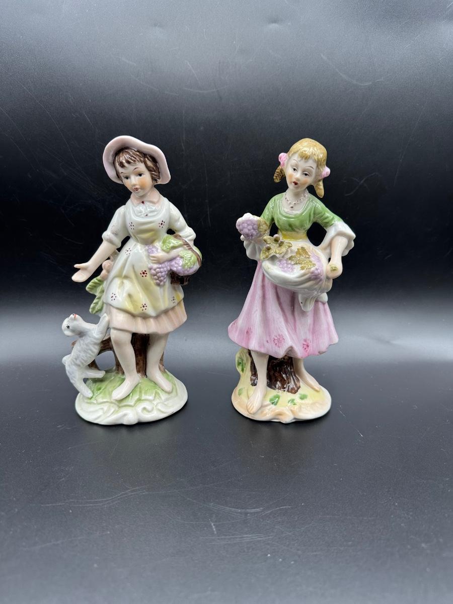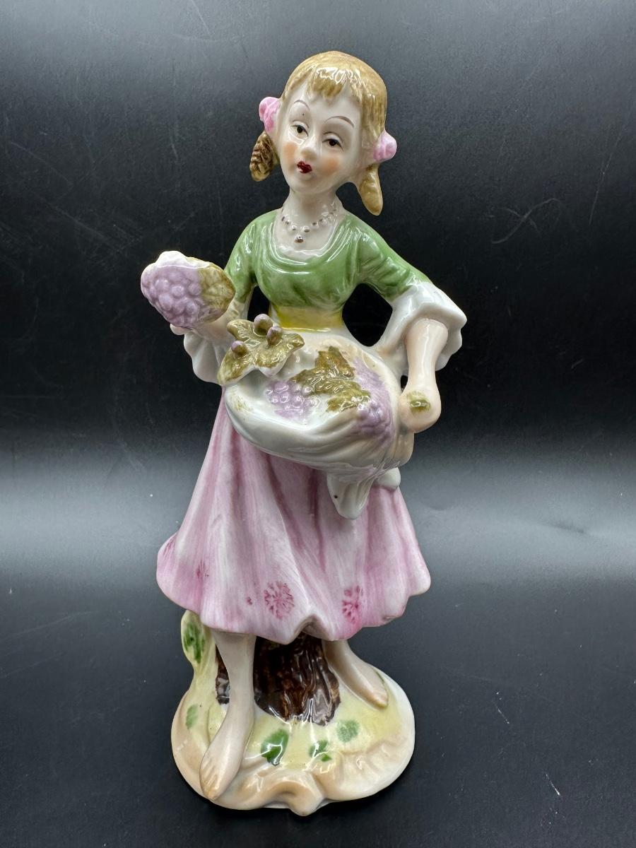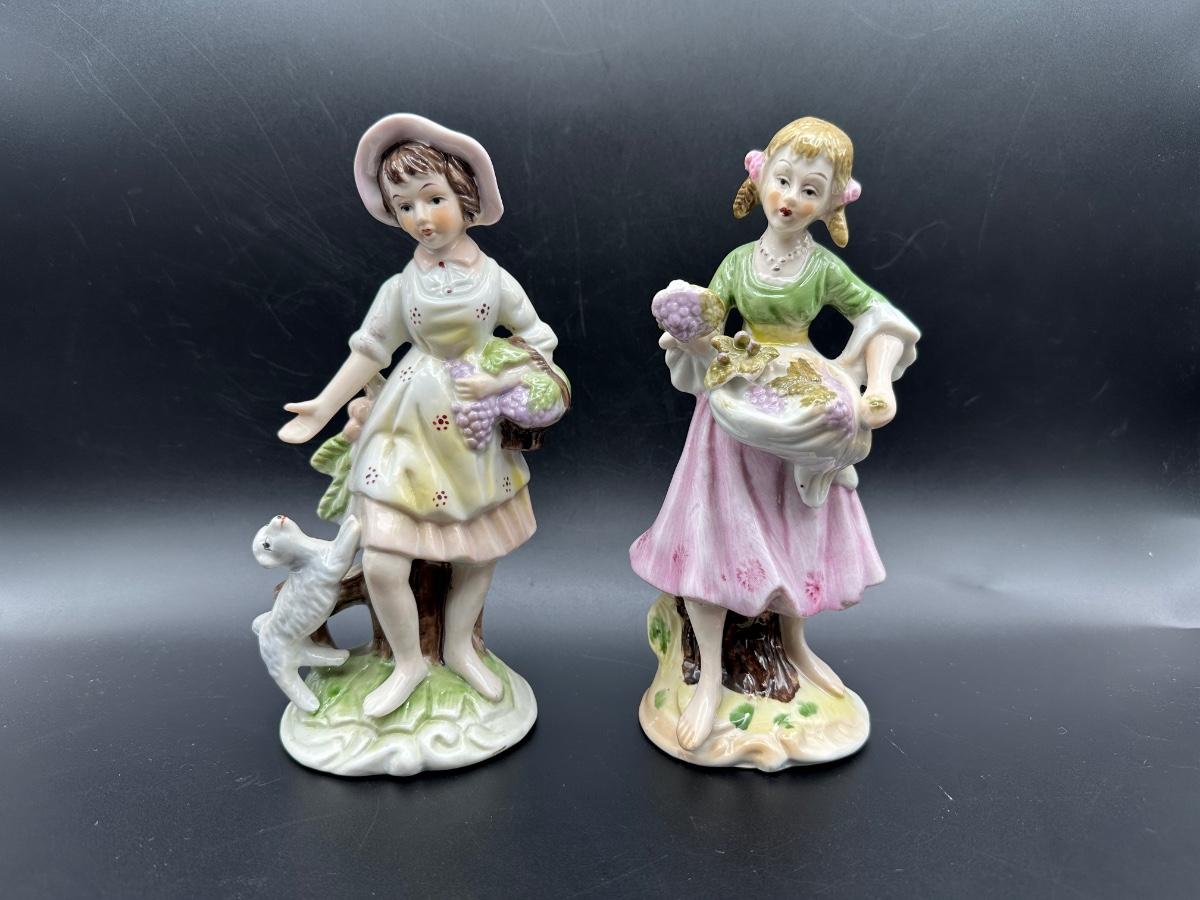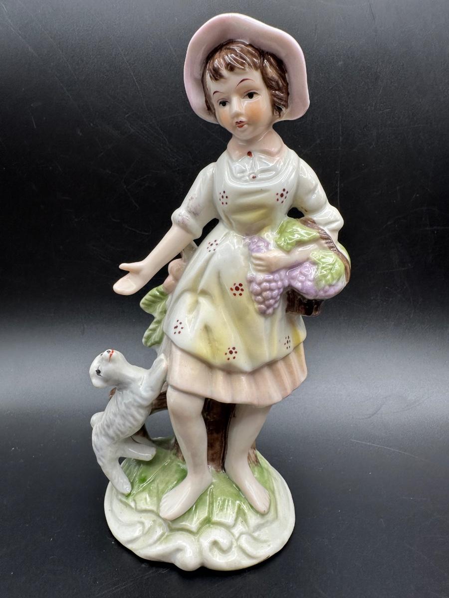 “Mary Had A Little Lamb” Porcelain Bisque & Porcelain Lady with Grapes.
