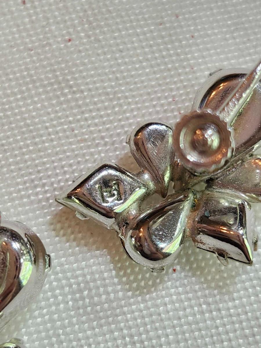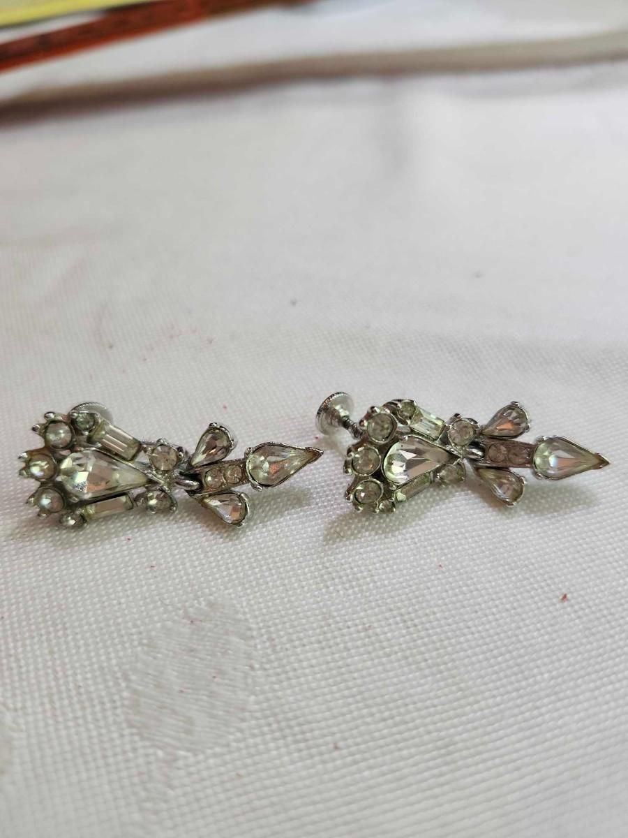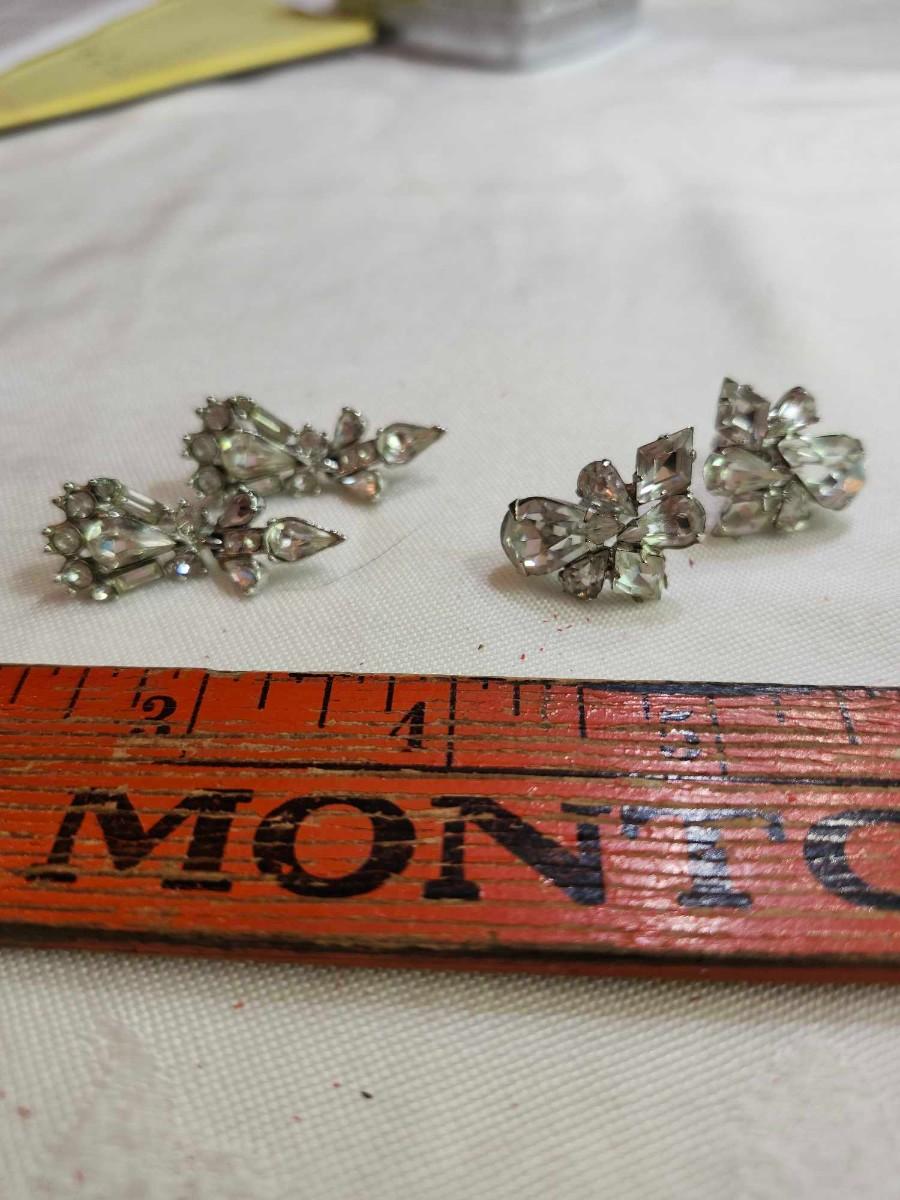 Two Vintage signed Art-Deco Rhinestone Earrings, Clip 1930s one signed Bogoff