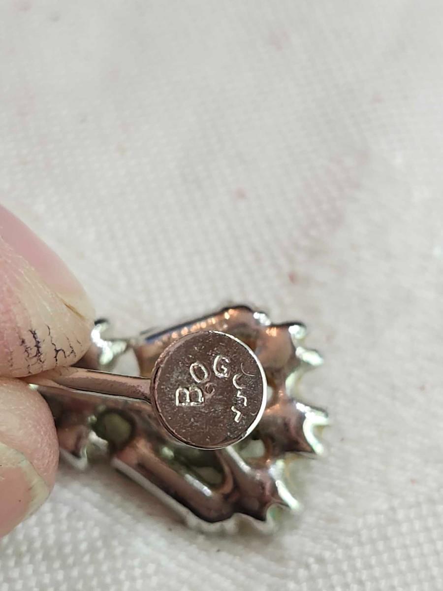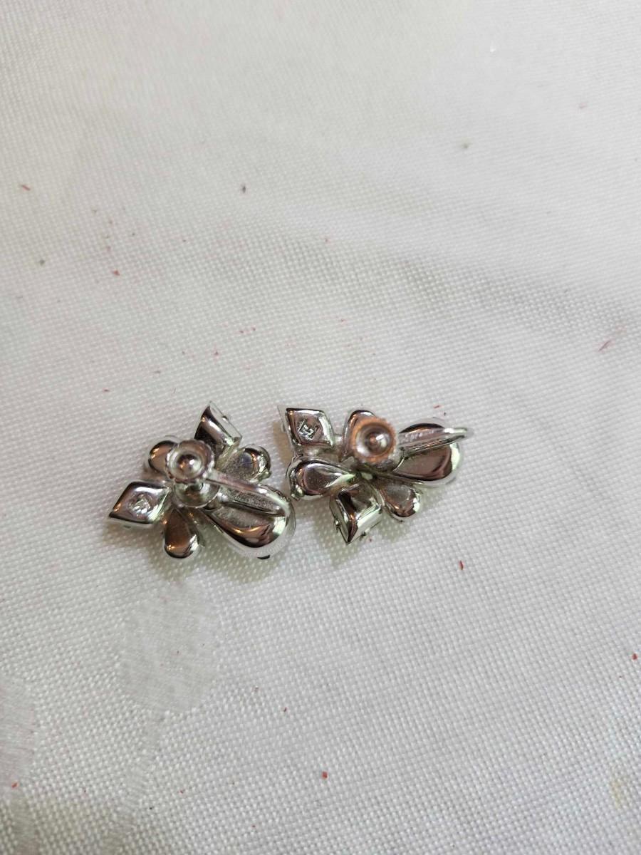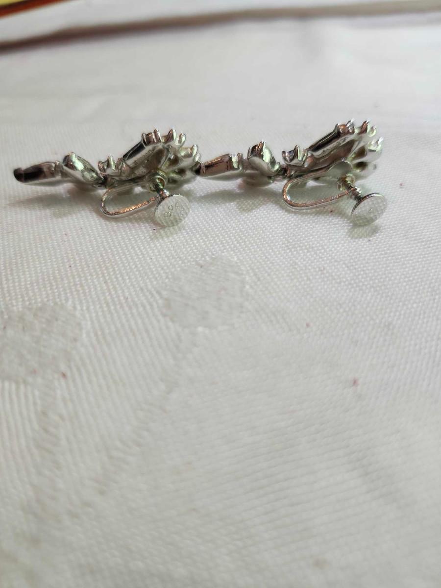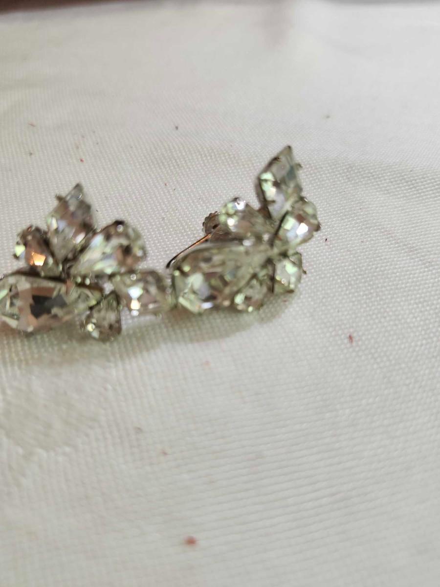 Two Vintage signed Art-Deco Rhinestone Earrings, Clip 1930s one signed Bogoff