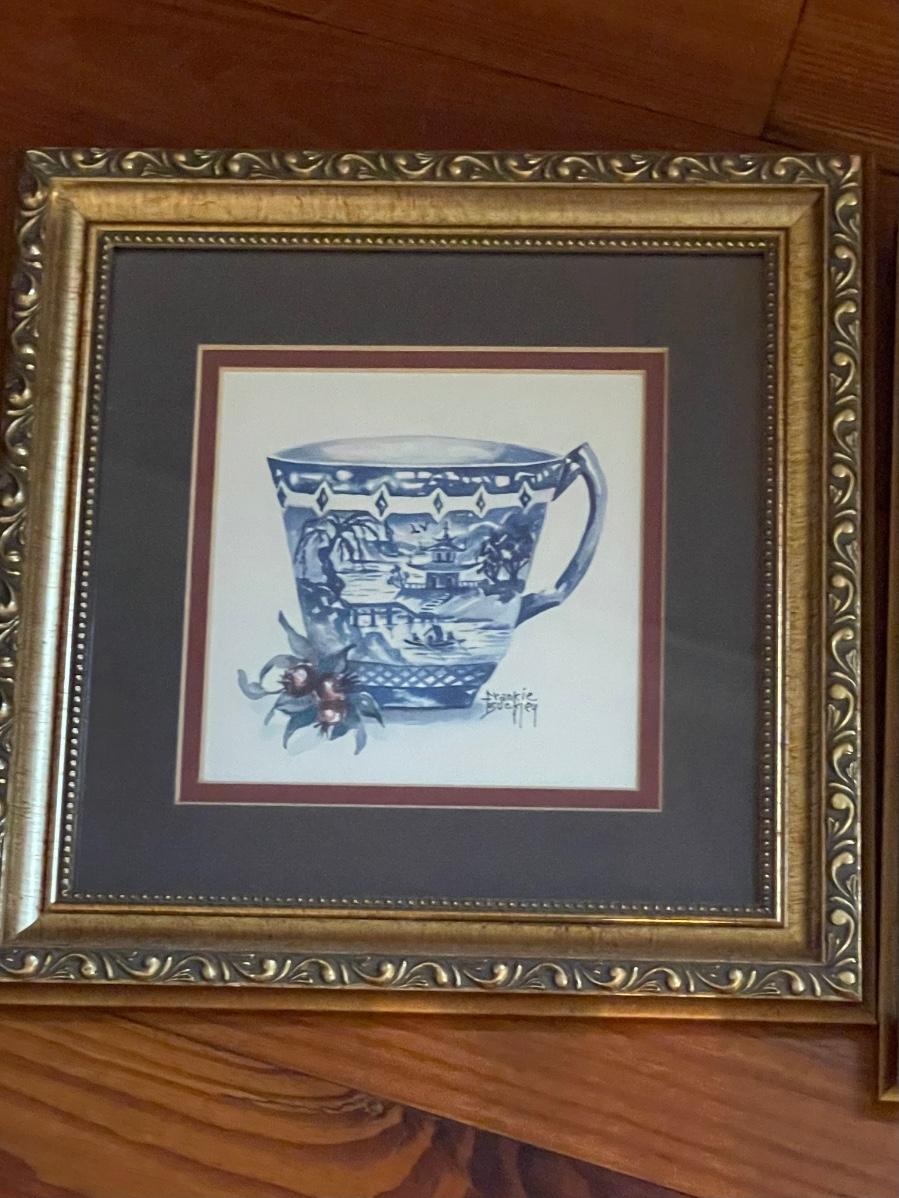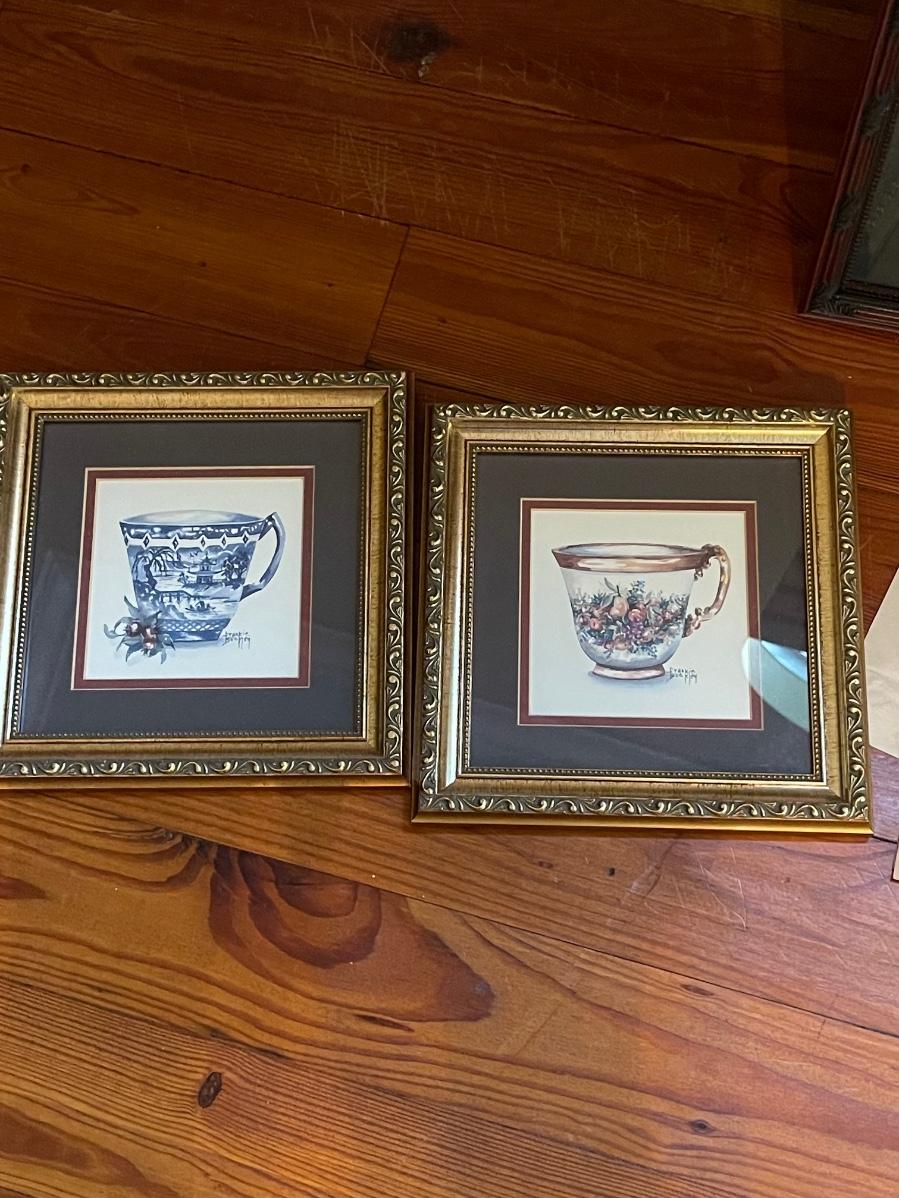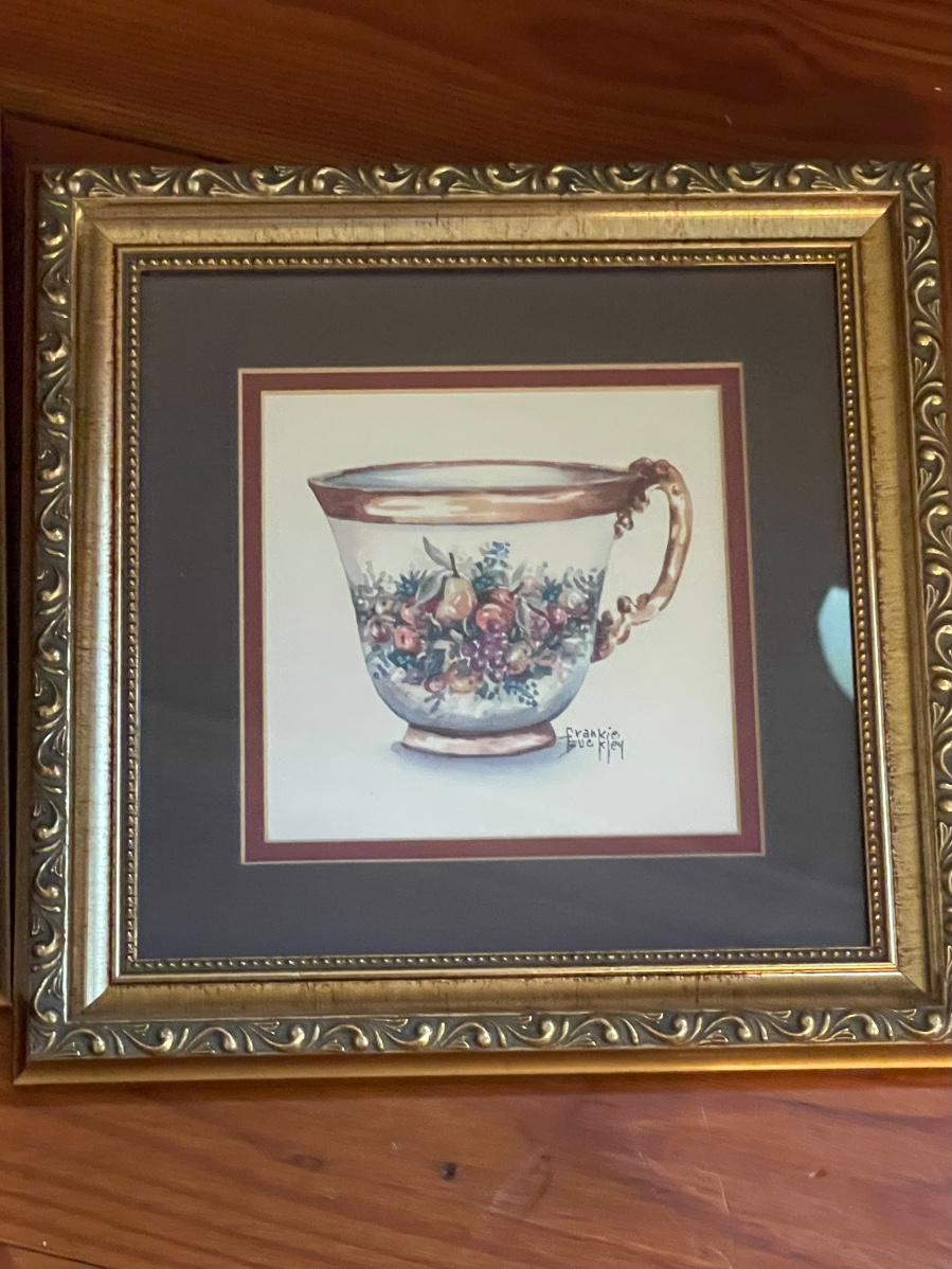 Two Vintage Signed Frankie Buckley Teacup Pictures