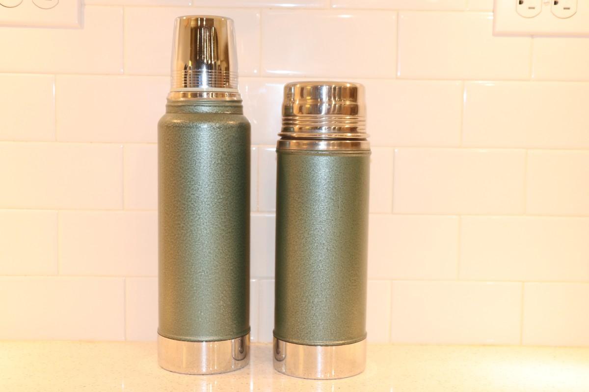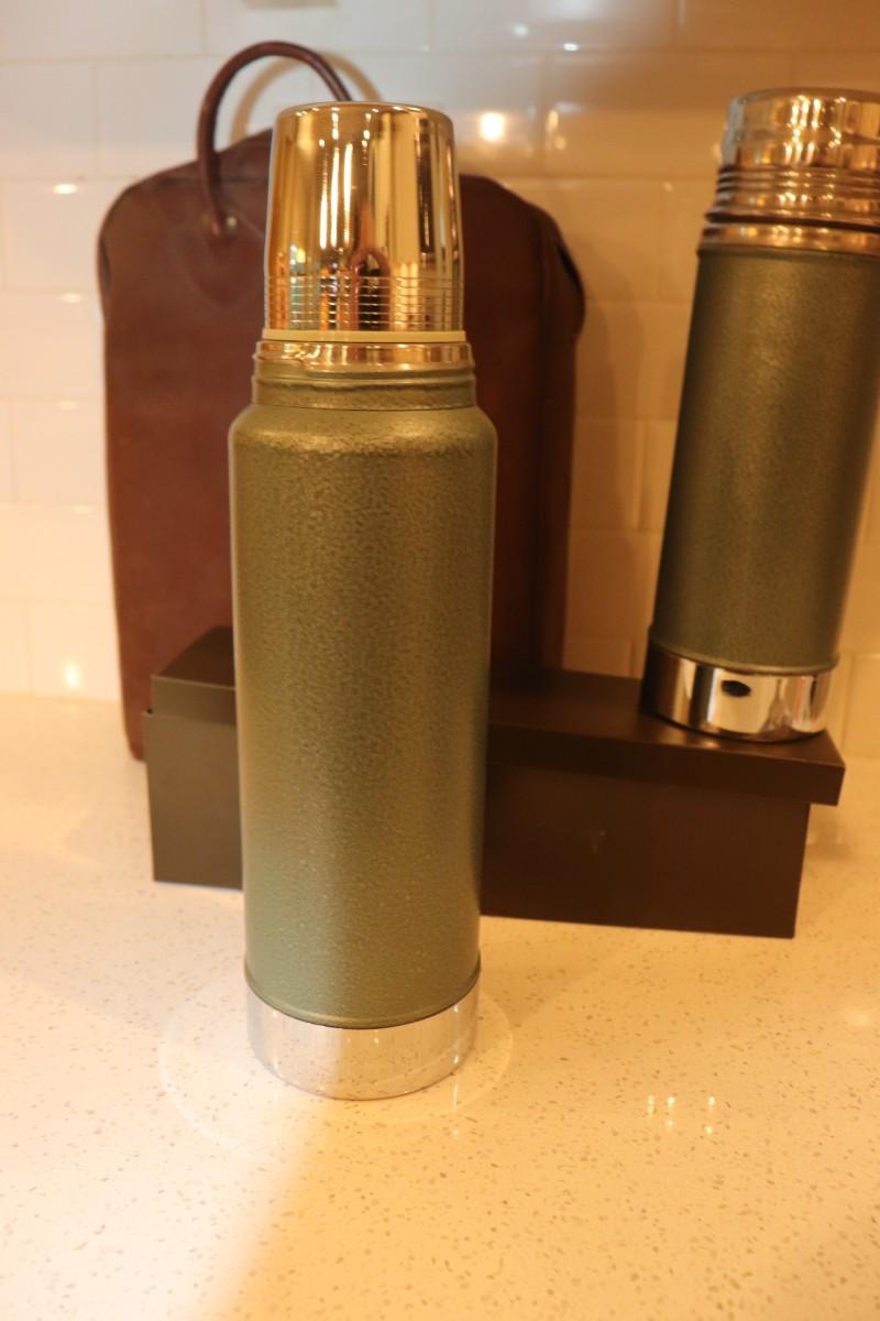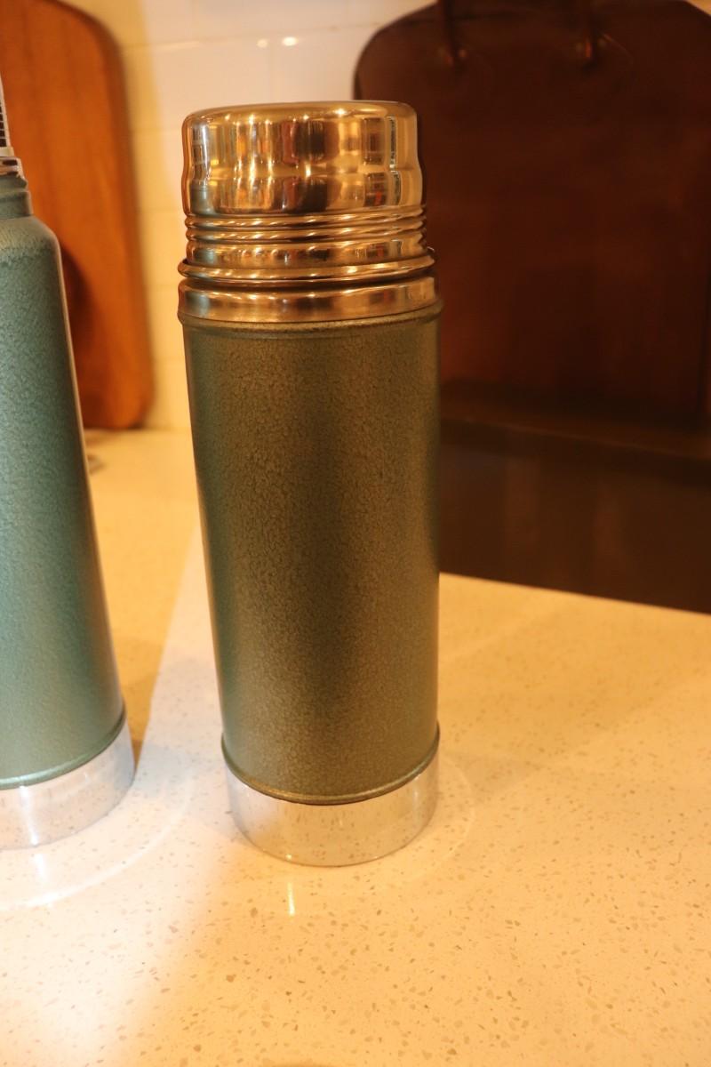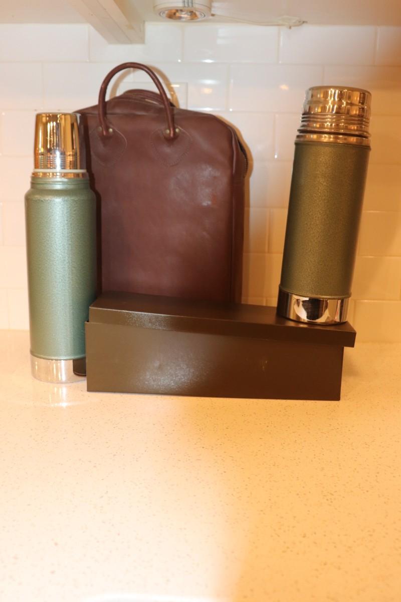 Two Vintage Stanley & a Vintage Brown Pleather LL&B Bean Carrier: Functional and stylish, these carriers are perfect for transporting your favorite snacks or picnic essentials.