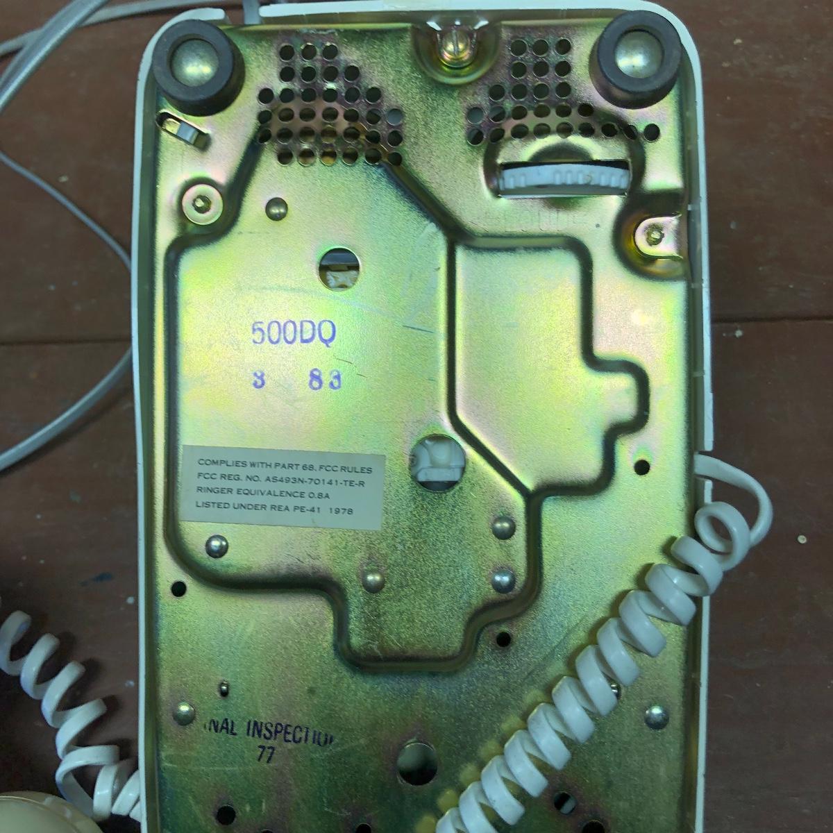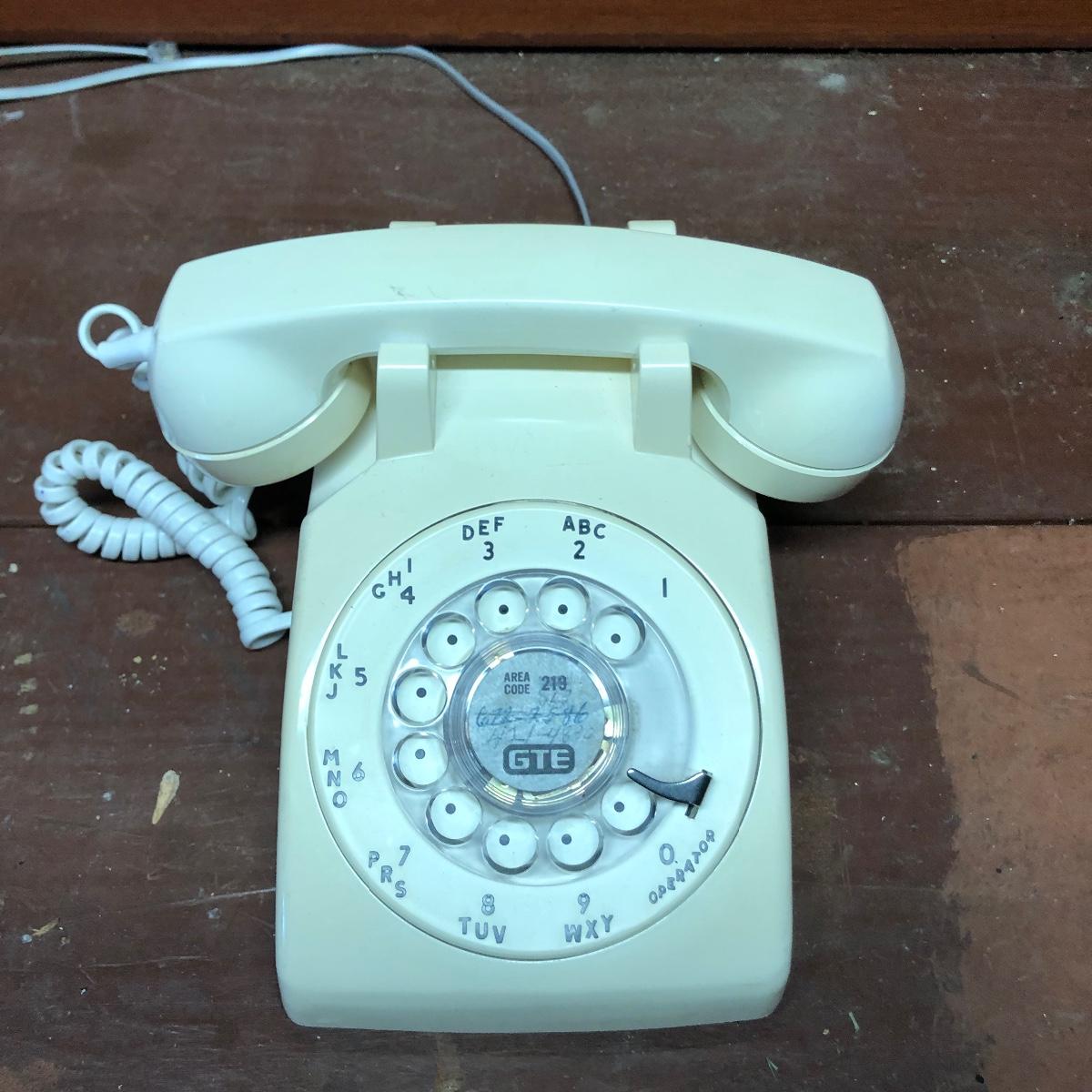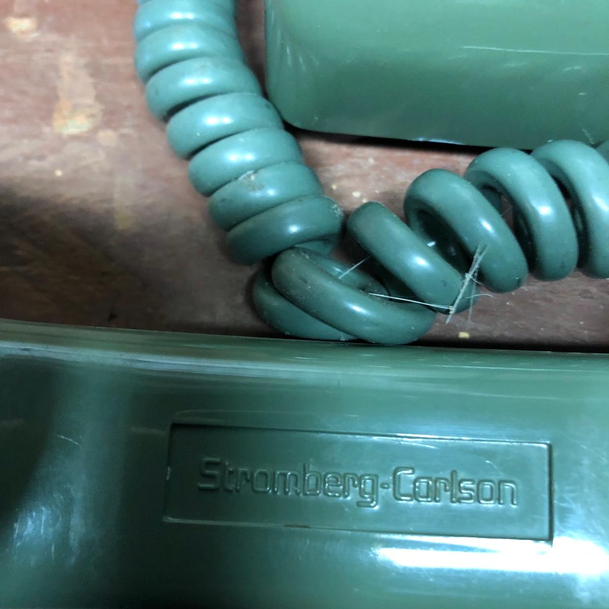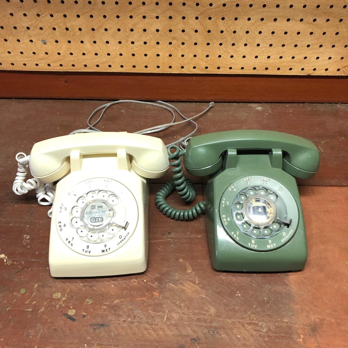 Lot includes a vintage green Stromberg rotary phone dated 2-79, and an ivory Stromberg rotary phone dated 3-83. Phones were not tested.