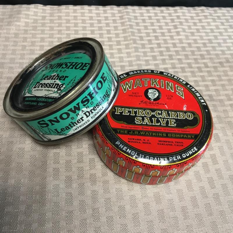Two Vintage Tins: Snowshoe Leather Dressing & Watkins Salve