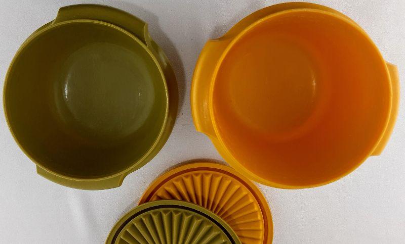 The yellow one measures 3.5 by 5in diameter. The green one measures 2.5in by 5in. diameter.