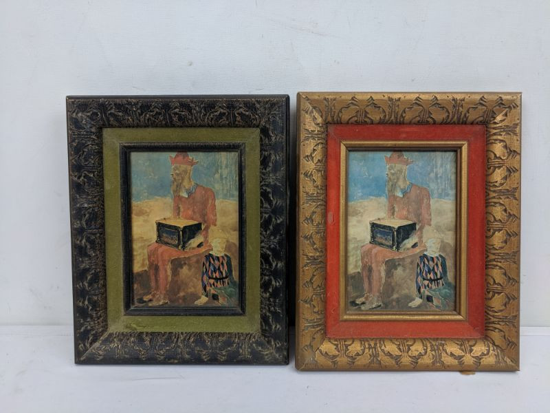 Two Vintage Two Men Framed Pictures 9" x 11"