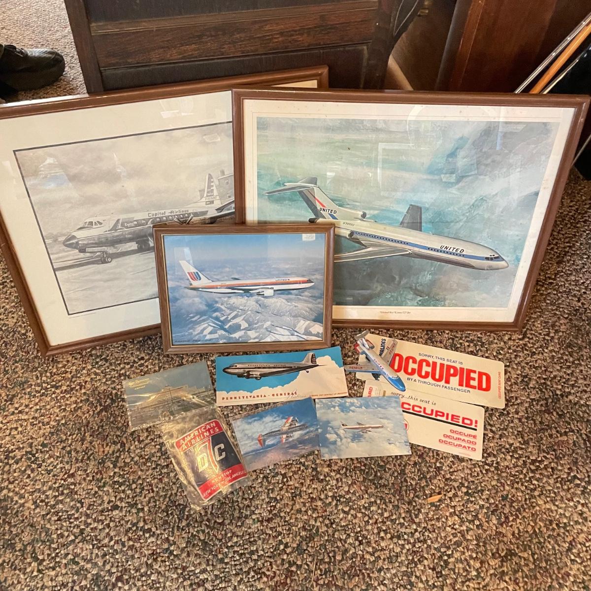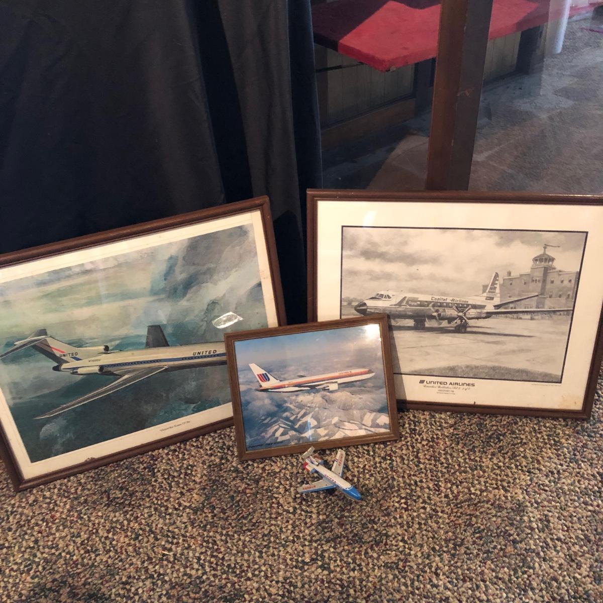 Three Vintage United Airlines Prints: & Toy Airplane lFR-KM)