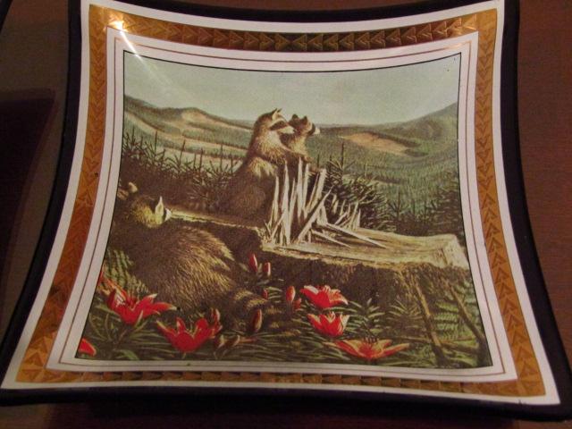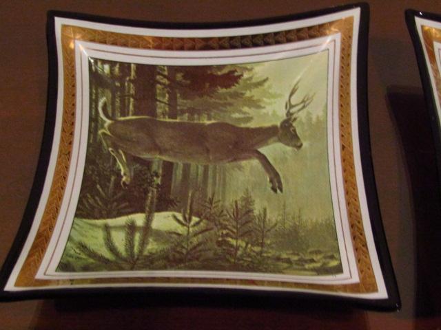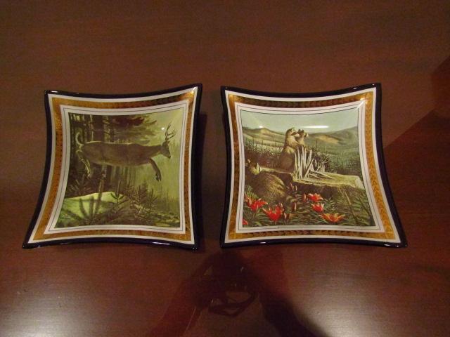Two Vintage Wildlife Themed Ashtrays:  Buck and Raccoons- Approx 5 1/2" Across
