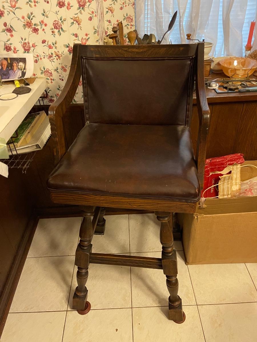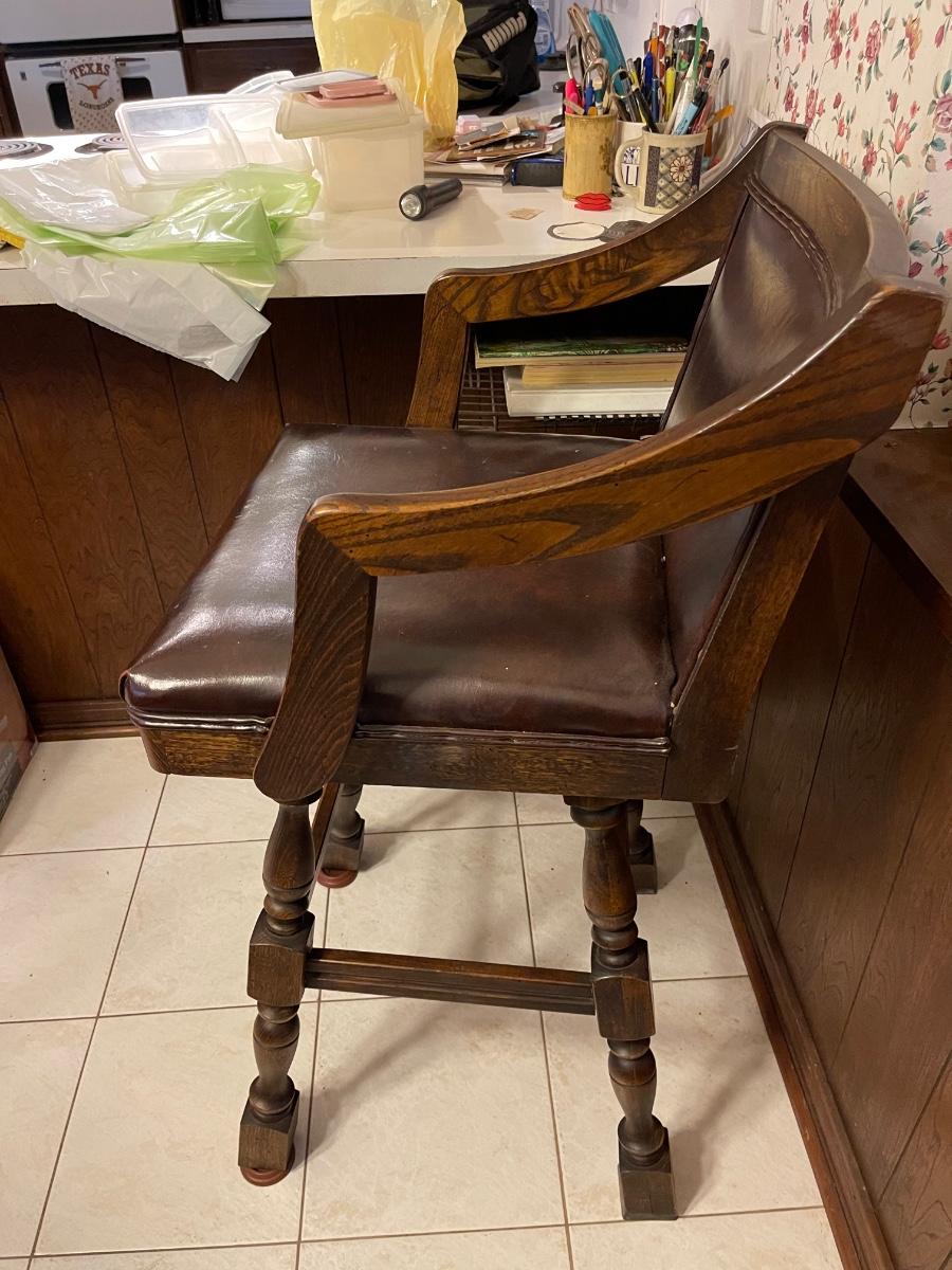 Two vintage wood barstool