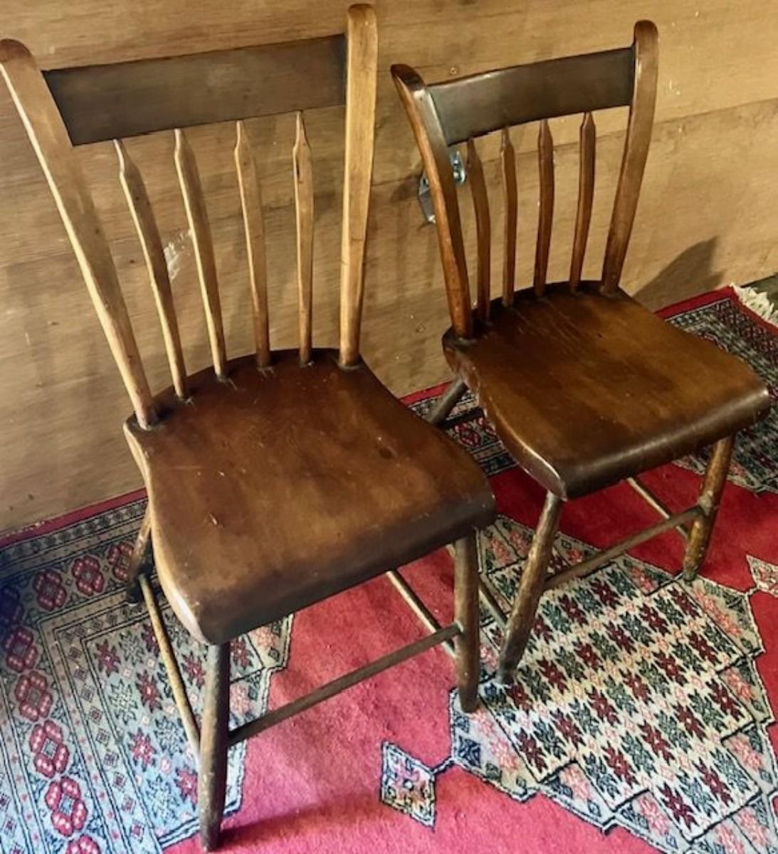 One chair measures 31 inches high and 15 inches wide and the other chair measures 33 inches high and 15 inches wide.