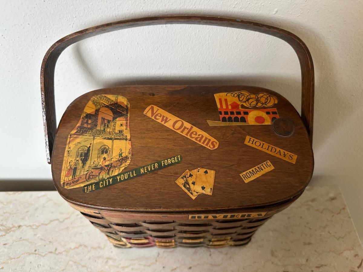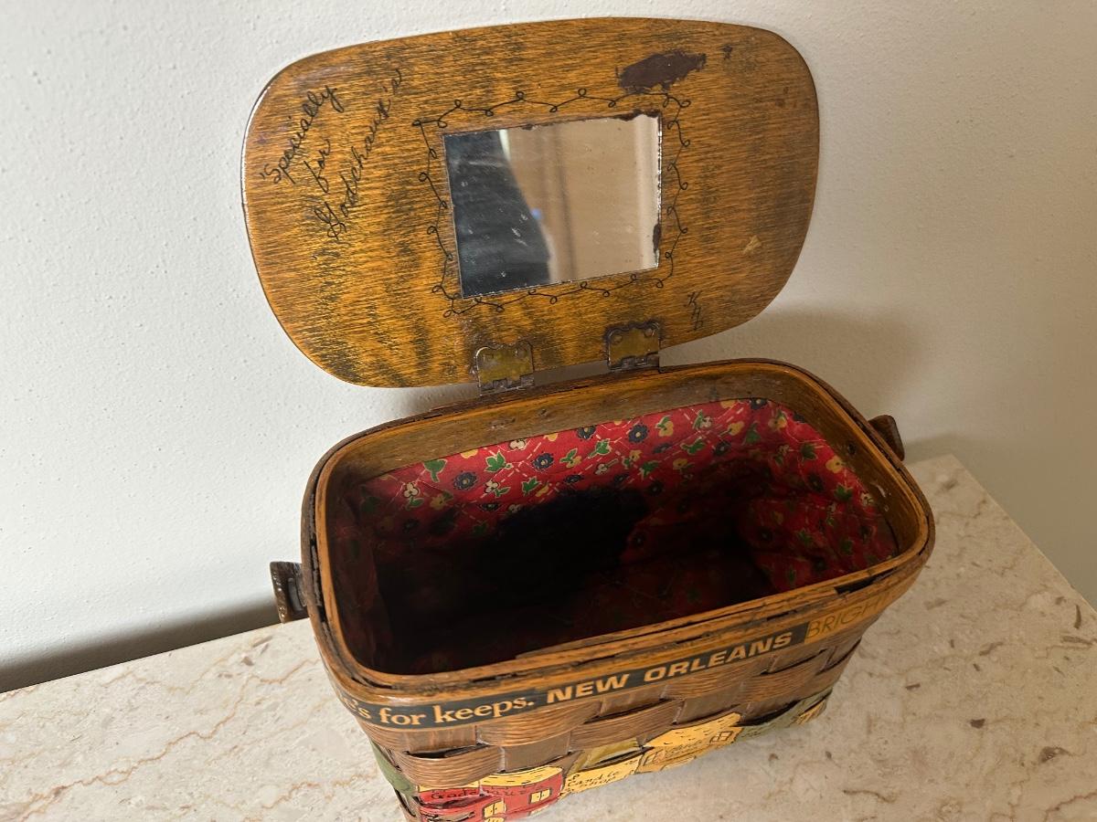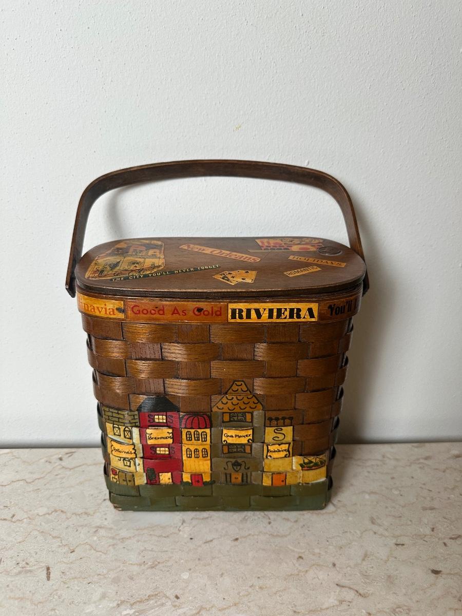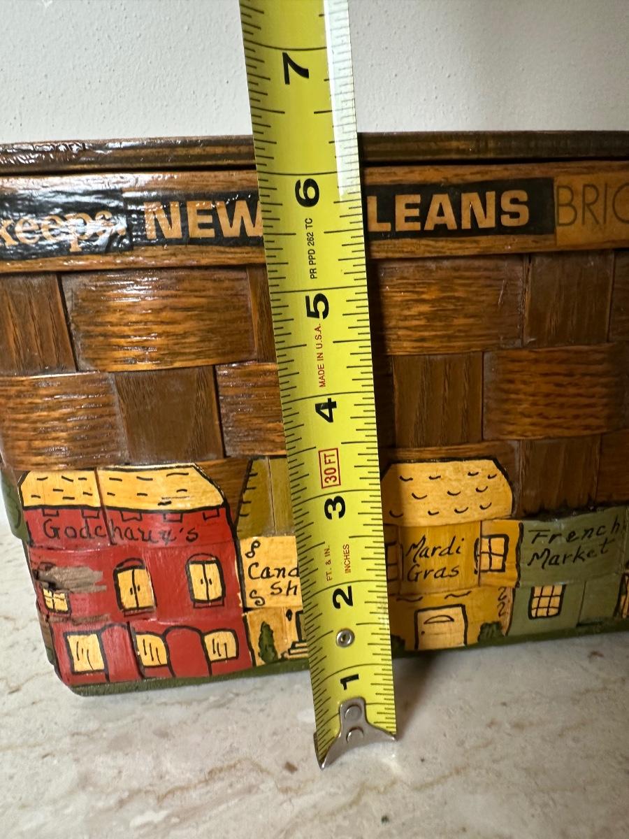 Two Vintage Woven Wooden Basket with Hand-Painted New Orleans Storefronts