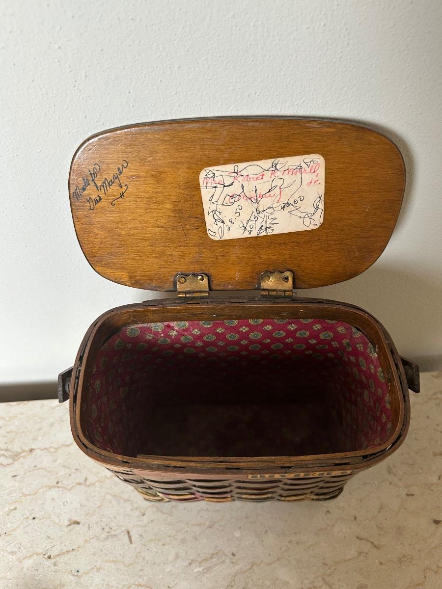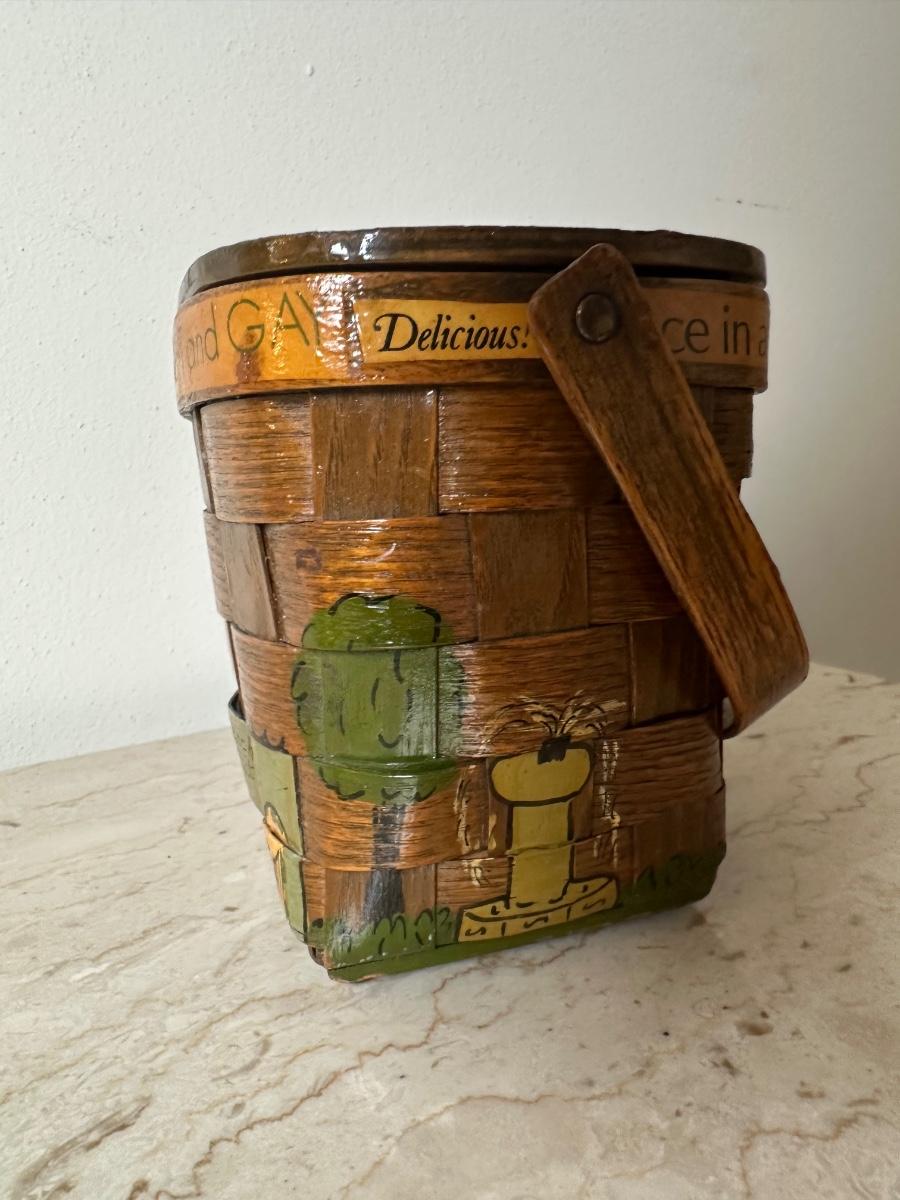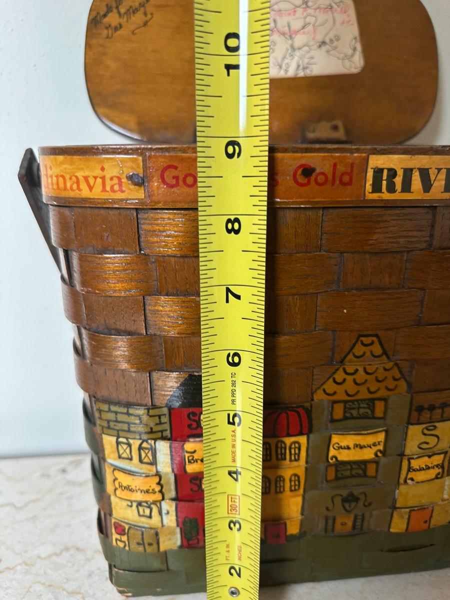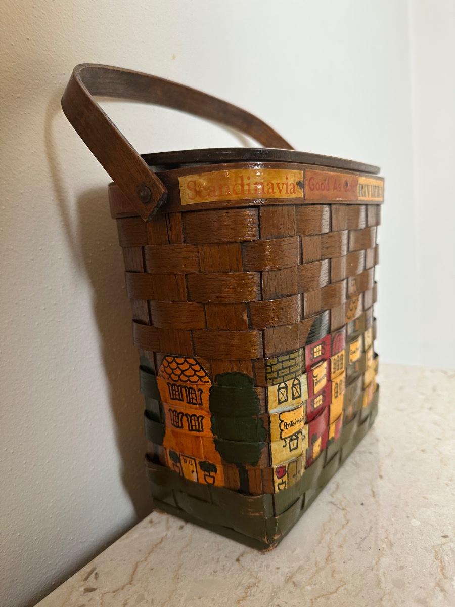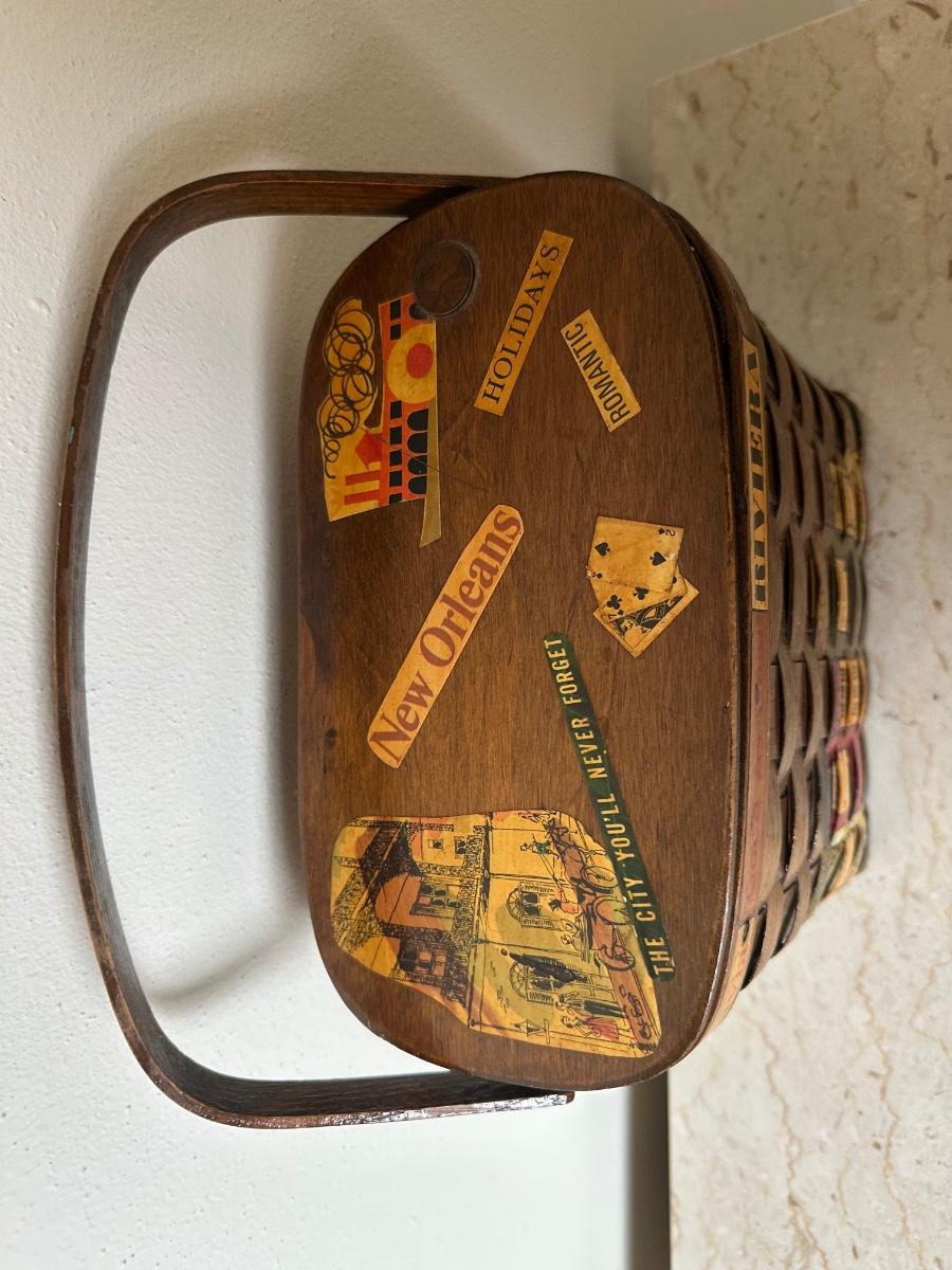 Two Vintage Woven Wooden Basket with Hand-Painted New Orleans Storefronts