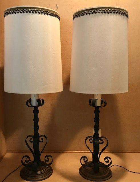 Base measures 22 inches tall. Good condition, some wear on shades.