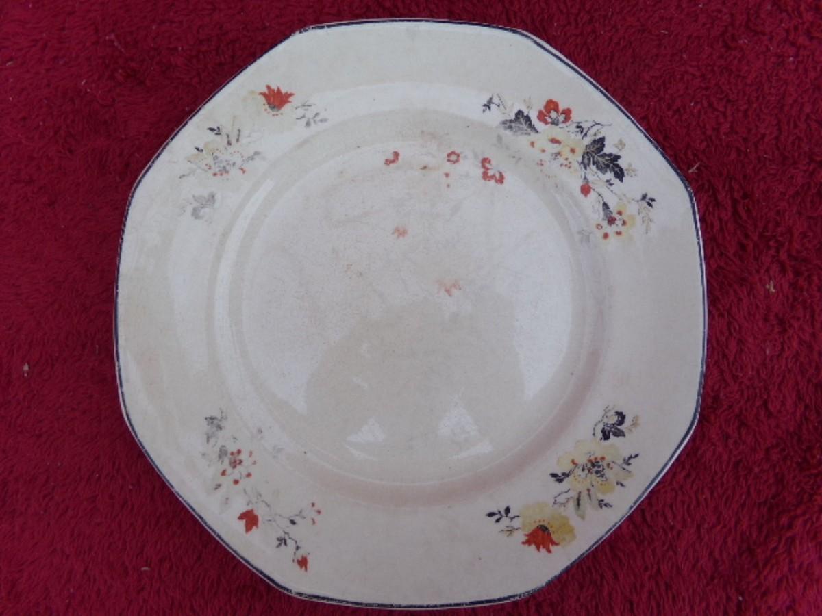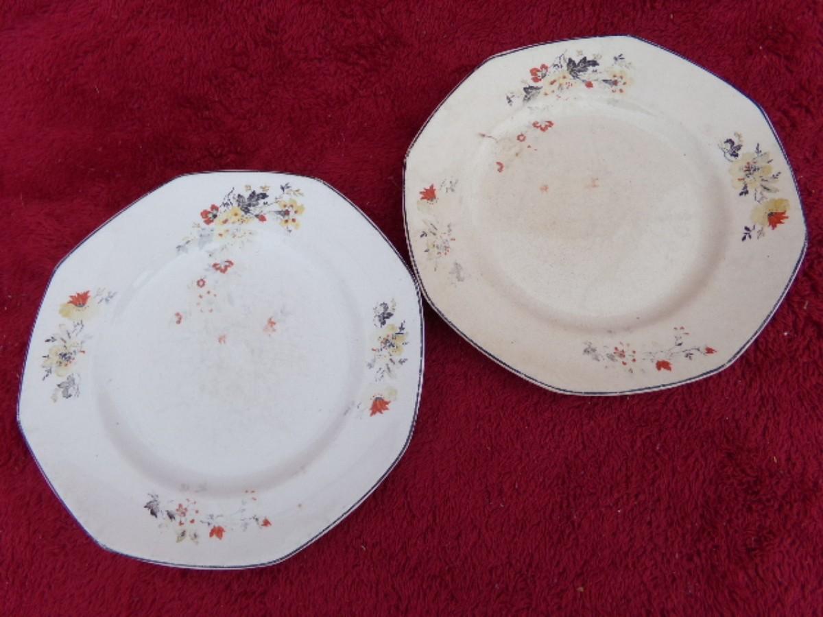 Two VTG/Antique Homer Laughin ceramic dinner plates, (30 N) exact vintage not known. 1 in G to VG condition, 1 in Fair to Good condition. About 9" diameter.